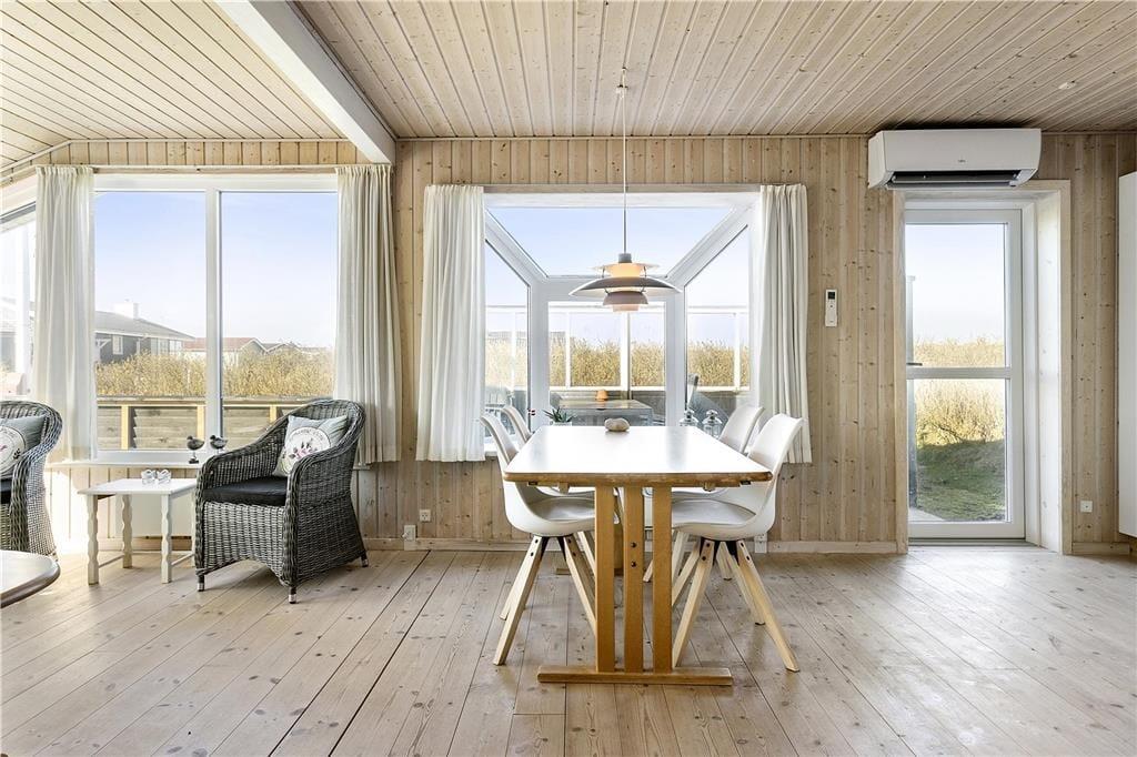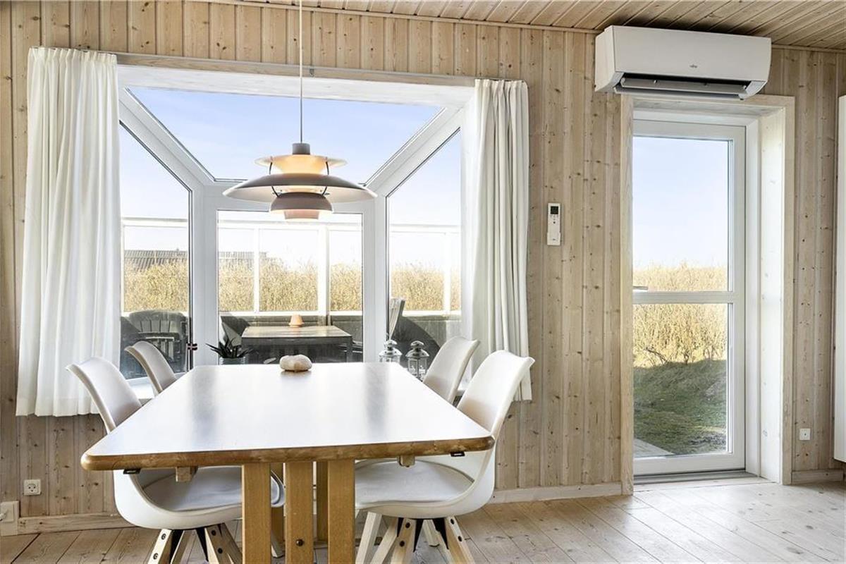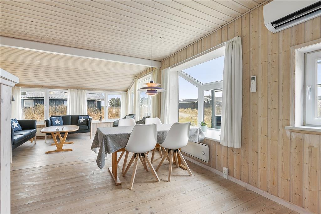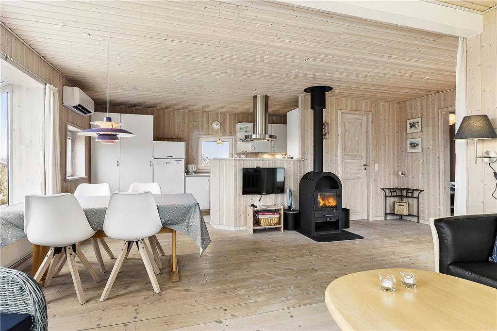 Wenn Sie erst einmal Urlaub an der Nordsee gemacht haben, das fantastische Licht und das faszinierende Meer erlebten, wollen Sie immer wieder zurückkommen. In diesem Ferienhaus werden Ihnen die perfekten Bedingungen für erholsamen Urlaub am Wasser geboten. Das Ferienhaus ist charmant eingerichtet, es gibt viele Fenster und einen tollen gläsernen Erker, in den das Licht in die Räume dringt und Sie den Blick über die Dünenlandschaft genießen können. Ein offener Wohn- und Küchenbereich, zwei Schlafzimmer und ein Badezimmer mit Dusche sowie moderne Einrichtungsgegenstände wie WLAN, moderne Technik, Wärmepumpe sowie ein zentral platzierter Kamin für Wärme im ganzen Haus. Vom Küchenbereich hat man Zugang zu einer schönen windgeschützten Terrasse. Am besten eignet sich das Haus für ein bis zwei Paare, die gemeinsam das schöne Nordjütland entdecken wollen. Aber auch eine kleine Familie mit ein bis zwei Kindern wird sich hier wohlfühlen.