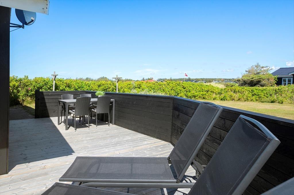 Das Ferienhaus steht auf einem tollen Naturgrundstück mit Wiese und schönen Terrassen zu verschiedenen Seiten. Nach Westen befindet sich ein abgeschirmter Bereich, auf dem Sie trotz Wind bedenkenlos sitzen können. Gartenmöbel und Grill sind vorhanden.
