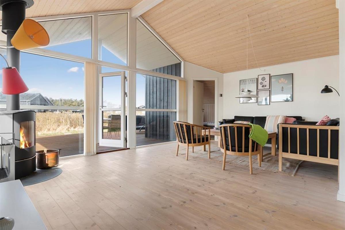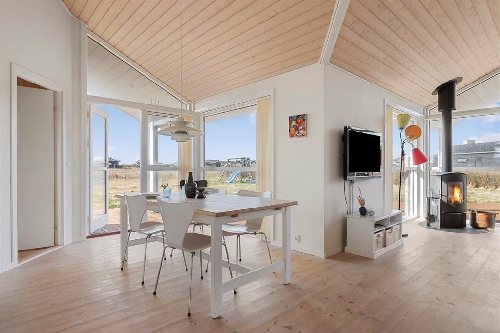 Das Haus ist sehr einladend gestaltet mit hellen Farben und moderner, eleganter Einrichtung. Mittelpunkt des Hauses ist der große offene Aufenthaltsraum, der mit der Küche und dem Essbereich verbunden ist. Hier haben Sie hohe Decken und die großen, durchgängigen Fenster sorgen für einen fantastischen Lichteinfall. Der Kaminofen lädt ein zu gemütlichen Abenden mit Brettspielen, gutem Essen und ganz viel Zeit mit der Familie. Vom Aufenthaltsraum aus gelangen Sie in die drei hellen Schlafzimmer und in das luxuriöse Badezimmer mit einer Whirlpool-Badewanne und der Sauna. Um Ihnen den Aufenthalt so bequem wie möglich zu gestalten, verfügt das Haus über Geschirrspüler, Waschmaschine und Satelliten-Fernsehen.