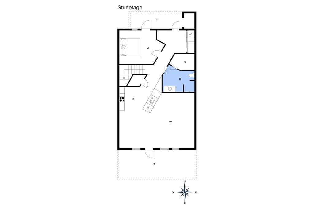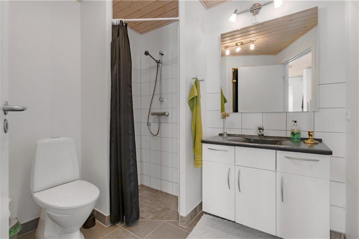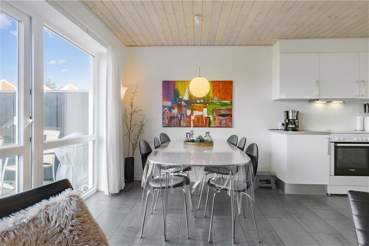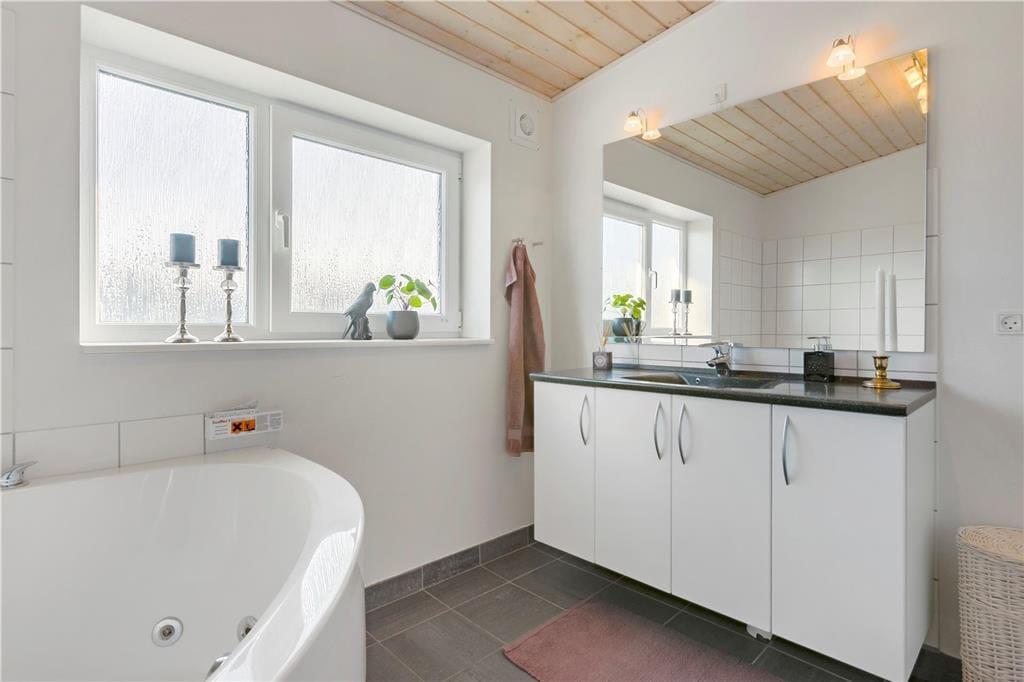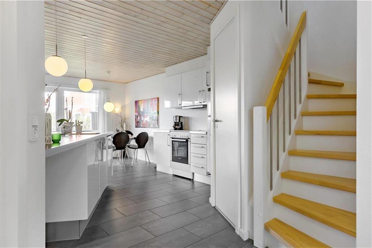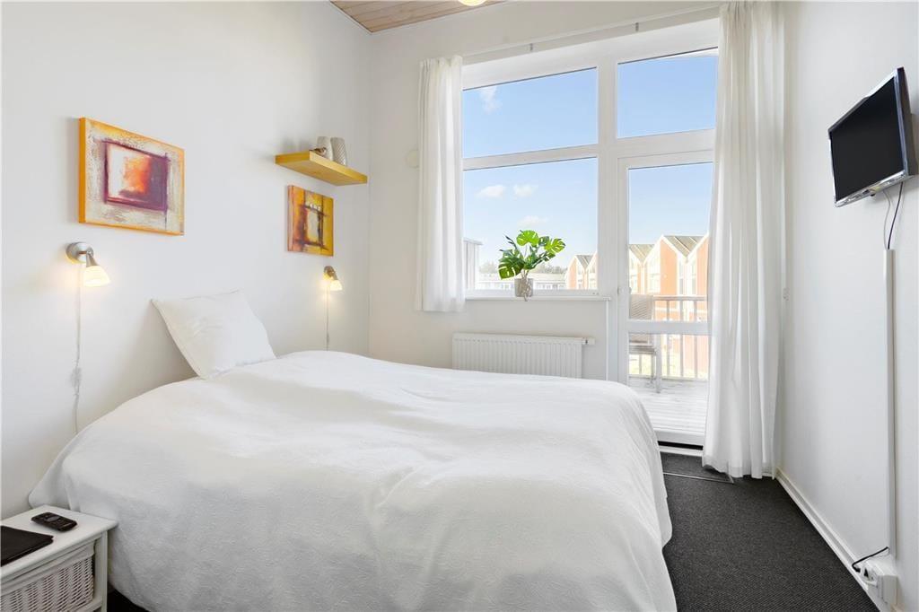Die Ferienwohnung liegt in einem Reihenhaus auf zwei Etagen und gehört zu dem Ferien-park, Nordenlys. Im Erdgeschoss befindet sich eins der vier Schlafzimmer des Hauses, eins der Badezimmer mit Sauna und der schöne und stilvoll eingerichtete Wohnbereich mit Wohnküche, von wo man Zugang zu der Steinterrasse hat. Auf der oberen Etage befinden sich die 3 anderen Schlafzimmer. Von zwei der Schlafzimmer hat man Zugang zu dem grossen teilweise überdachten Balkon. Das grosse Badezimmer verfügt über WC, Dusche und Whirlpool.