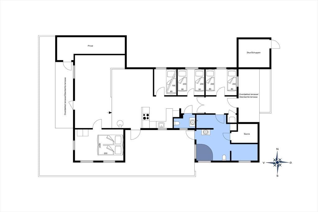 Auf dem Gartengrundstück stehen halbhohe Büsche zu verschiedenen Seiten, die vor Westwind schützen. Zum Sonnenbaden, Spielen und Toben ist ausreichend Platz. Es gibt diverse Terrassen nach Süden, Osten und Westen, damit Sie den dänischen Sommer bestens ausnutzen können.