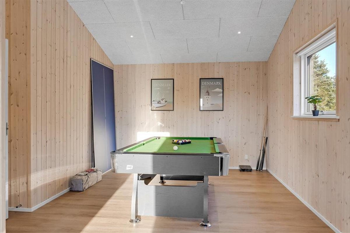 Verheug u op een aangenaam verblijf in dit moderne houten huis, dat zeer geschikt is voor een gezin of een groep vrienden. Dankzij de grote raampartijen maken de kamers een lichte, open indruk. Ontspan in de woonkamer of vermaak uzelf aan de biljarttafel. In de zomer kunt u zich terugtrekken op het grote terras en hier heerlijke avonden doorbrengen. In de koelere seizoenen kunt u zich na een dag in de frisse lucht opwarmen in de sauna. s Avonds kunt u het uzelf gemakkelijk maken bij de houtkachel en een spelletjesavond houden in het gestoffeerde meubilair.