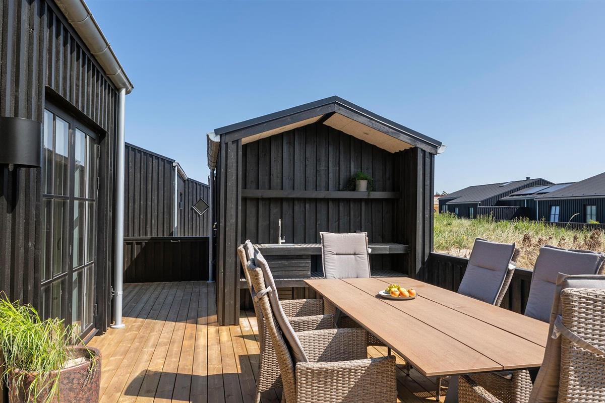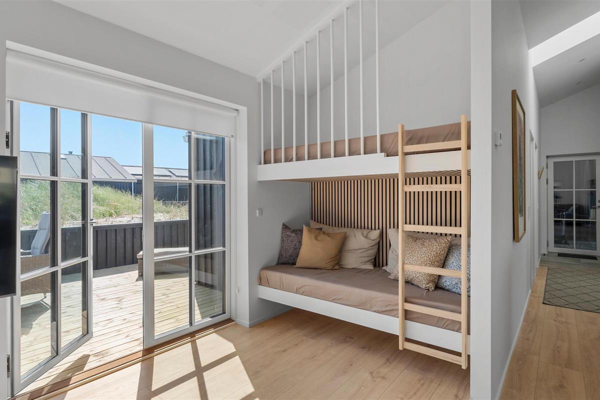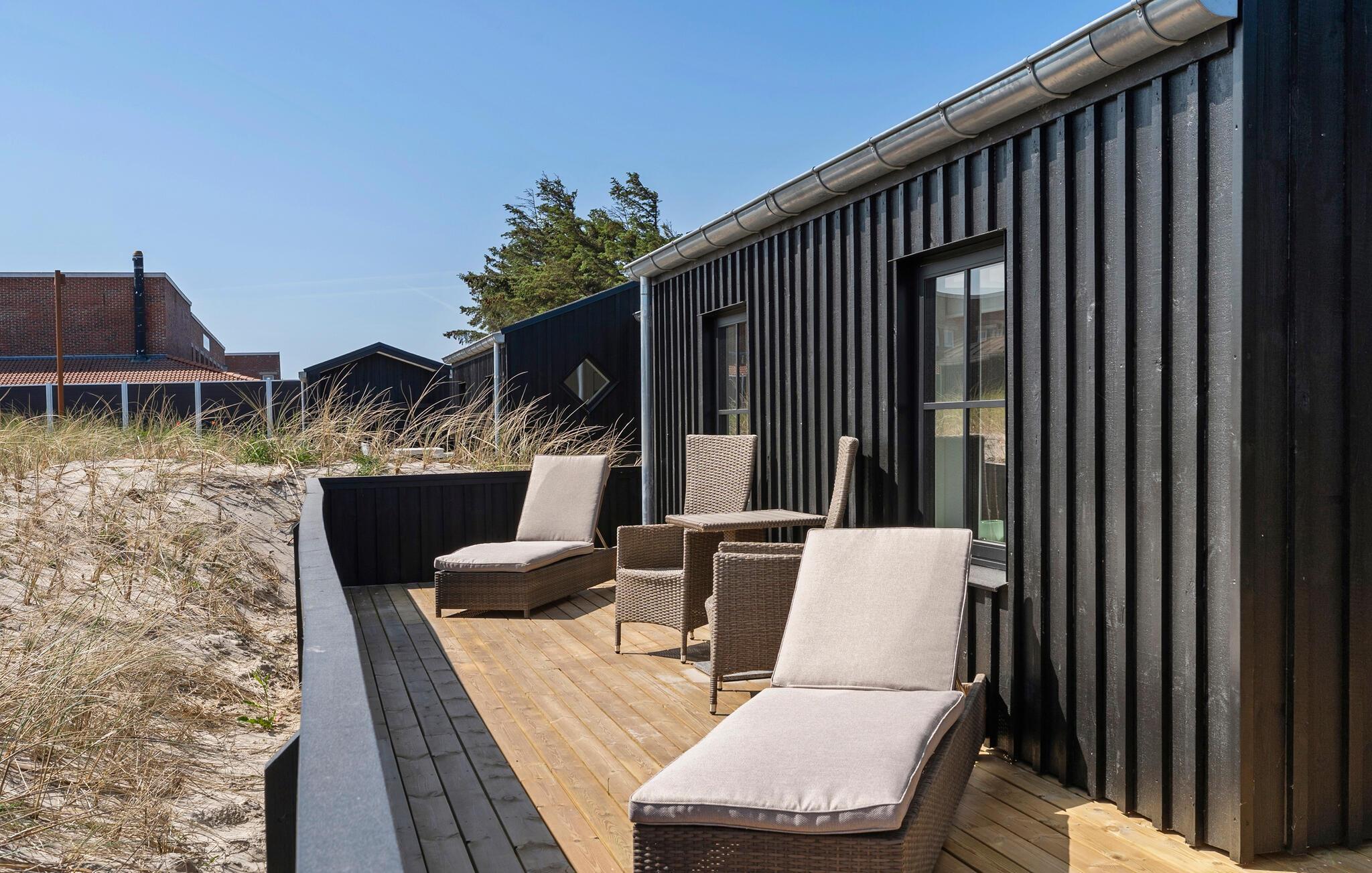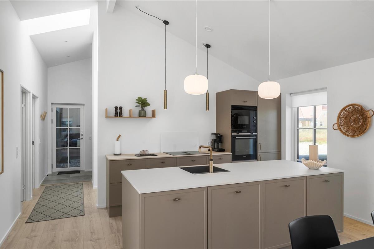 Modern vakantiehuis vlak bij het zandstrand van Løkken met open keuken, terras en sfeervolle woonruimte.