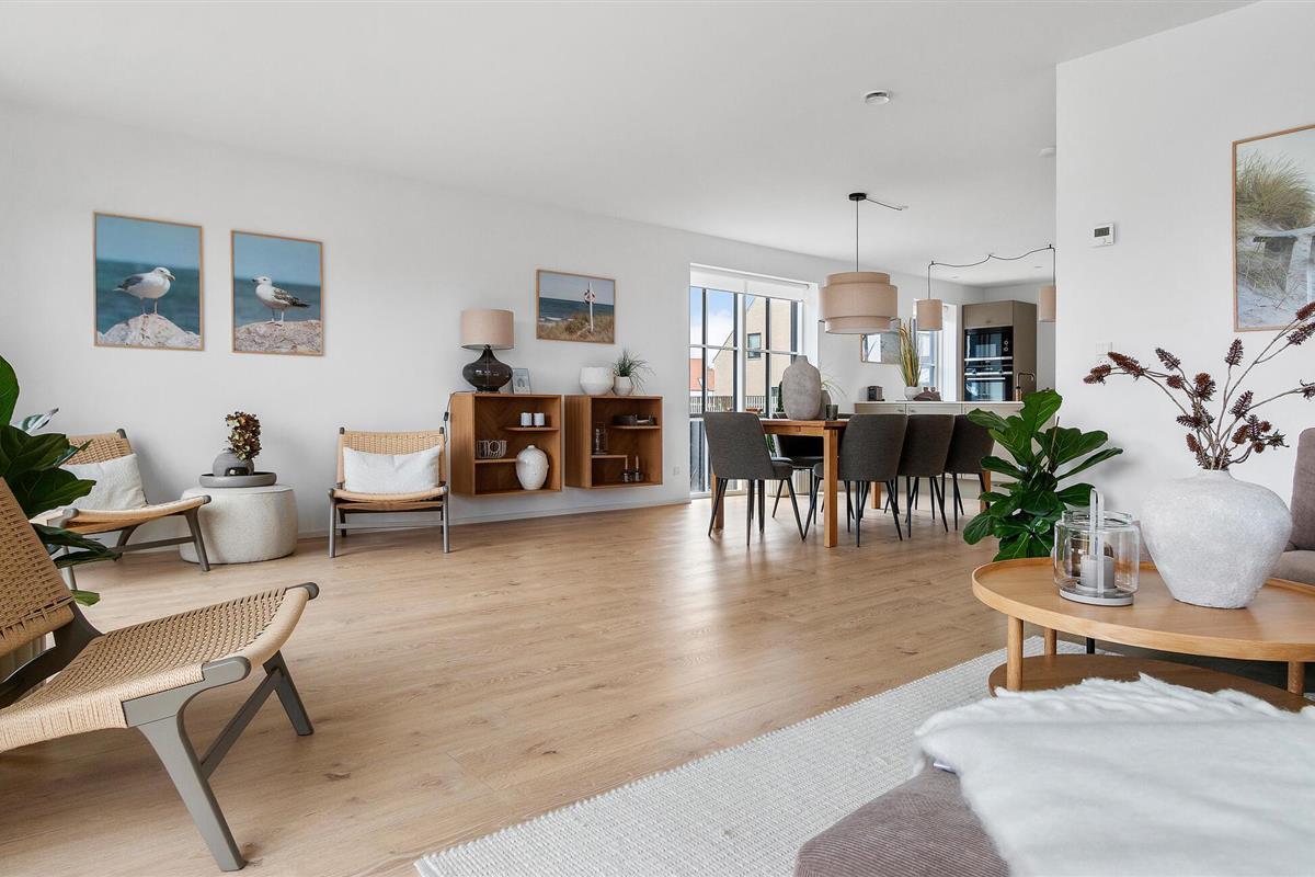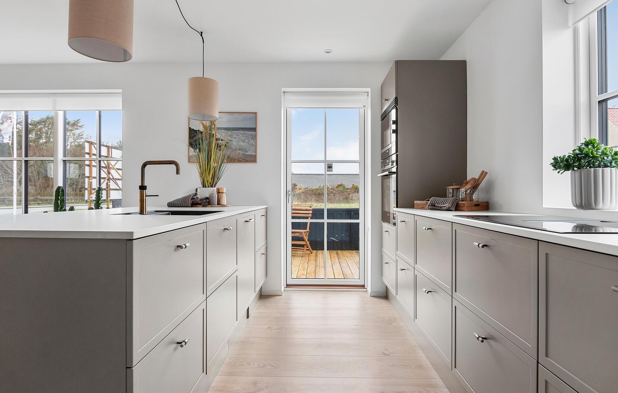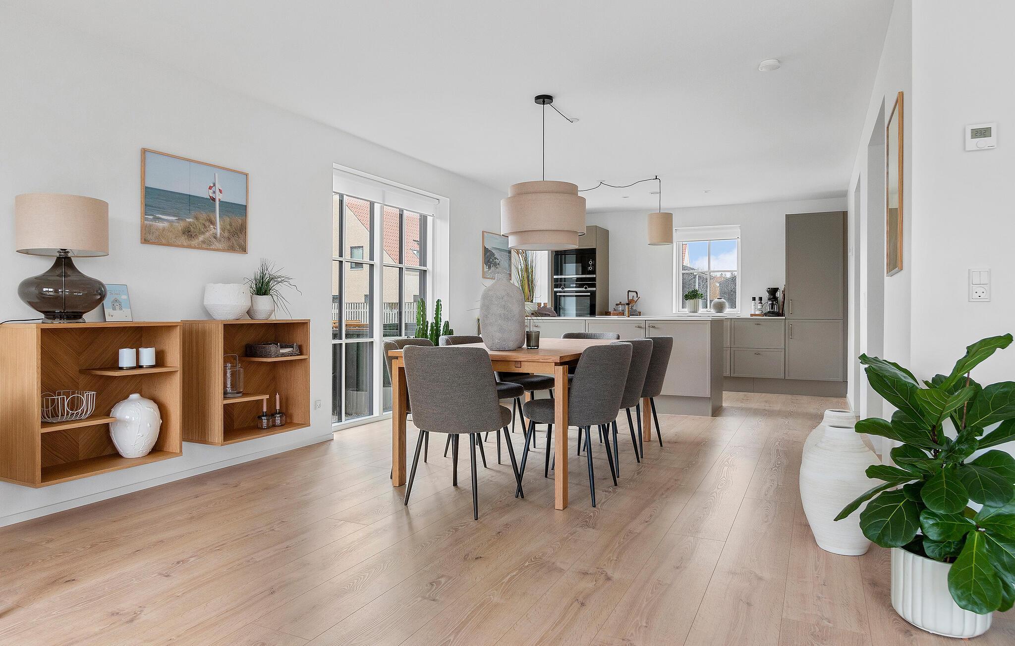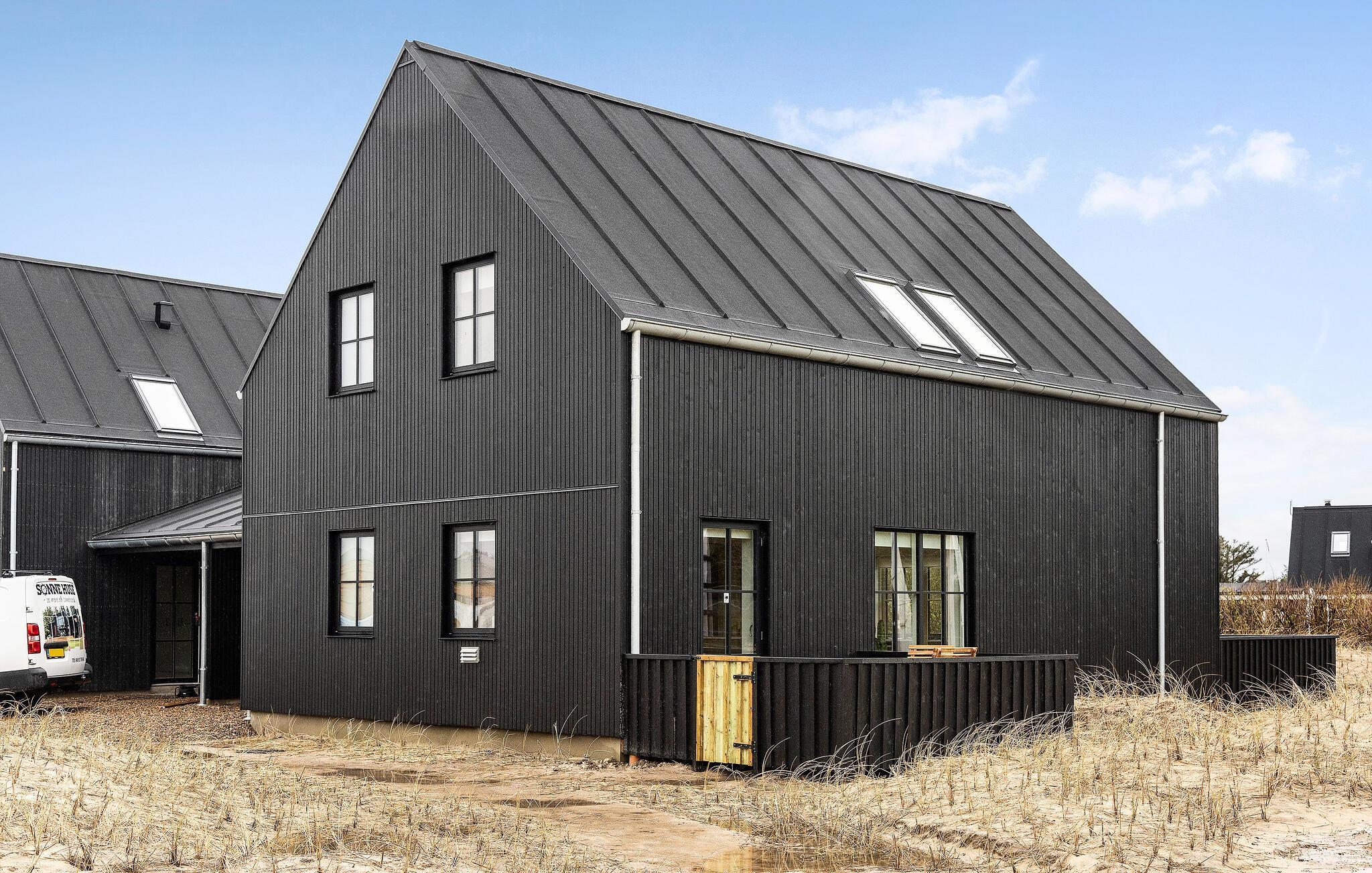 Modern en energiezuinig huis in Lökken, dichtbij strand en stad, met fijne terrassen en buitenkeuken.