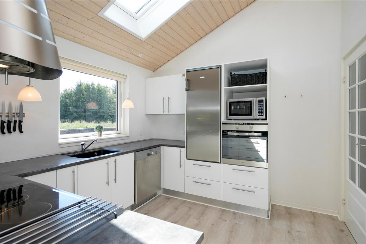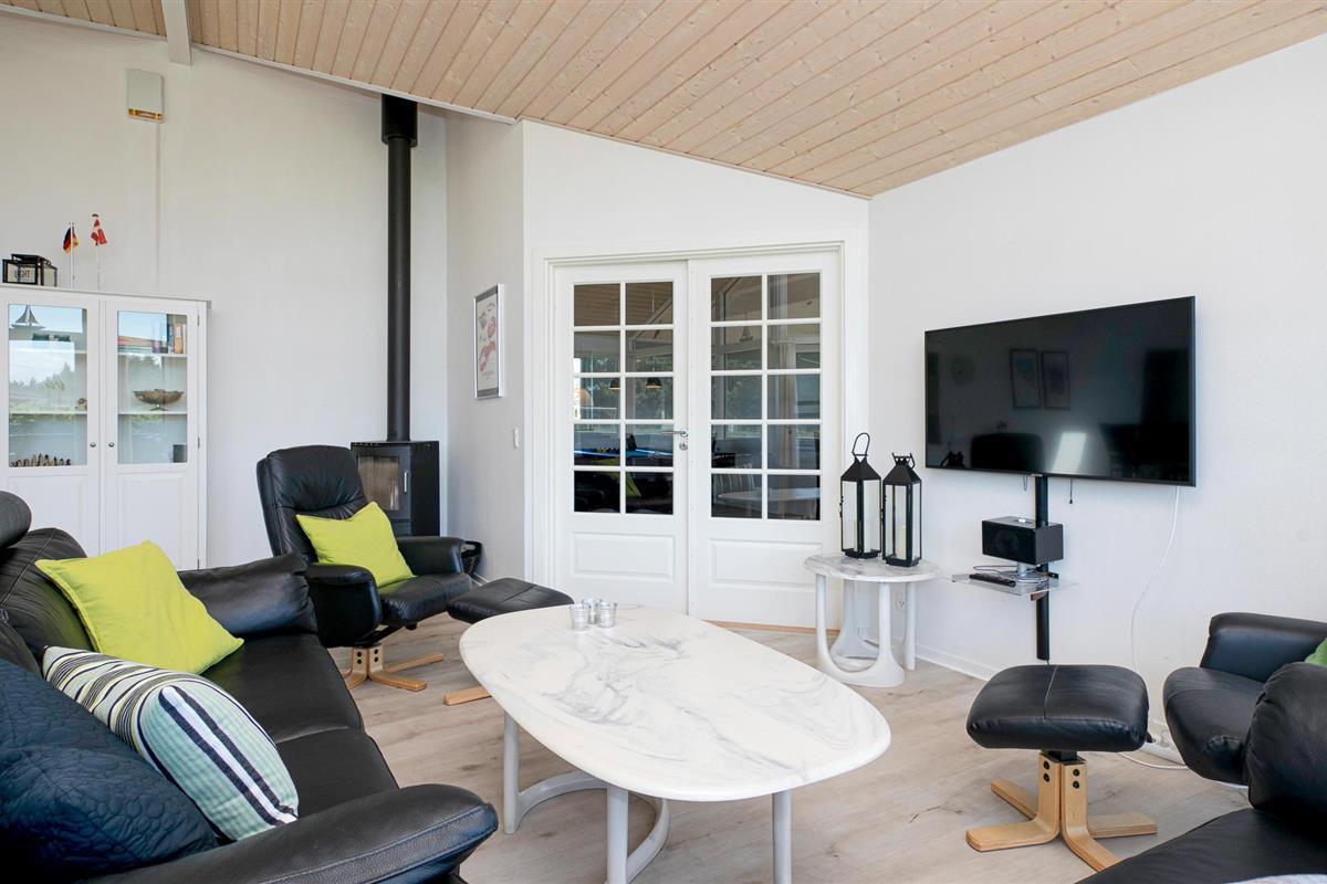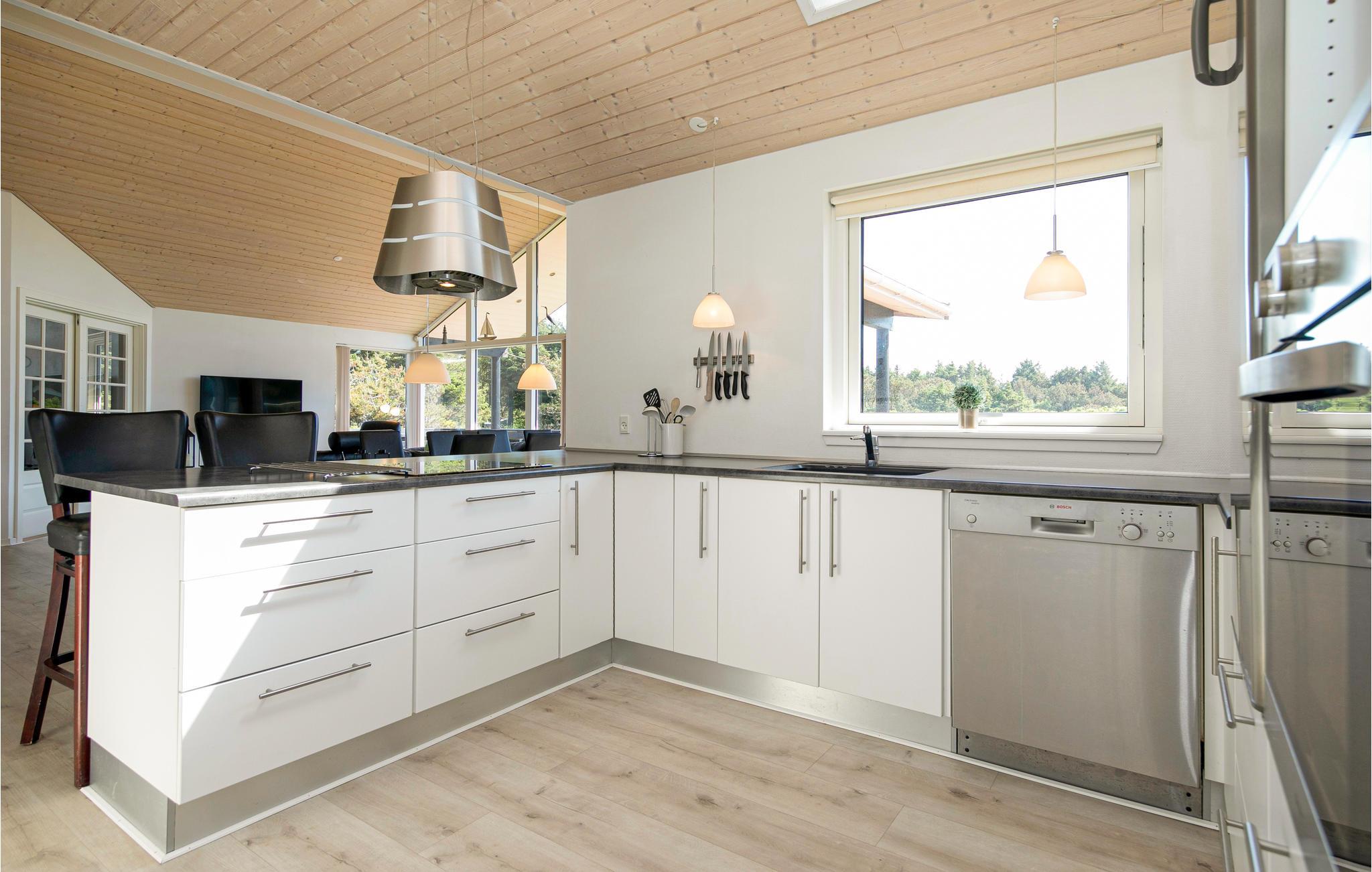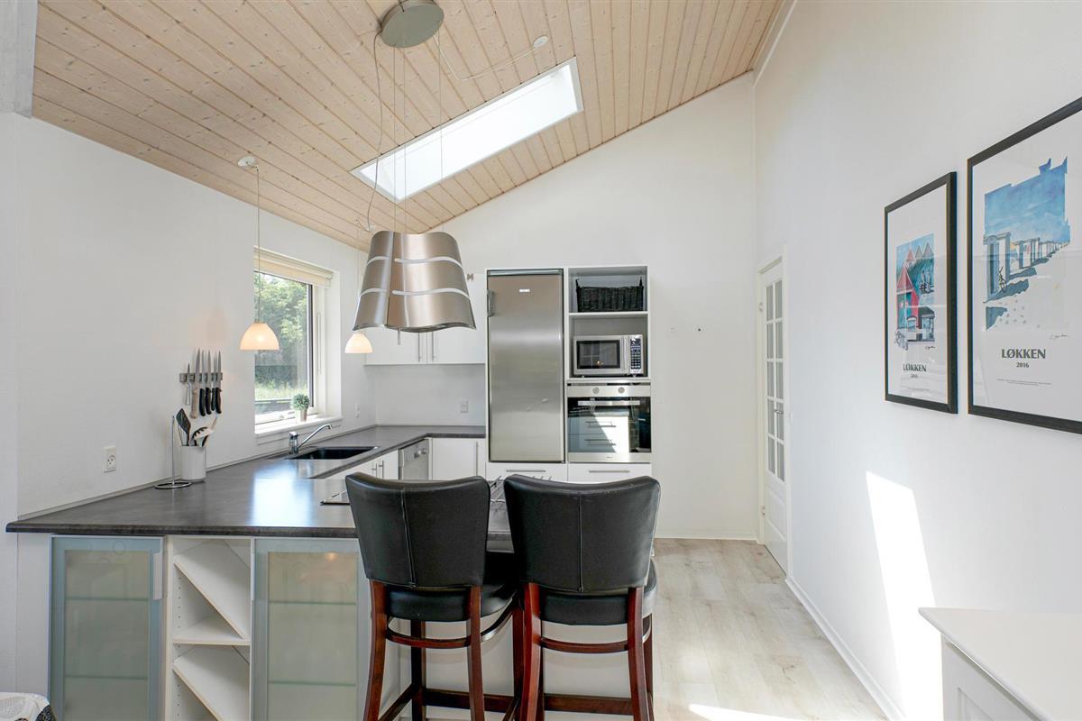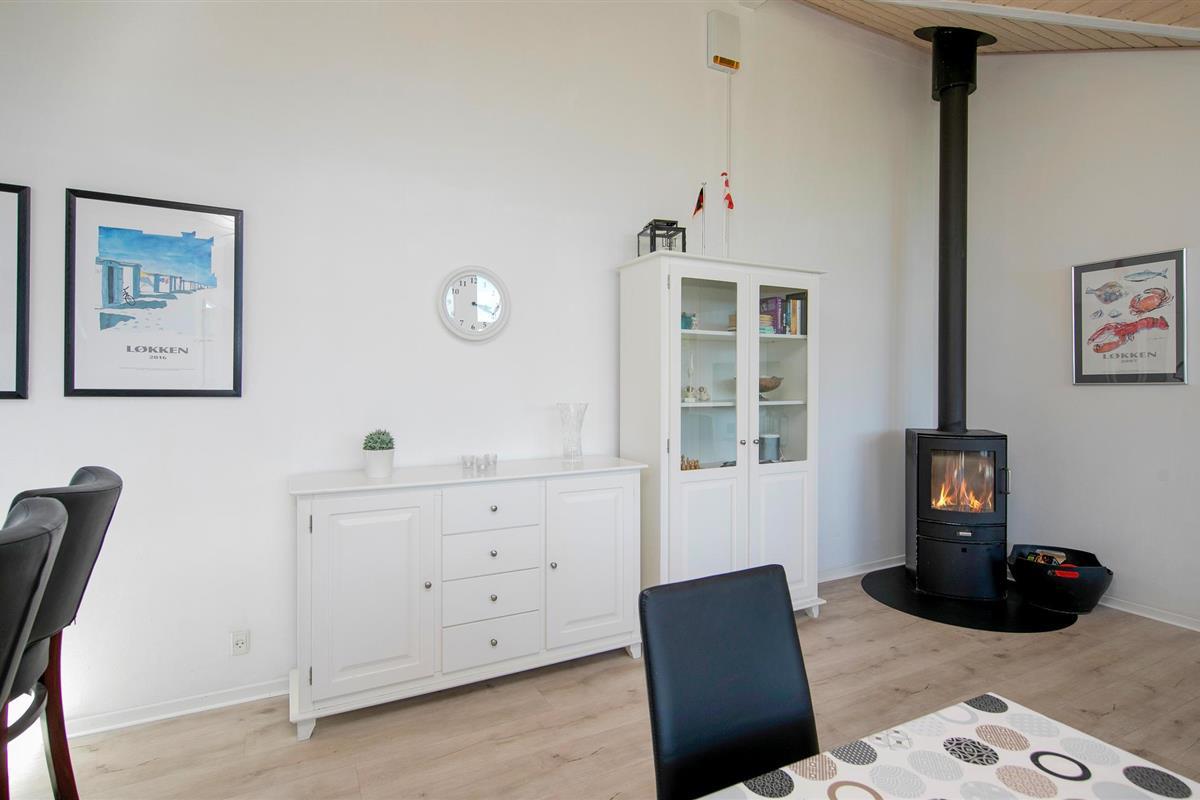 Op een open natuurperceel, niet ver van de badplaats Løkken, verwelkomt dit ruime kwaliteitshuisje u en uw gezin. Het maakt een zeer goede indruk met zijn lichte inrichting en moderne apparatuur - hier kunt u genieten van een zorgeloze en ontspannen vakantie. Breng vele gezellige uren door in de activiteitenruimte, ontspan in de whirlpool of warm op in de sauna of voor de open haard tijdens de koelere seizoenen.