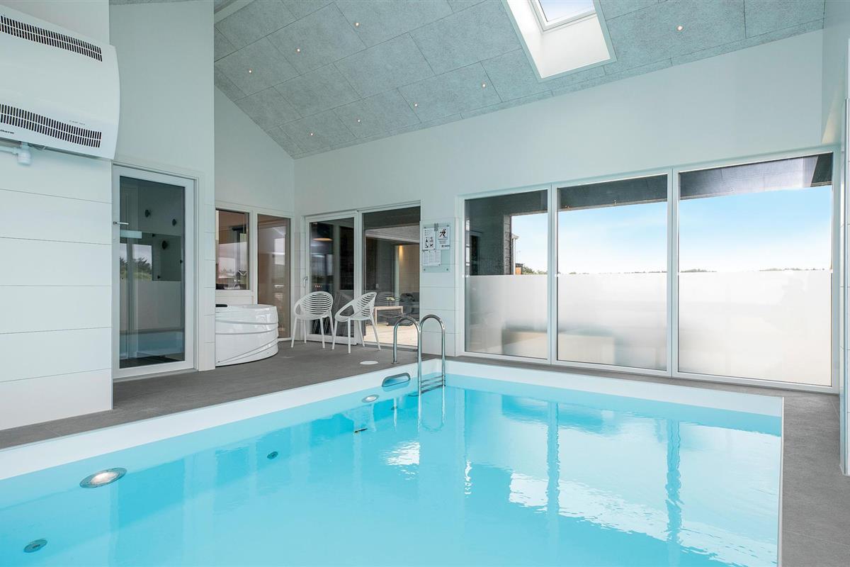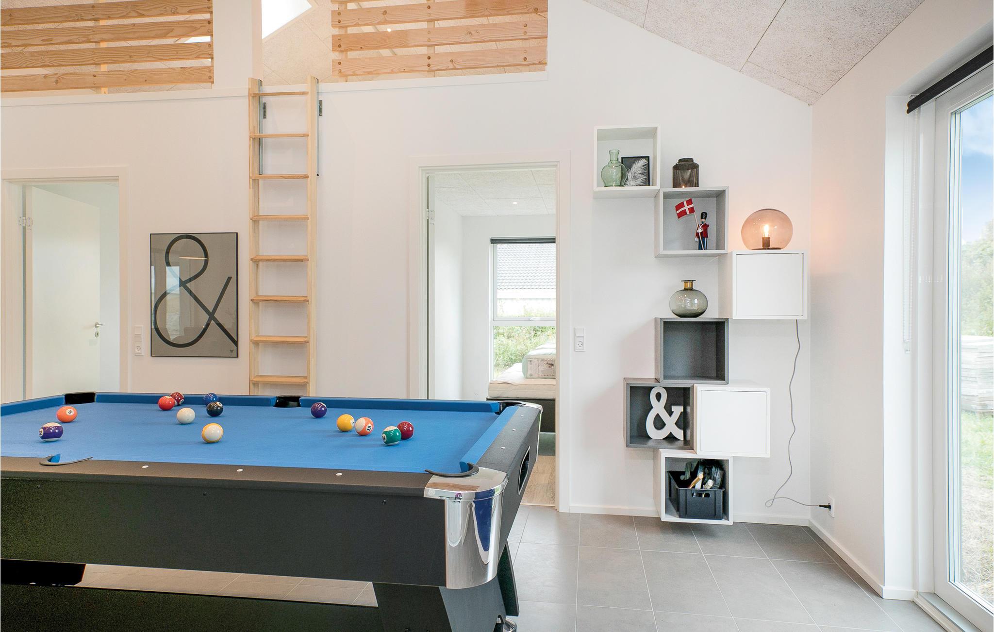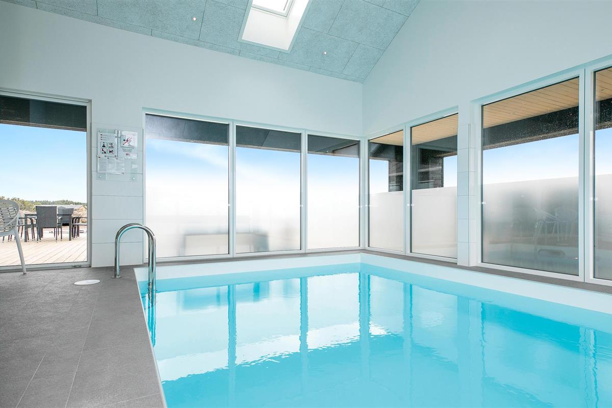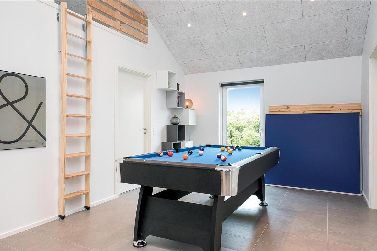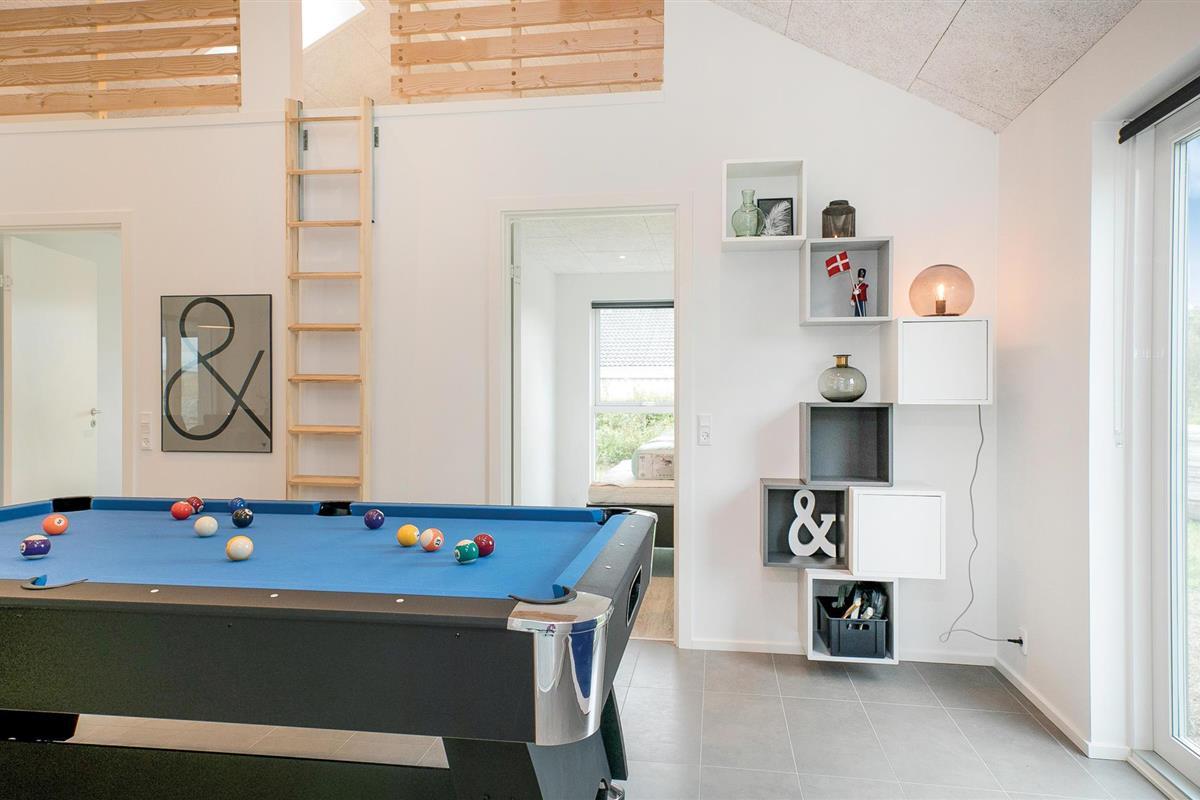 Niet ver van het gezellige centrum van de badplaats Løkken en de pier wacht dit prachtige in 2018 gebouwde poolhouse op u, met een voetgangerszone, winkels en restaurants in het centrum van het dorp. De mooie inrichting van het vakantiehuis omvat vijf slaapkamers en een slaapzolder met matrassen. In de zwembadkamer bevinden zich naast het zwembad ook een whirlpool, badkamer en sauna. De gezellige eethoek ligt dicht bij de lichte keuken, van waaruit u ook de speelkamer met biljart/pooltafel kunt bereiken. Het huis heeft ook prachtige terrassen. Een echt leuk vakantiehuis voor een gezin dat veel ruimte wil.