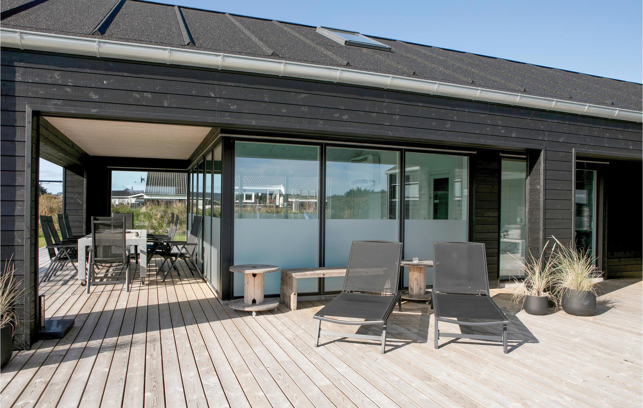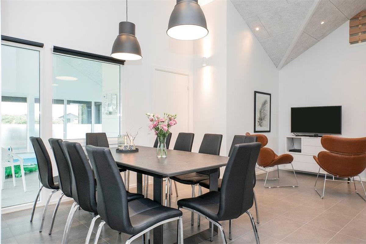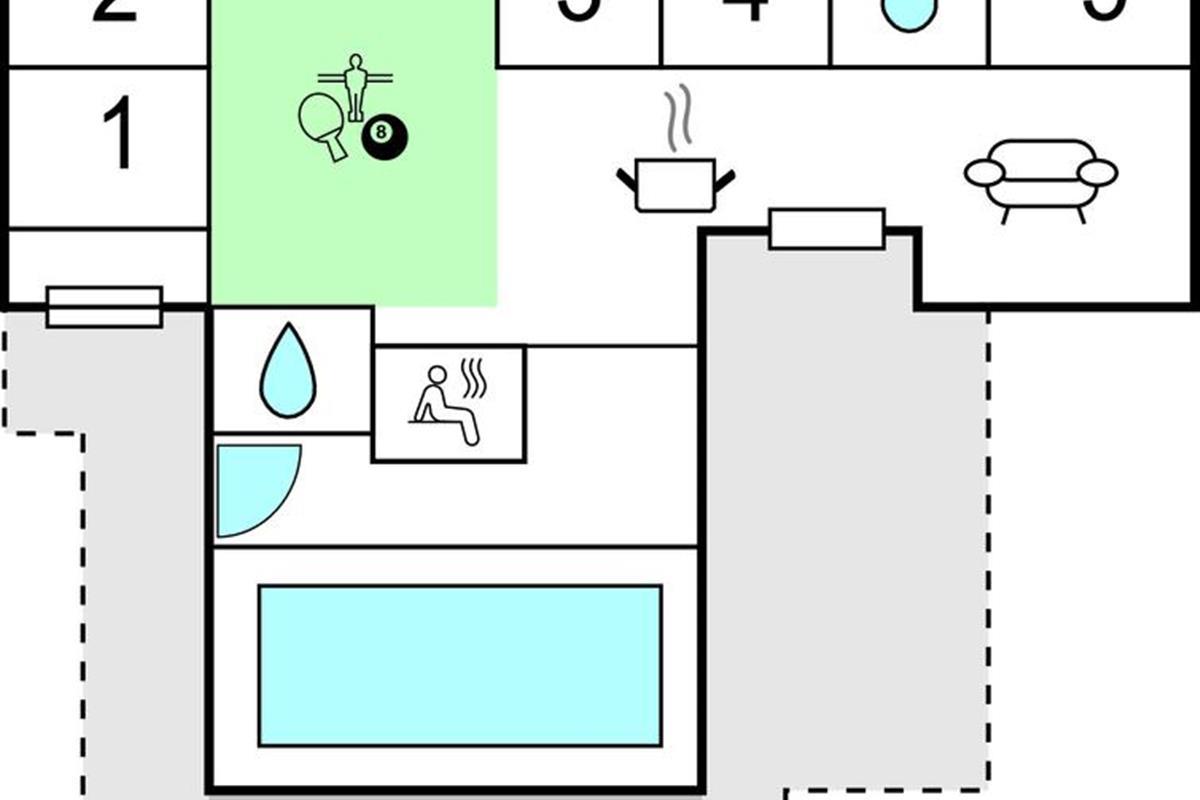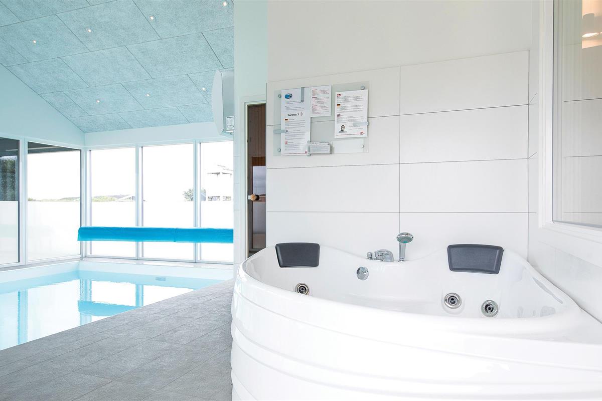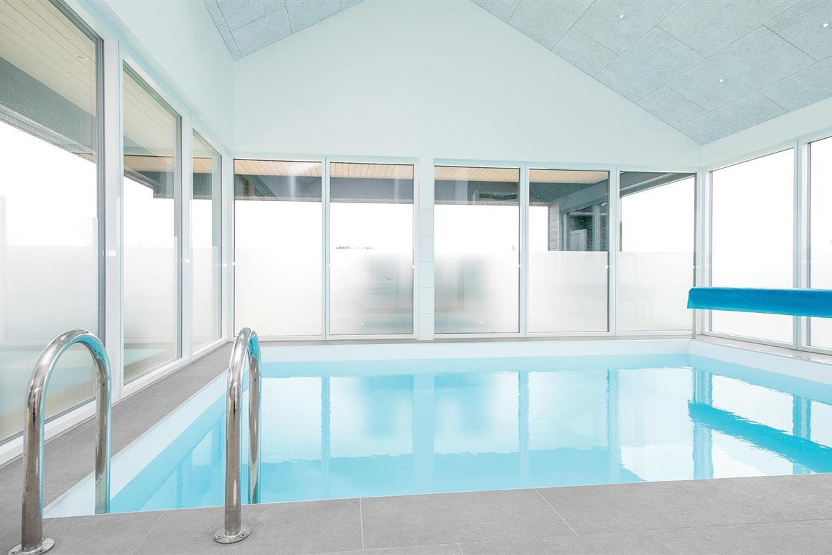 Niet ver van het gezellige centrum van de badplaats Løkken en de pier wacht dit prachtige in 2018 gebouwde poolhouse op u, met een voetgangerszone, winkels en restaurants in het centrum van het dorp. De mooie inrichting van het vakantiehuis omvat vijf slaapkamers en een slaapzolder met matrassen. In de zwembadkamer bevinden zich naast het zwembad ook een whirlpool, badkamer en sauna. De gezellige eethoek ligt dicht bij de lichte keuken, van waaruit u ook de speelkamer met biljart/pooltafel kunt bereiken. Het huis heeft ook prachtige terrassen. Een echt leuk vakantiehuis voor een gezin dat veel ruimte wil.
