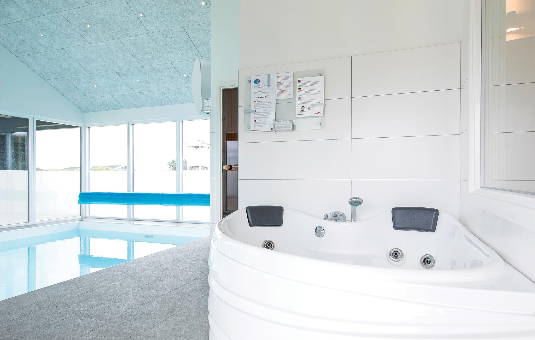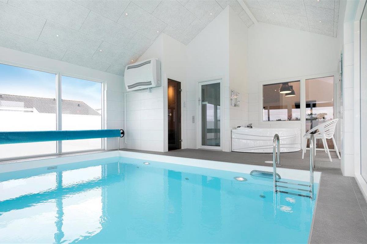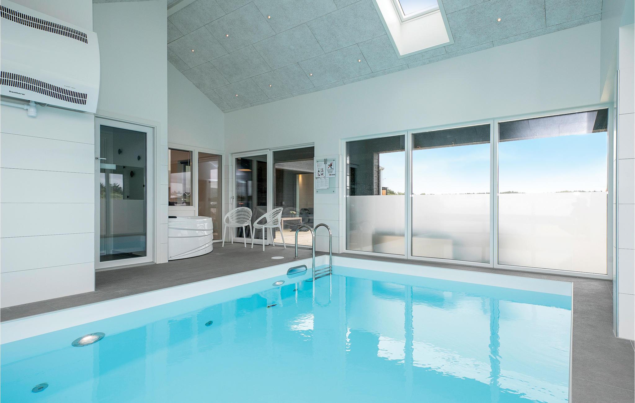 Modern poolhouse in Løkken met zwembad, sauna en biljart, vlakbij centrum en strand.