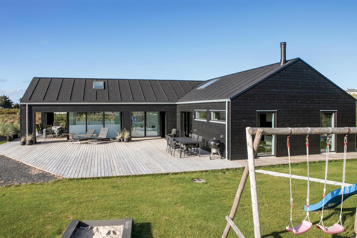 Modern poolhouse in Løkken met zwembad, sauna en speelkamer, dicht bij centrum en strand.