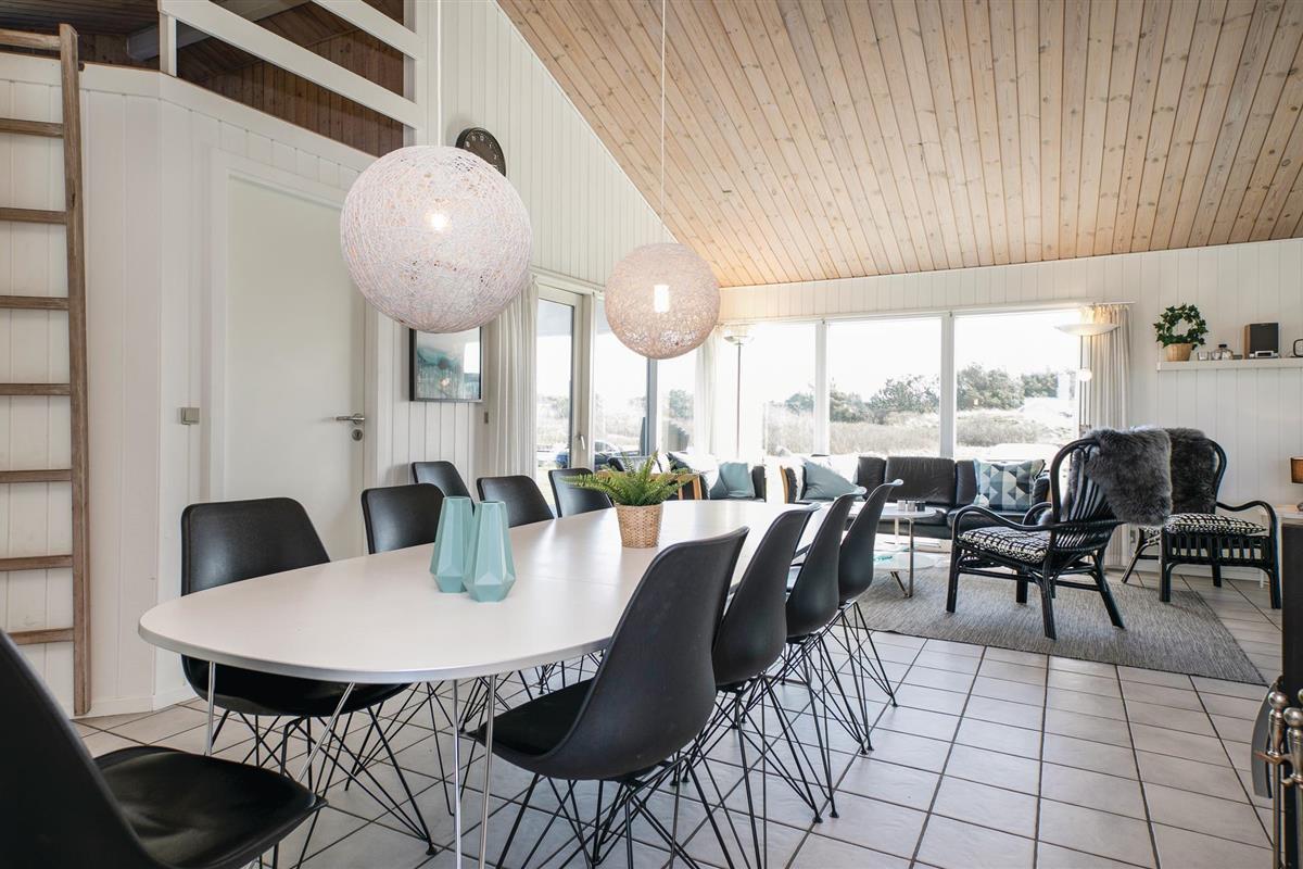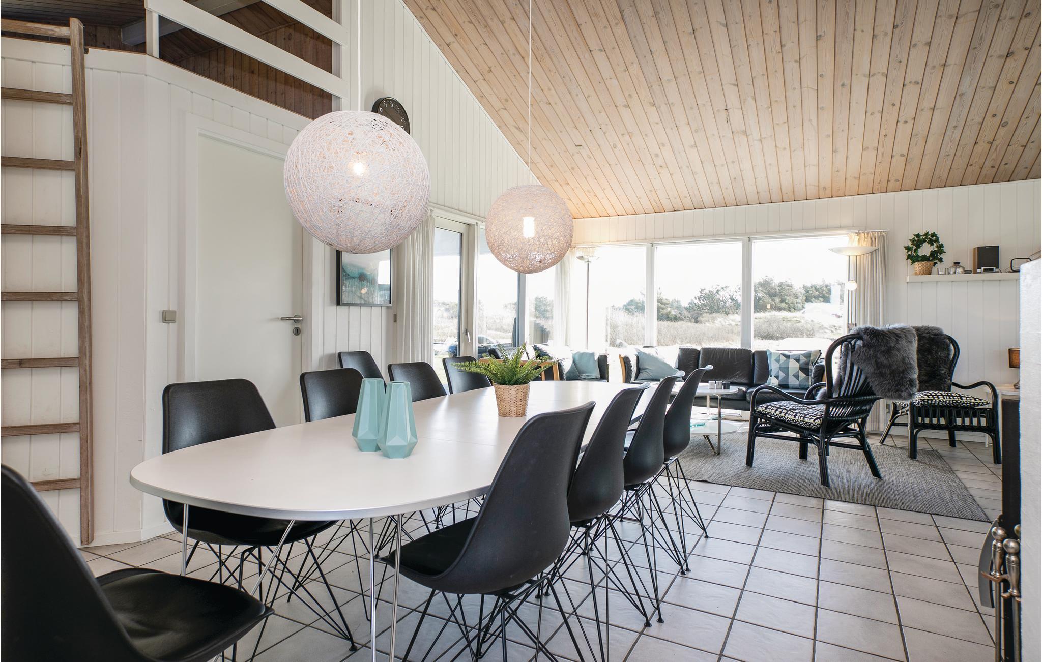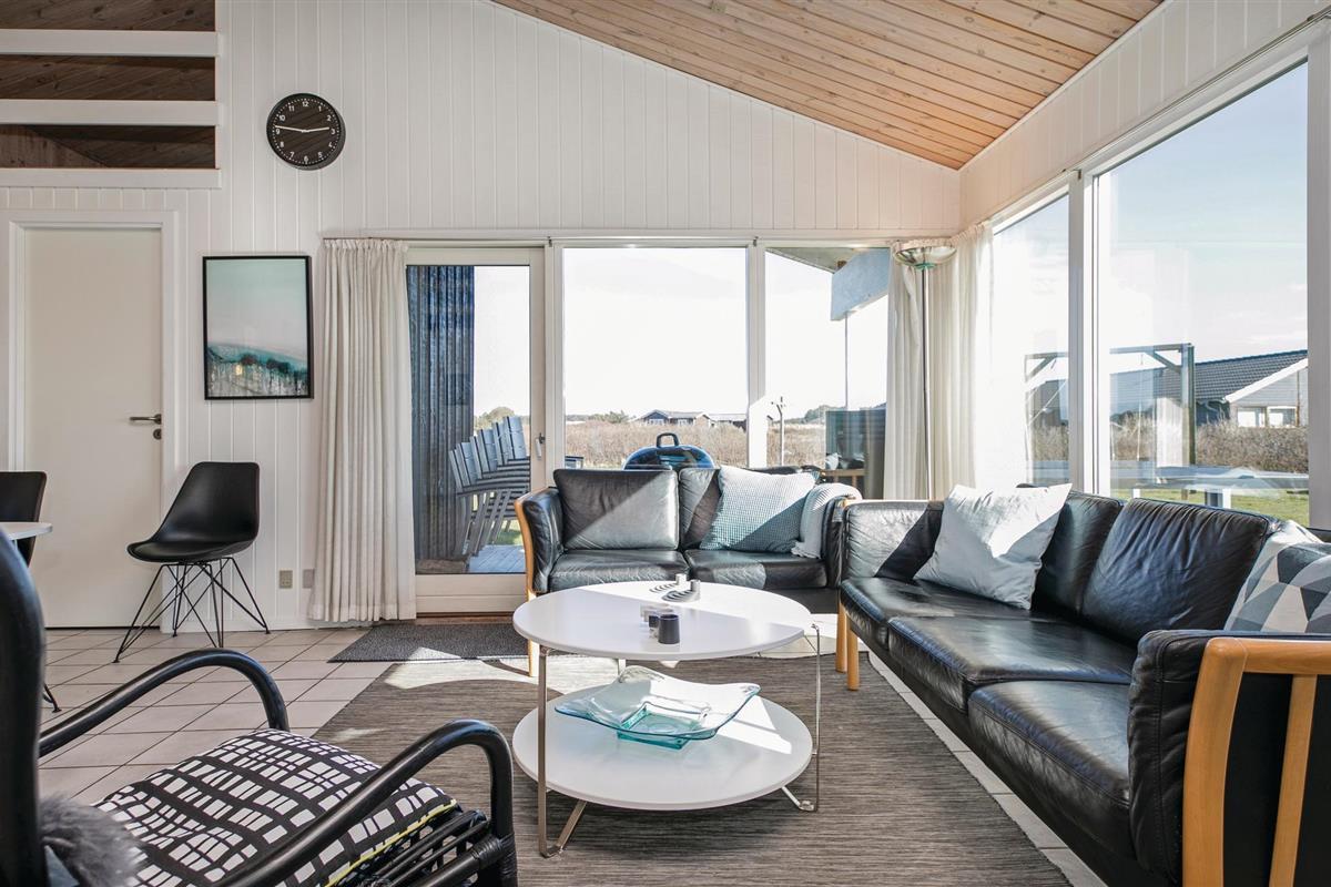 Dit comfortabele vakantiehuis is prachtig gelegen net ten zuiden van het stadje Løkken. Het interieur is vriendelijk en uitnodigend, vooral de keuken-woonkamer met zijn houtkachel. Op koele avonden verspreidt het de juiste hoeveelheid gezelligheid en geborgenheid. De vijf slaapkamers zijn links en rechts van de woonkamer verdeeld, waardoor het huis goed geschikt is voor twee gezinnen. Let er wel op dat de bedden vrij laag zijn. Een zwembad en een kinderbad zorgen voor waterpret voor alle leeftijden. Daarna kunt u ontspannen in de whirlpool en de sauna. Het huis heeft een gedeeltelijk overdekt terras en een perceel waar u een balletje kunt slaan. De stad Løkken ligt op loopafstand en is een geweldige plek om te wandelen en een kopje koffie te drinken in de zomer. Er is een ontspannen voetgangerszone met veel leuke winkelmogelijkheden, cafés, bowlingcentra en nog veel meer dat u zich op vakantie kunt wensen.