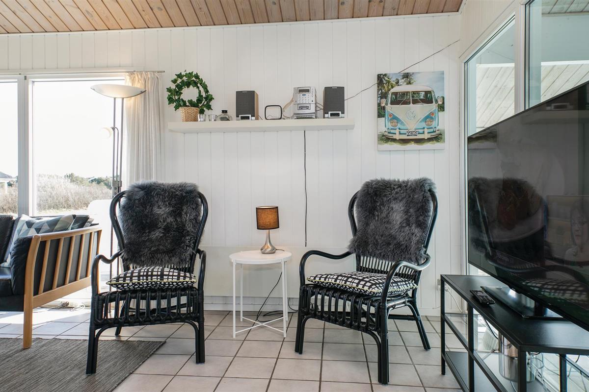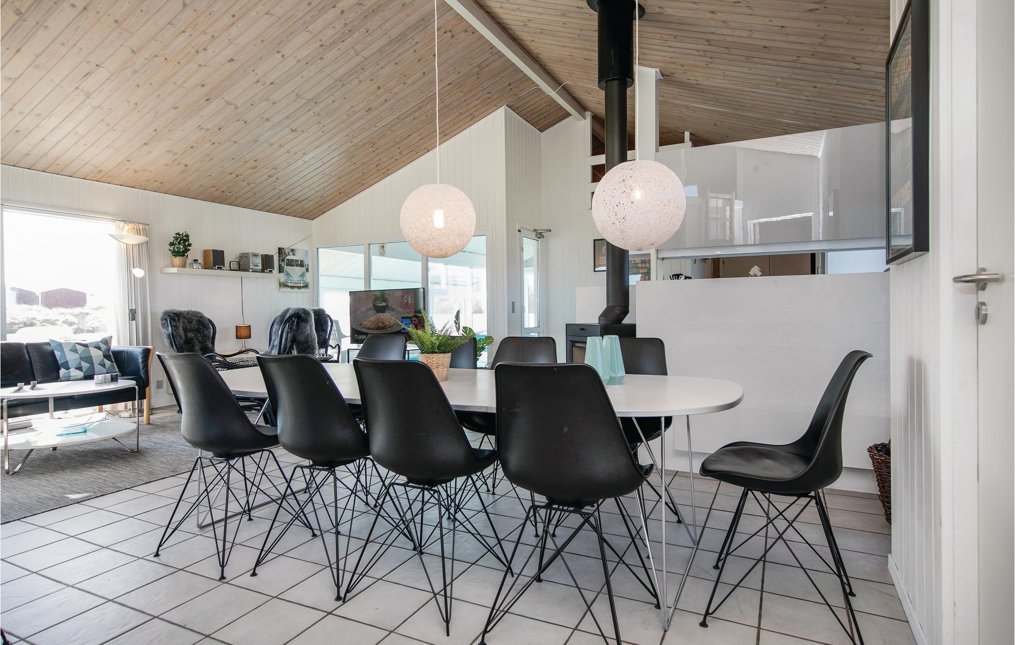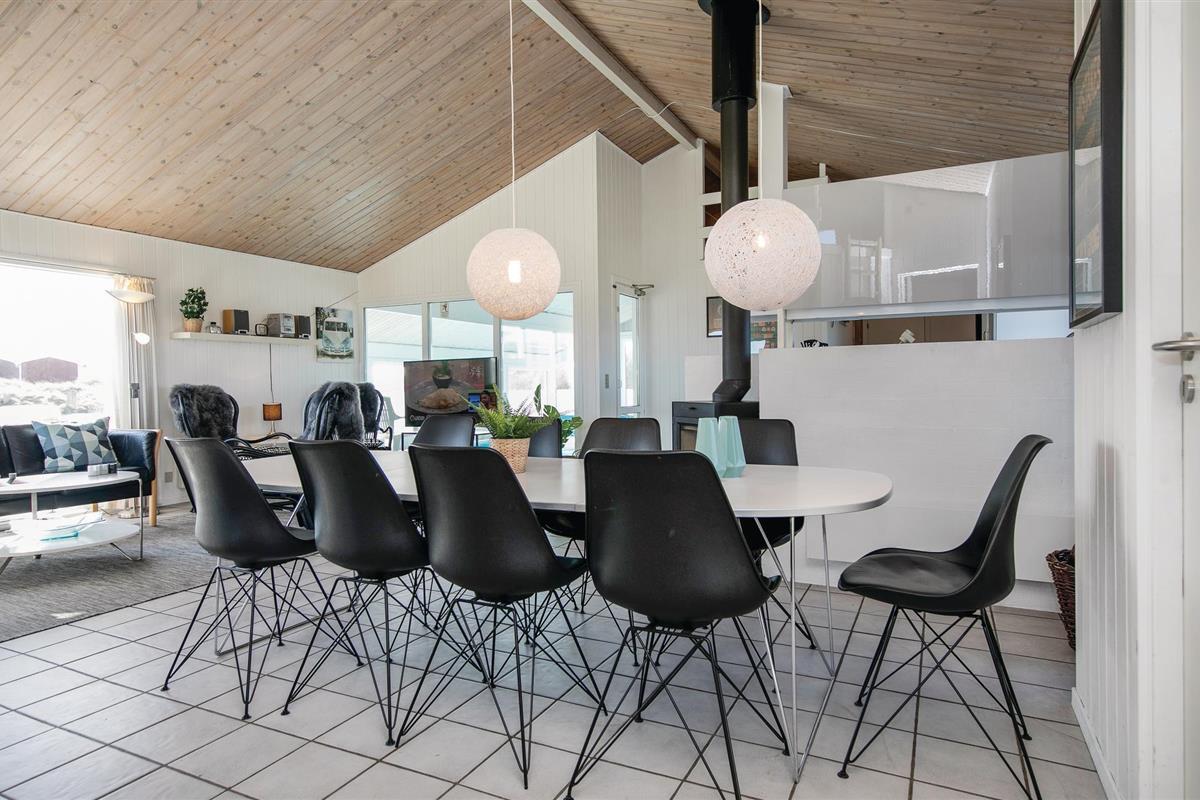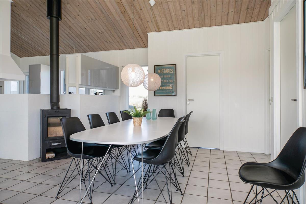 Dit comfortabele vakantiehuis is prachtig gelegen net ten zuiden van het stadje Løkken. Het interieur is vriendelijk en uitnodigend, vooral de keuken-woonkamer met zijn houtkachel. Op koele avonden verspreidt het de juiste hoeveelheid gezelligheid en geborgenheid. De vijf slaapkamers zijn links en rechts van de woonkamer verdeeld, waardoor het huis goed geschikt is voor twee gezinnen. Let er wel op dat de bedden vrij laag zijn. Een zwembad en een kinderbad zorgen voor waterpret voor alle leeftijden. Daarna kunt u ontspannen in de whirlpool en de sauna. Het huis heeft een gedeeltelijk overdekt terras en een perceel waar u een balletje kunt slaan. De stad Løkken ligt op loopafstand en is een geweldige plek om te wandelen en een kopje koffie te drinken in de zomer. Er is een ontspannen voetgangerszone met veel leuke winkelmogelijkheden, cafés, bowlingcentra en nog veel meer dat u zich op vakantie kunt wensen.
