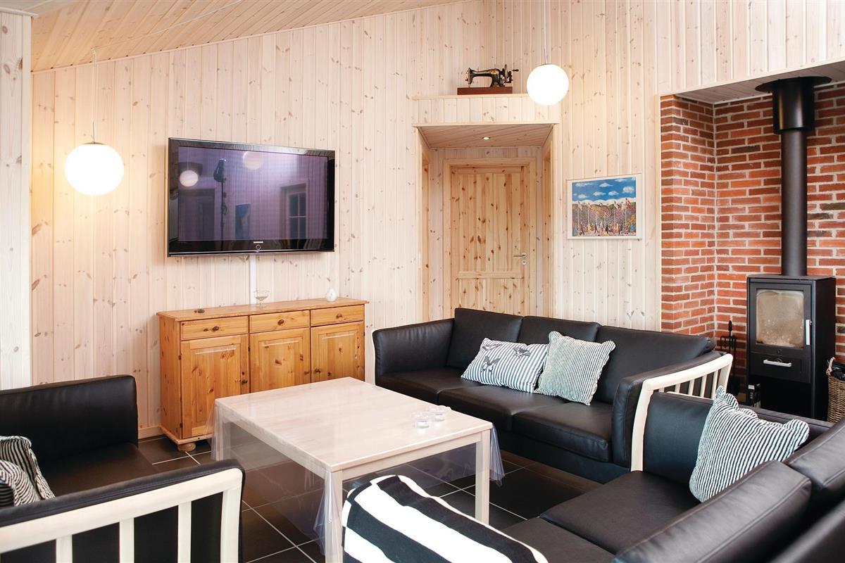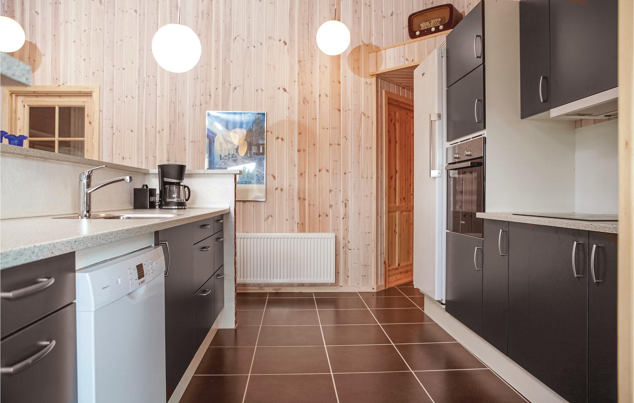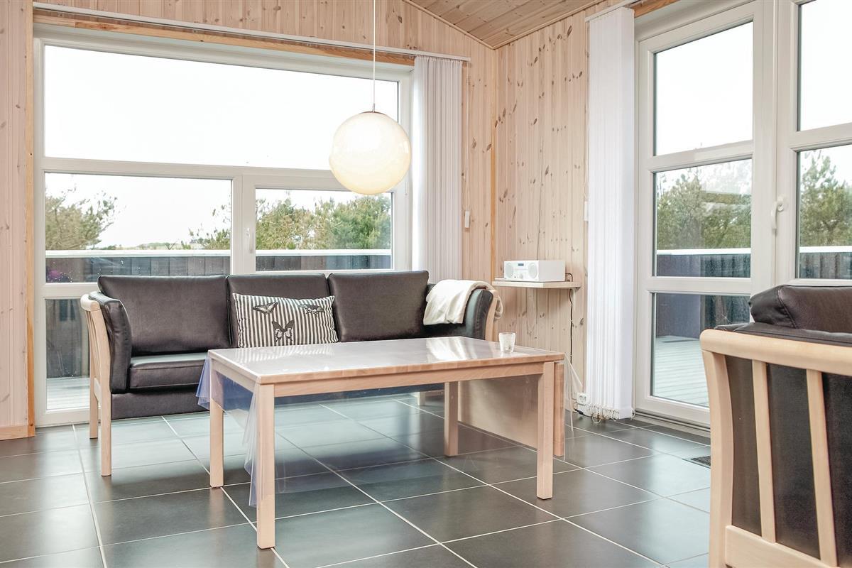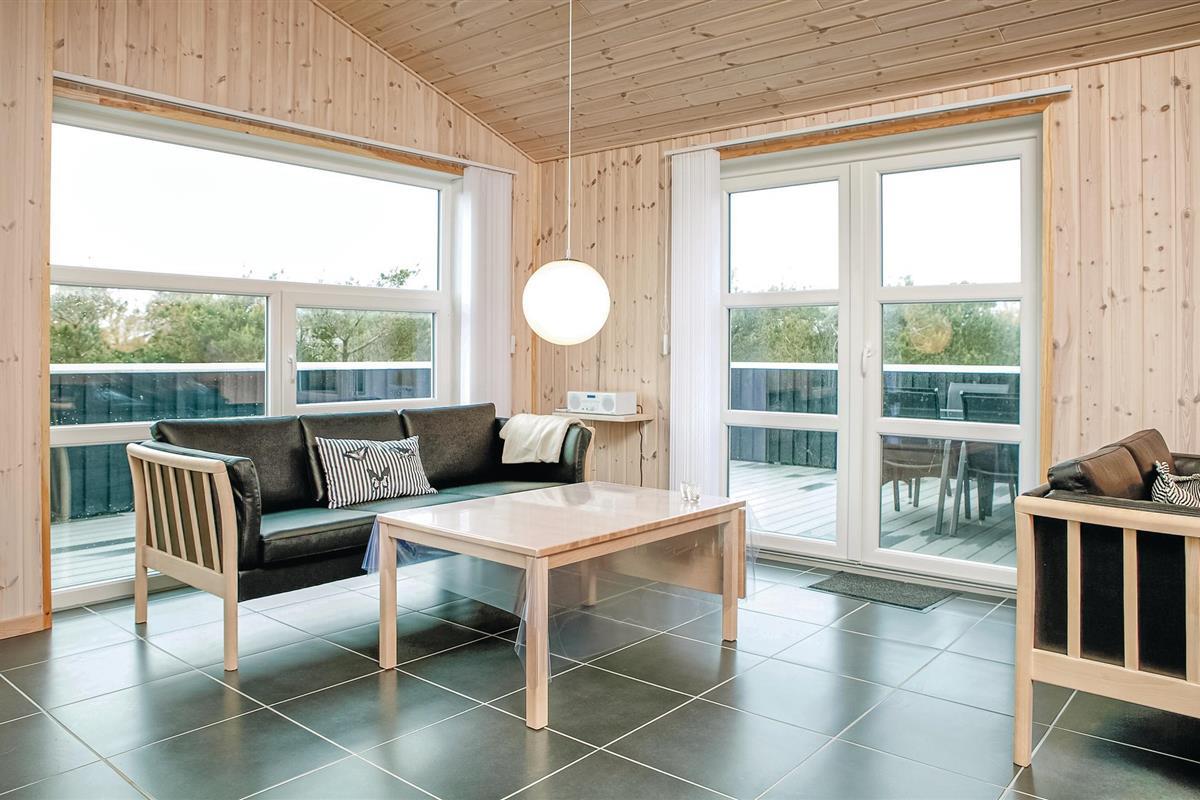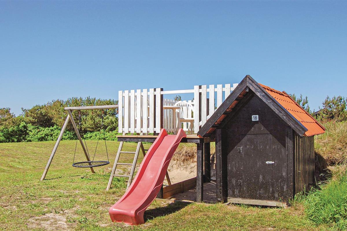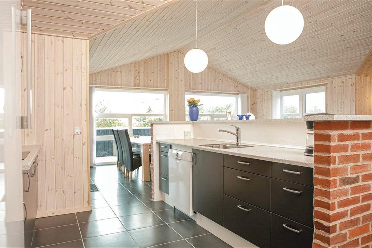 Dit vakantiehuis ligt op een groot, open natuurperceel met de zee, het brede zandstrand en de stad Løkken op loopafstand. Er zijn twee badkamers in het huis, een met een whirlpool, de andere met een sauna. Aan de andere kant van het huis zijn twee slaapkamers