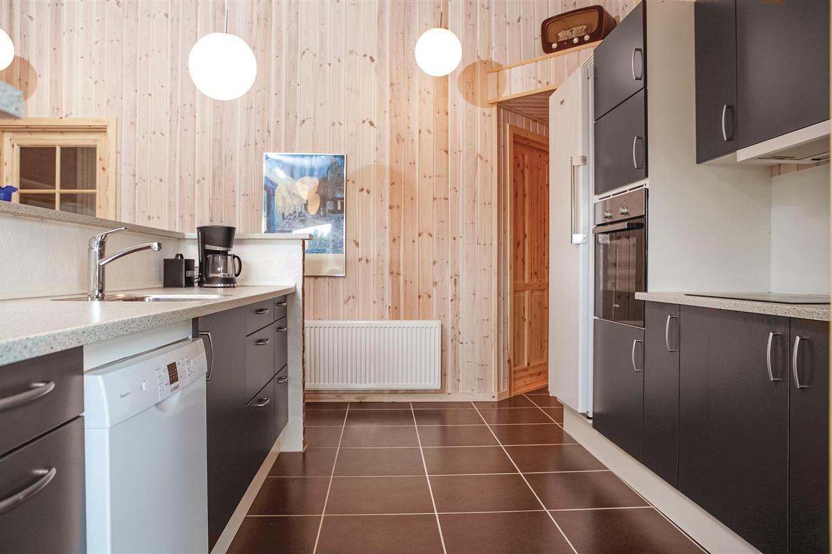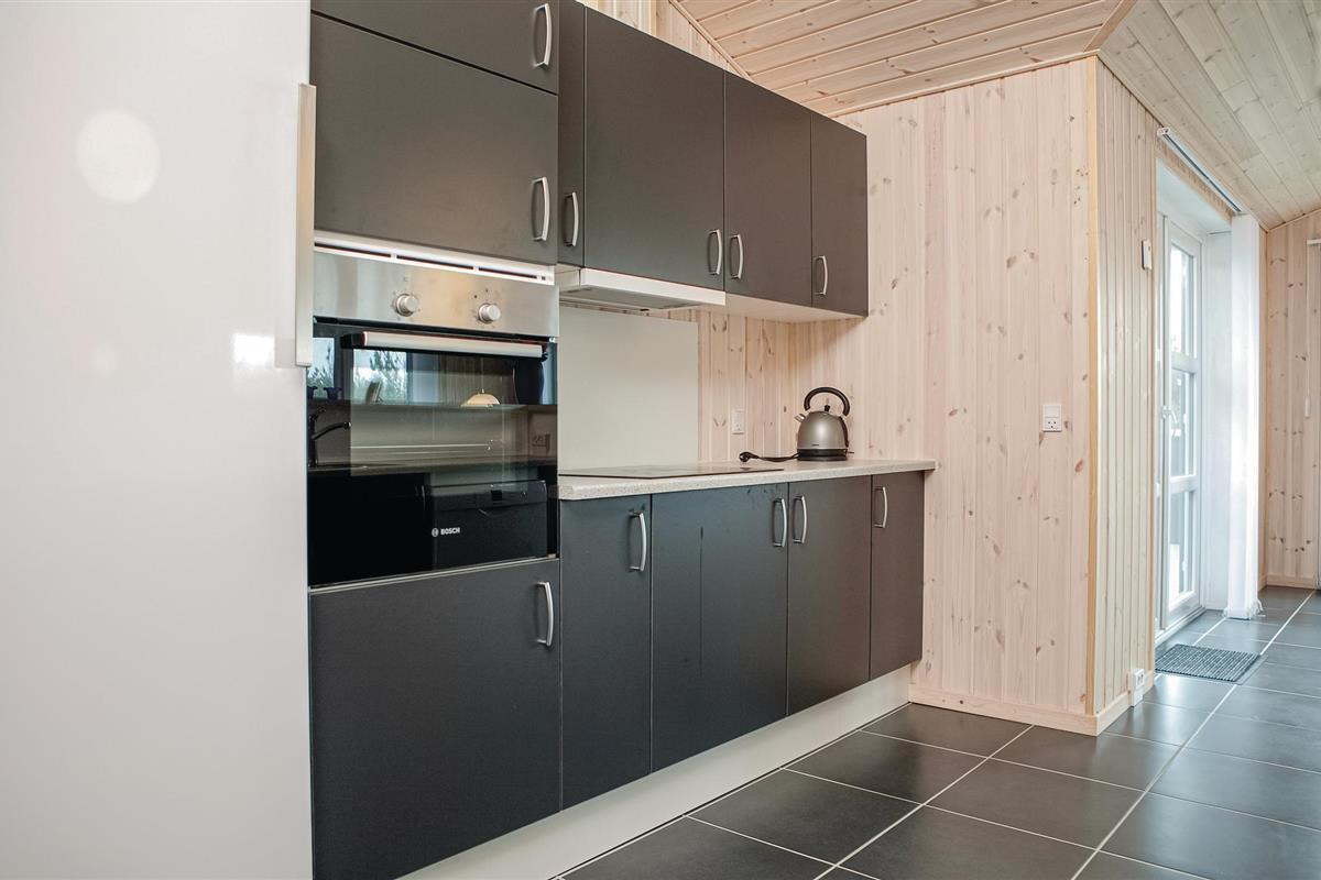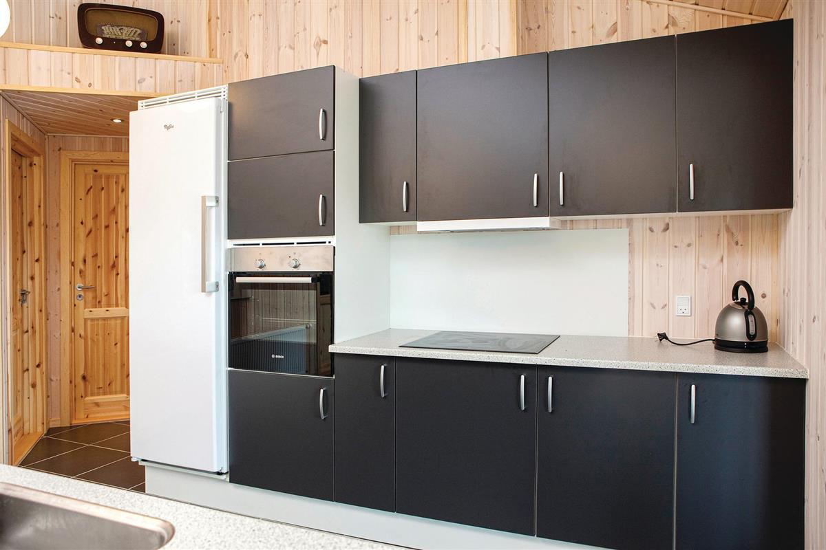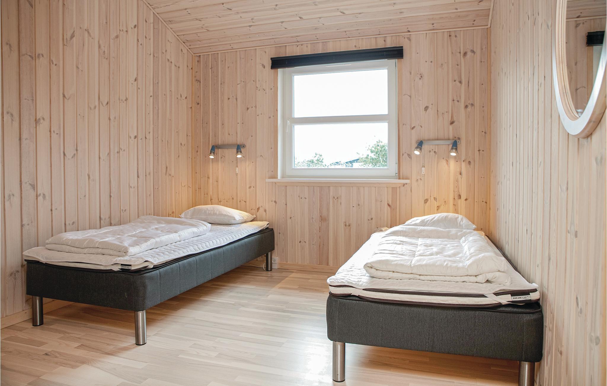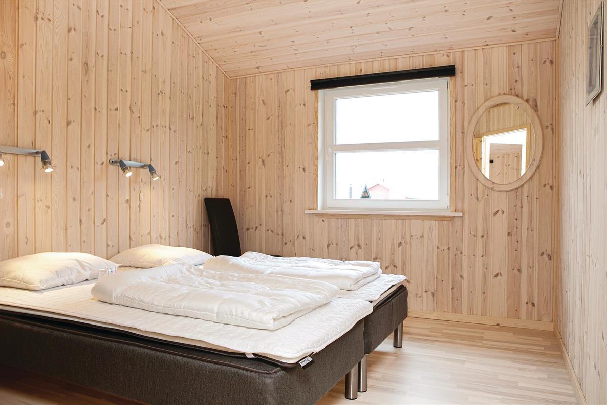 twee slaapkamers met goede bedden en houten vloeren. In het midden van het huis is de lichte keuken en de woonkamer met een open plafond tot in de nok. Het interieur is gezellig en er ligt een houten vloer. Het terras voor de woonkamer is omheind, ideaal als u kleine kinderen heeft. De ruime woning biedt veel ruimte om te spelen.