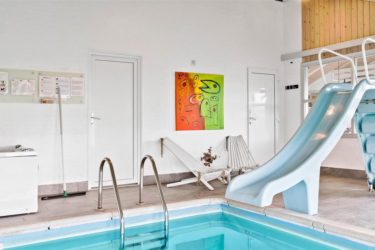 Comfortabel vakantiehuis nabij strand Løkken met binnenzwembad, sauna en speeltoestellen voor een fijne familievakantie.