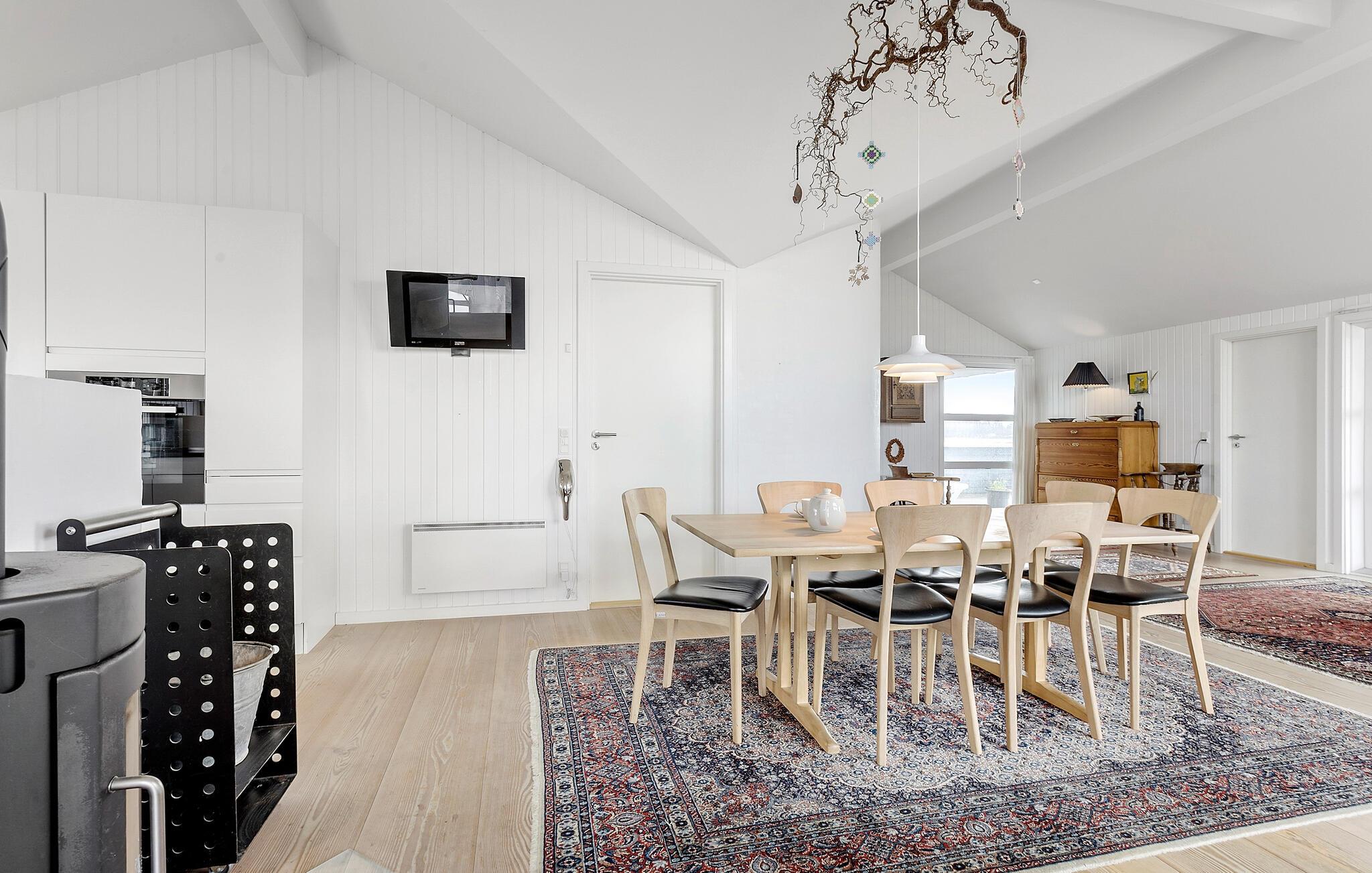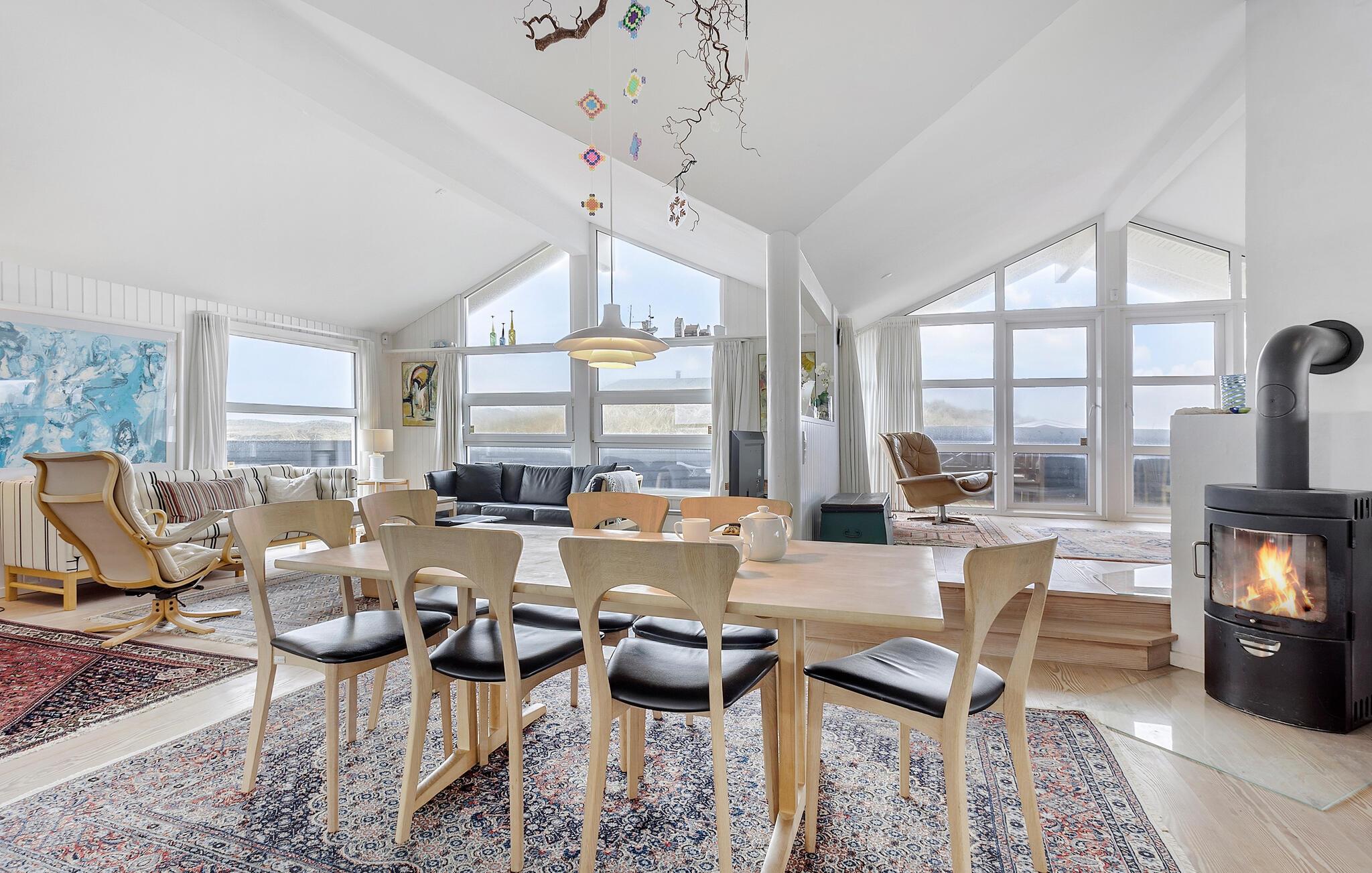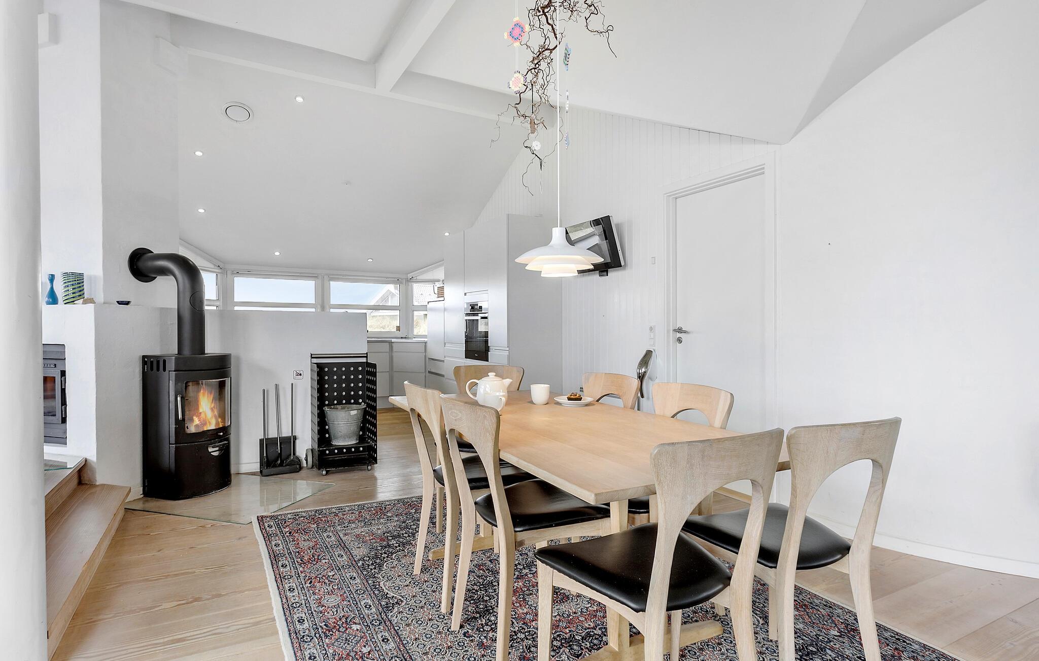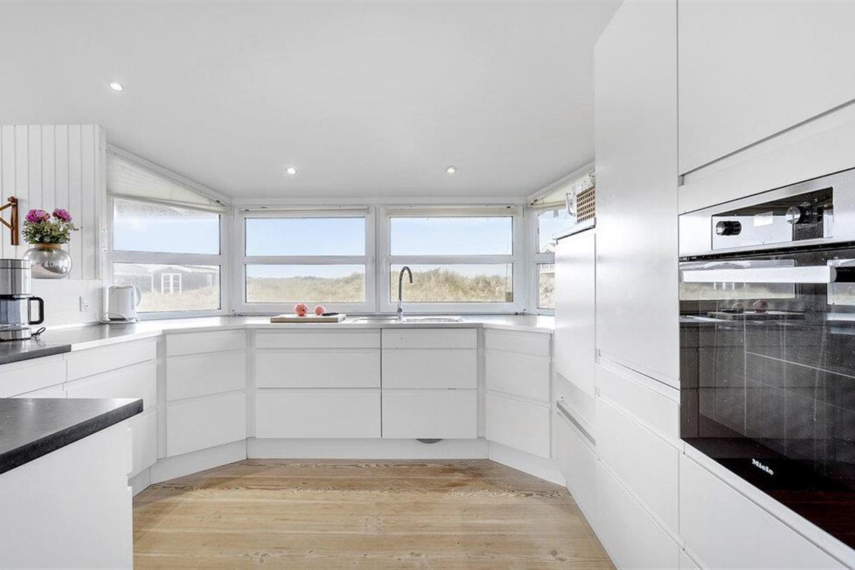 Je gezellige vakantiehuis midden in het duinlandschap in Hvorup Klit bij Løkken nodigt je uit voor een ontspannen vakantie met het hele gezin. De moderne, lichte keuken biedt veel ruimte om te koken en een prachtig uitzicht op de omliggende natuurgebieden. Het woongedeelte wordt gekenmerkt door grote ramen die veel licht binnenlaten en een comfortabele en uitnodigende sfeer creëren. Geniet van je vrije vakantietijd op een van de vele banken en breng gezellige avonden door met spelletjes spelen en stimulerende gesprekken bij de houtkachel.