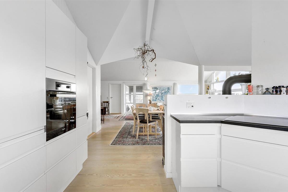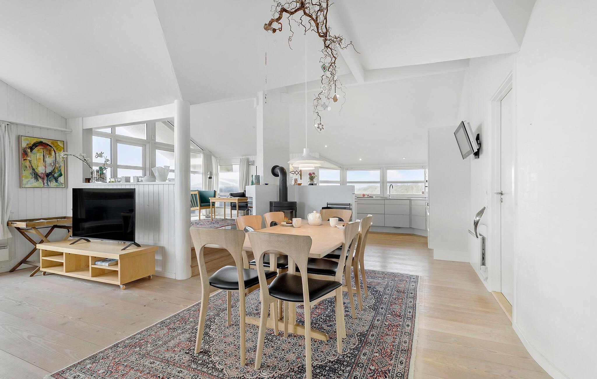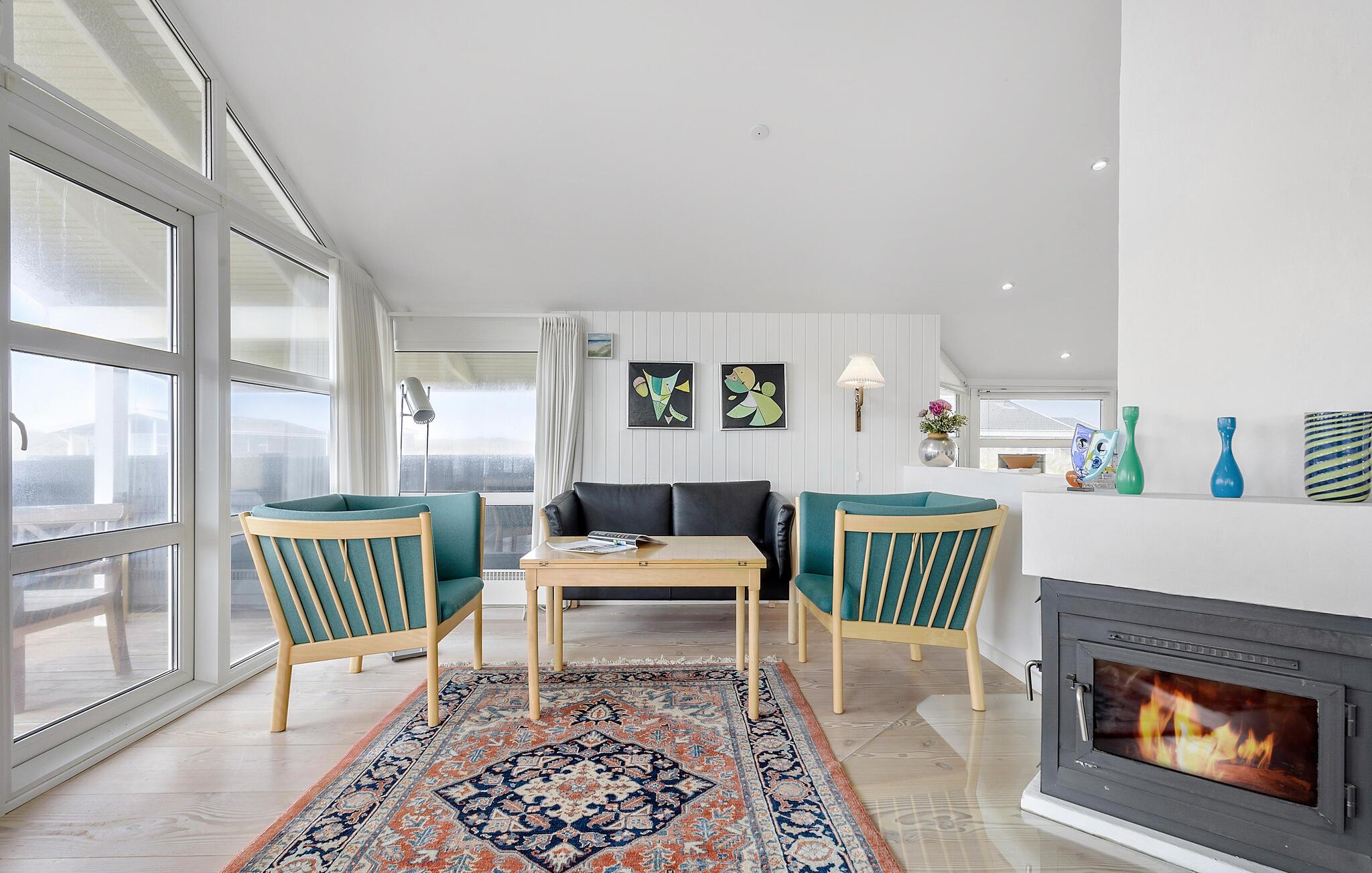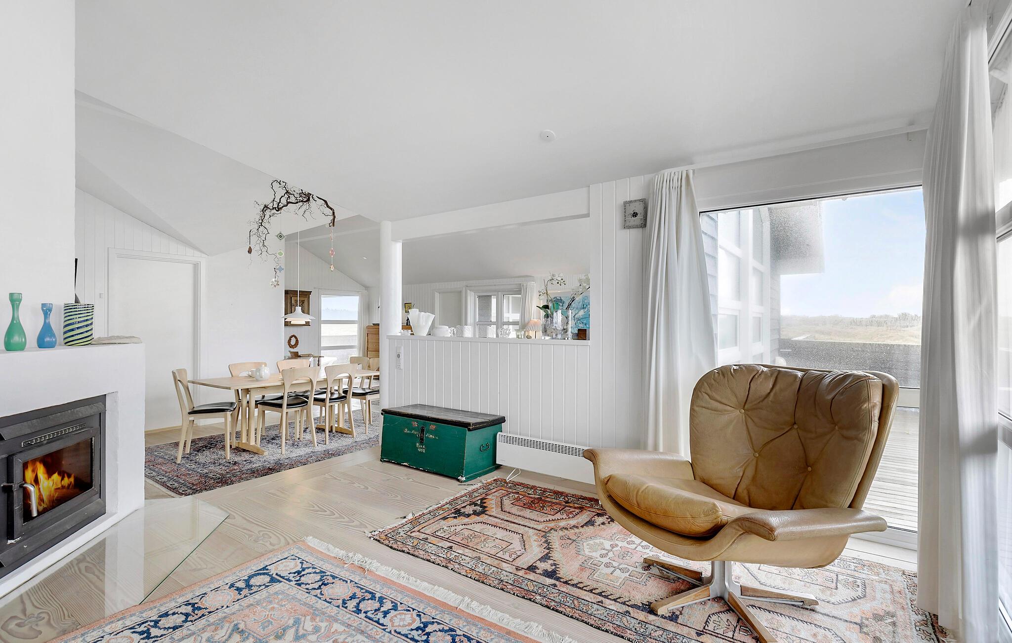 Je gezellige vakantiehuis midden in het duinlandschap in Hvorup Klit bij Løkken nodigt je uit voor een ontspannen vakantie met het hele gezin. De moderne, lichte keuken biedt veel ruimte om te koken en een prachtig uitzicht op de omliggende natuurgebieden. Het woongedeelte wordt gekenmerkt door grote ramen die veel licht binnenlaten en een comfortabele en uitnodigende sfeer creëren. Geniet van je vrije vakantietijd op een van de vele banken en breng gezellige avonden door met spelletjes spelen en stimulerende gesprekken bij de houtkachel.