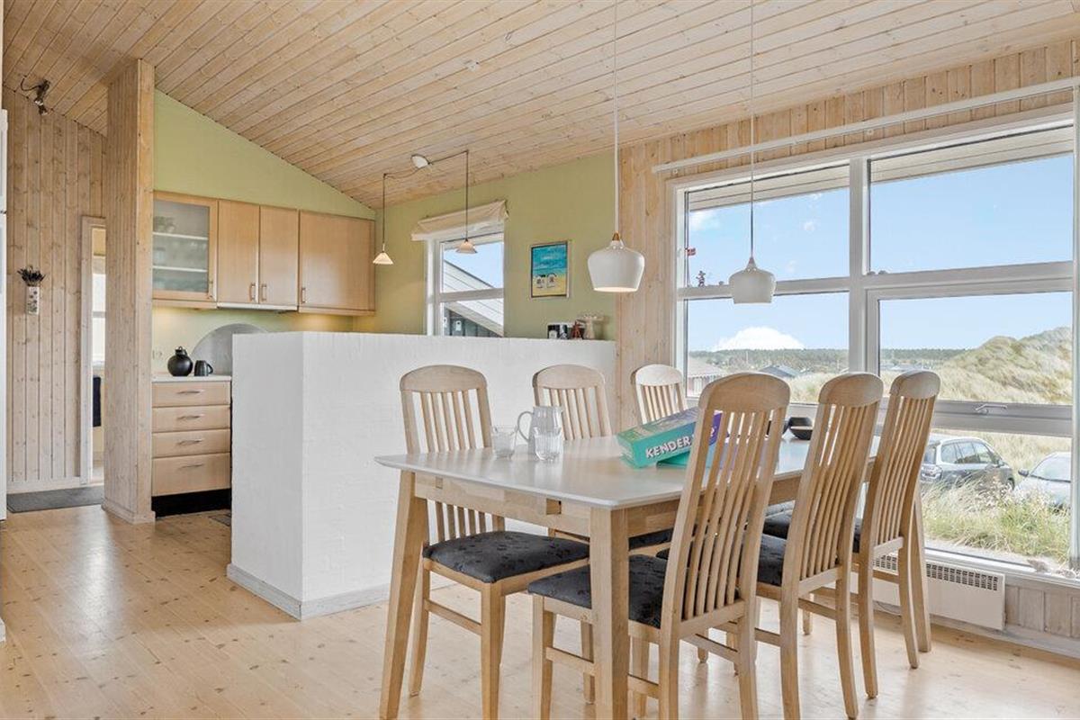 Het beschutte terras van het vakantiehuis is de ideale plek om te genieten van de frisse lucht en de prachtige omgeving. Met directe toegang tot de duinen kun je lange wandelingen maken en de natuur verkennen. De zee, die je kunt zien vanuit je vakantiehuis, ligt op slechts een klein stukje lopen en nodigt je uit voor een verfrissende duik. Het levendige stadje Løkken, bekend om zijn iconische witte badhuizen, biedt talloze gezellige cafés, restaurants en winkels. Voor de avonturiers zijn er mogelijkheden om te surfen en kitesurfen.