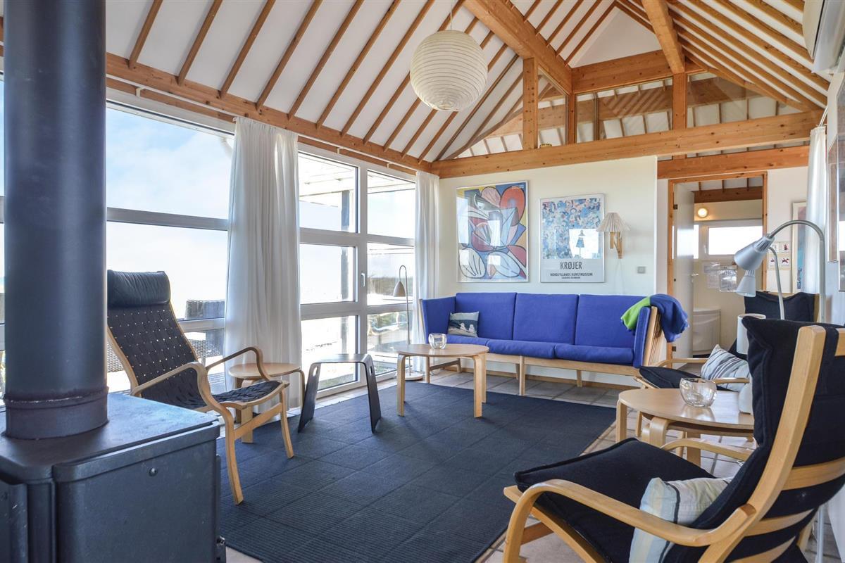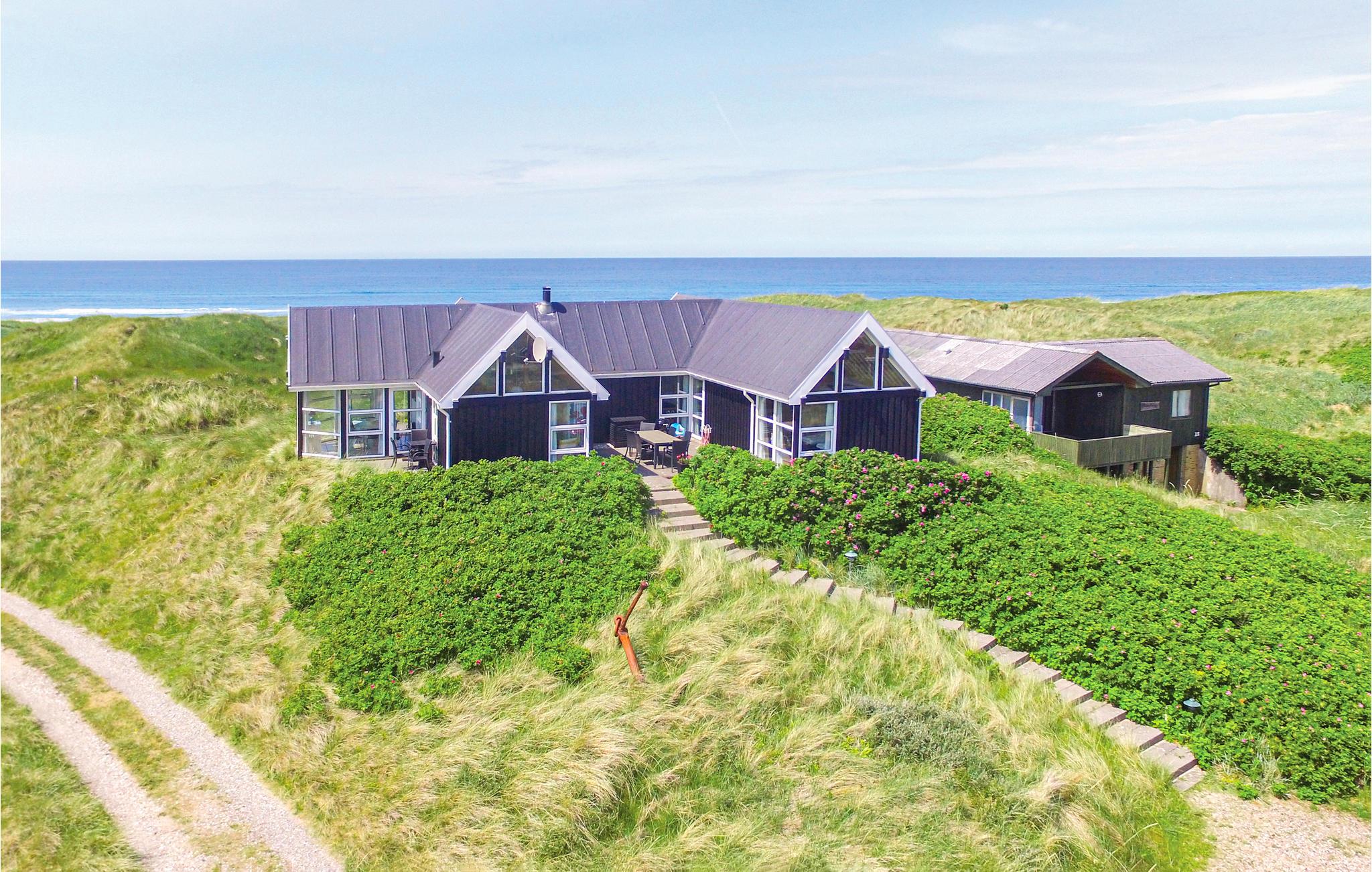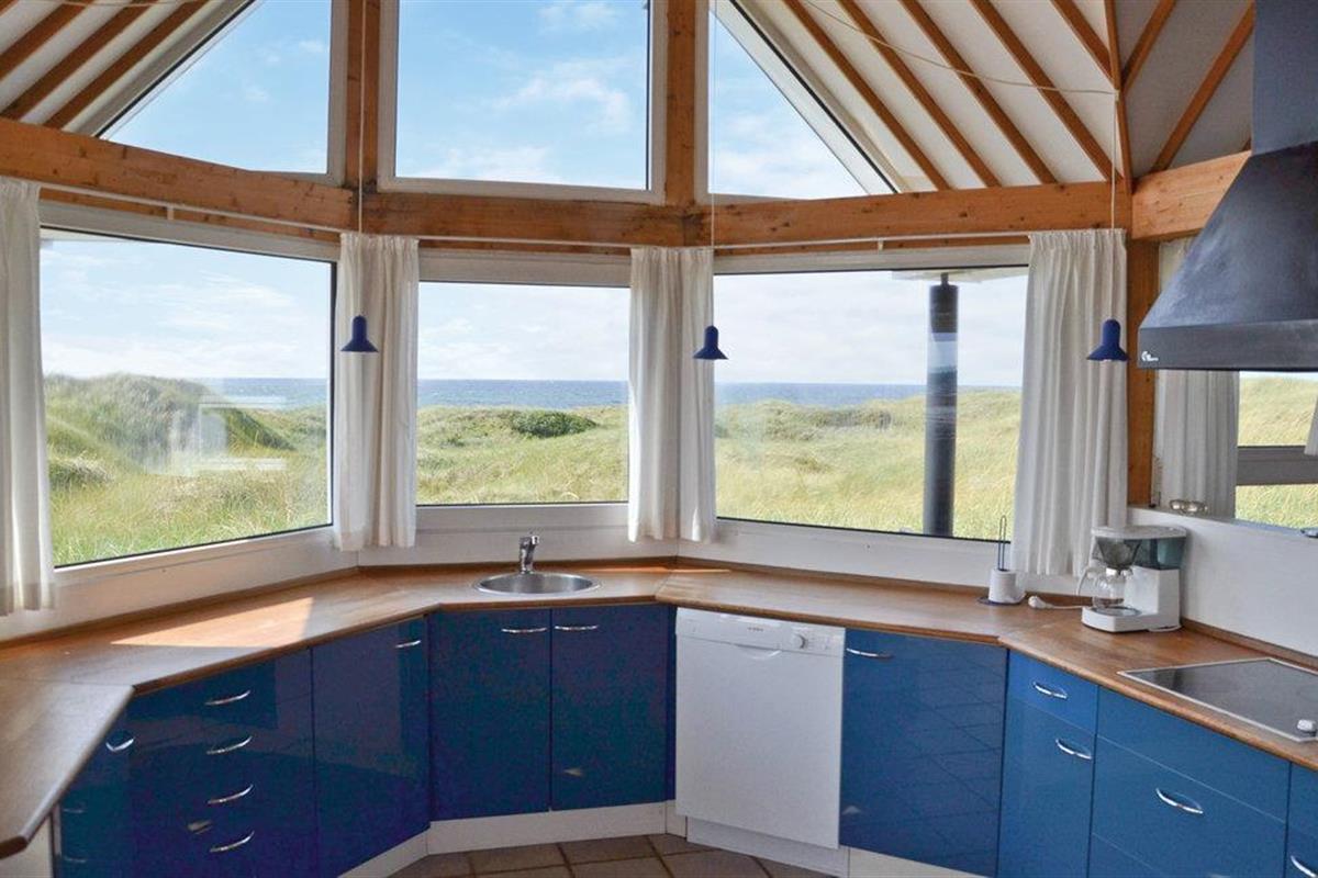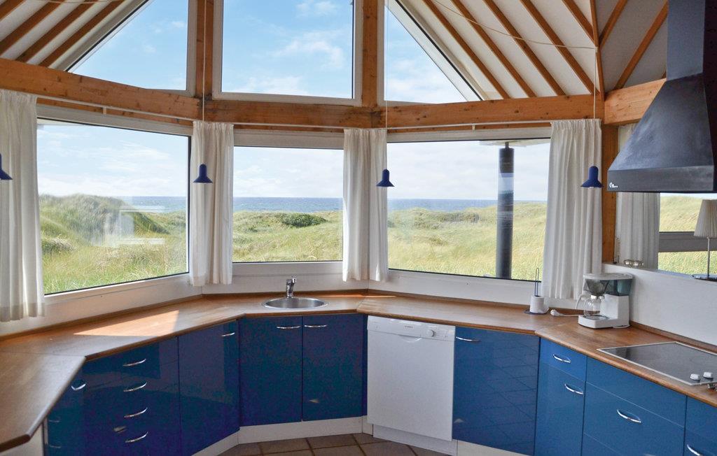 Hoog bij Løkken vindt u dit vakantiehuis op de beste locatie in de omgeving. Met een fantastisch uitzicht over de zee en de duinen in het westen, in het oosten heeft u een vrij uitzicht over het vakantiehuisgebied. Elk seizoen heeft hier zijn charme. Na een behoorlijke herfststorm kun je amber vinden in het natte zand. Er zijn ook veel mooie natuurstenen die tot de mooiste sieraden gemaakt kunnen worden. Het gebied biedt een scala aan activiteiten voor het hele gezin. Er zijn bowlingbanen, pretparken voor kinderen, subtropische zwembaden, golfbanen, visparken, maneges, sporthallen en nog veel meer. Bezoek ook Fårup Aquapark & Sommerland, het grootste in zijn soort in Denemarken. Bij betaling van de entree zijn alle activiteiten gratis. Supermarkt en restaurants zijn het hele jaar door geopend.