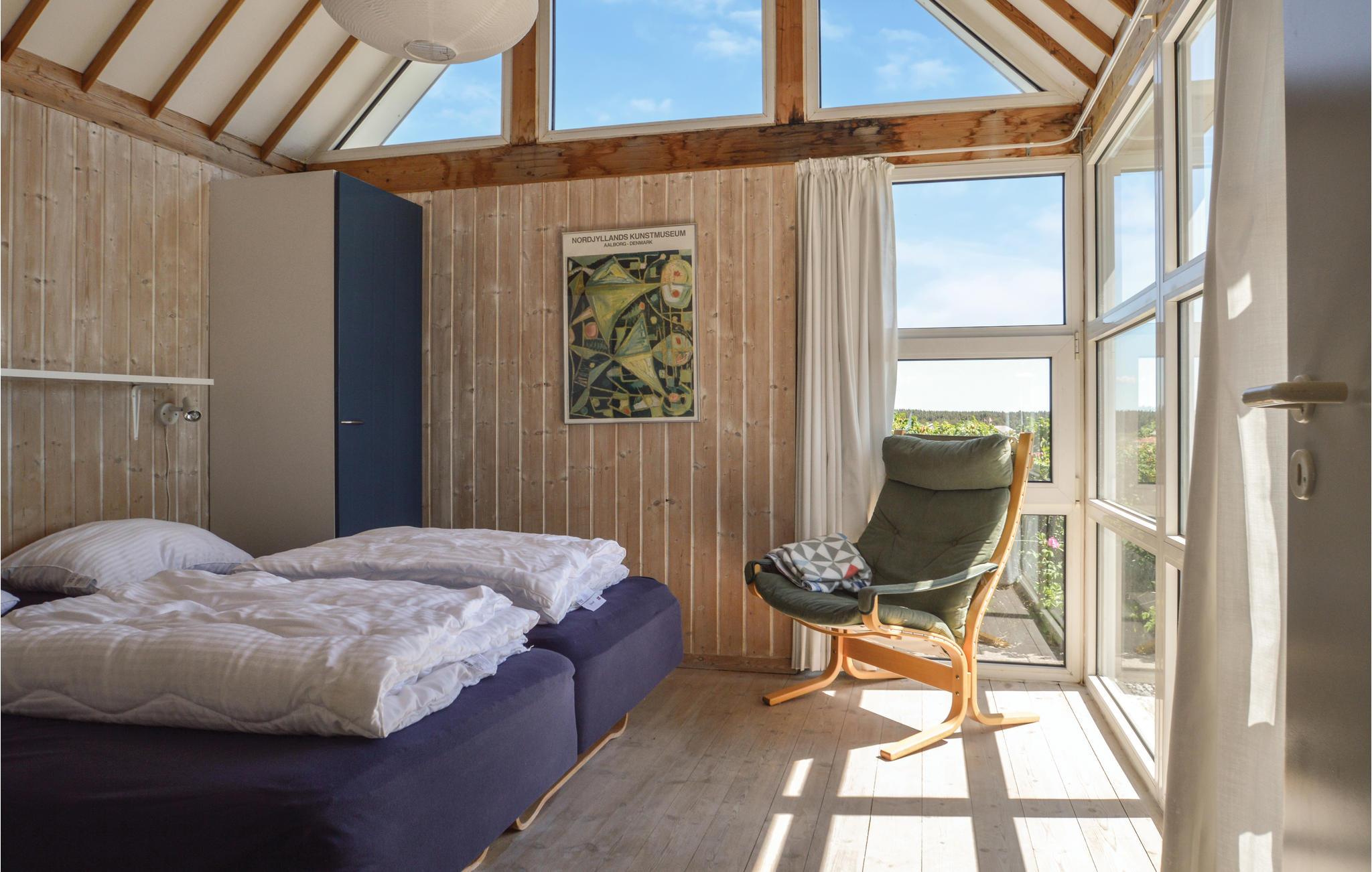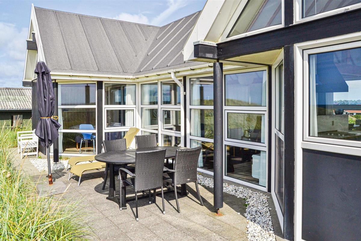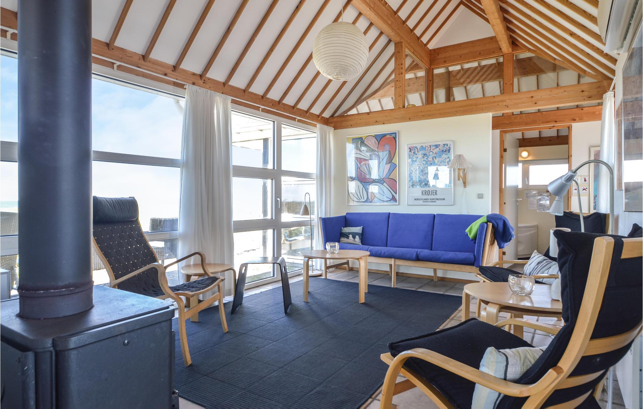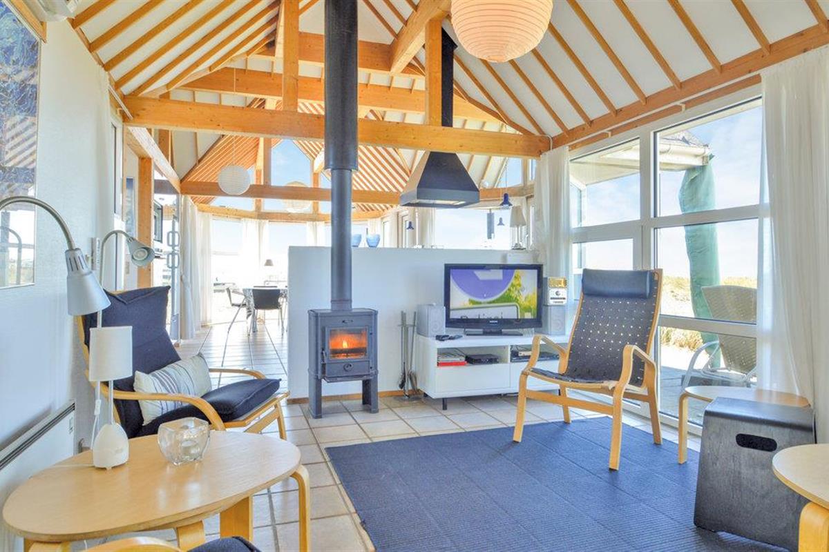 Hoog bij Løkken vindt u dit vakantiehuis op de beste locatie in de omgeving. Met een fantastisch uitzicht over de zee en de duinen in het westen, in het oosten heeft u een vrij uitzicht over het vakantiehuisgebied. Elk seizoen heeft hier zijn charme. Na een behoorlijke herfststorm kun je amber vinden in het natte zand. Er zijn ook veel mooie natuurstenen die tot de mooiste sieraden gemaakt kunnen worden. Het gebied biedt een scala aan activiteiten voor het hele gezin. Er zijn bowlingbanen, pretparken voor kinderen, subtropische zwembaden, golfbanen, visparken, maneges, sporthallen en nog veel meer. Bezoek ook Fårup Aquapark & Sommerland, het grootste in zijn soort in Denemarken. Bij betaling van de entree zijn alle activiteiten gratis. Supermarkt en restaurants zijn het hele jaar door geopend.
