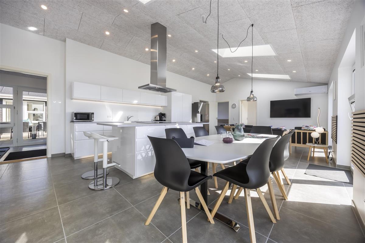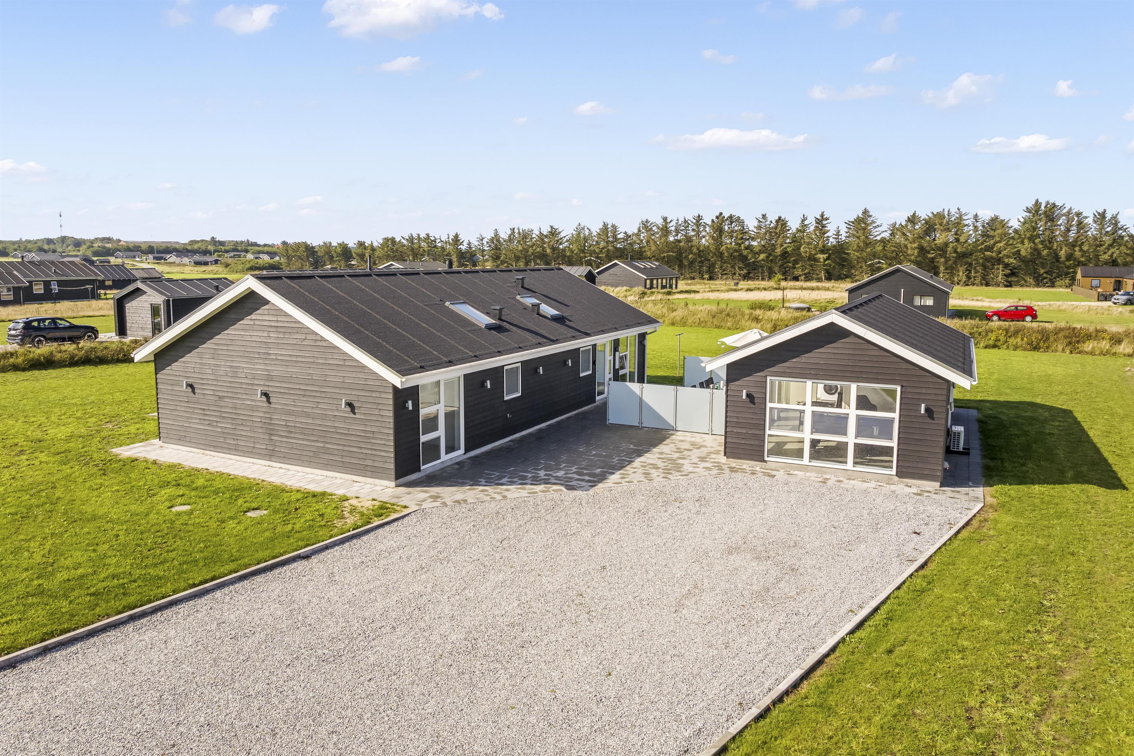 Surrounding the holiday home, you will find several lovely terraces that offer shelter and plenty of space for both sunbathing and open-air dining. Comfortable sun loungers, outdoor games, and a large lawn provide the perfect setting for ball games and fun for both children and adults. The house is also energy-efficient, equipped with a heat pump, and features its own charging station for electric cars – a modern solution that makes your stay both easier and greener.