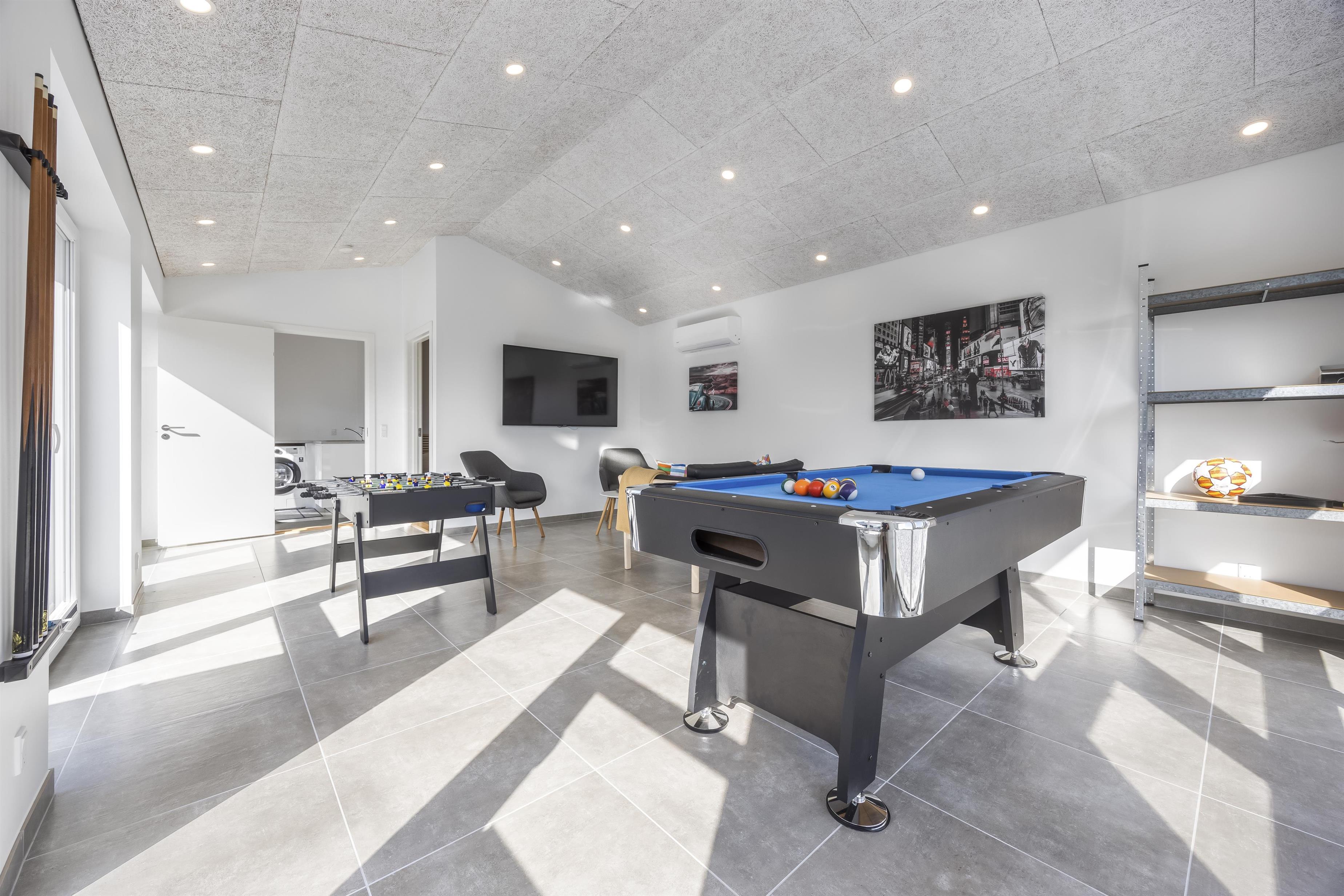 In the annex, you will find an additional bedroom and a bright activity room with a pool table and large TV – an ideal space for games, movies, and fun when the weather calls for indoor activities.
