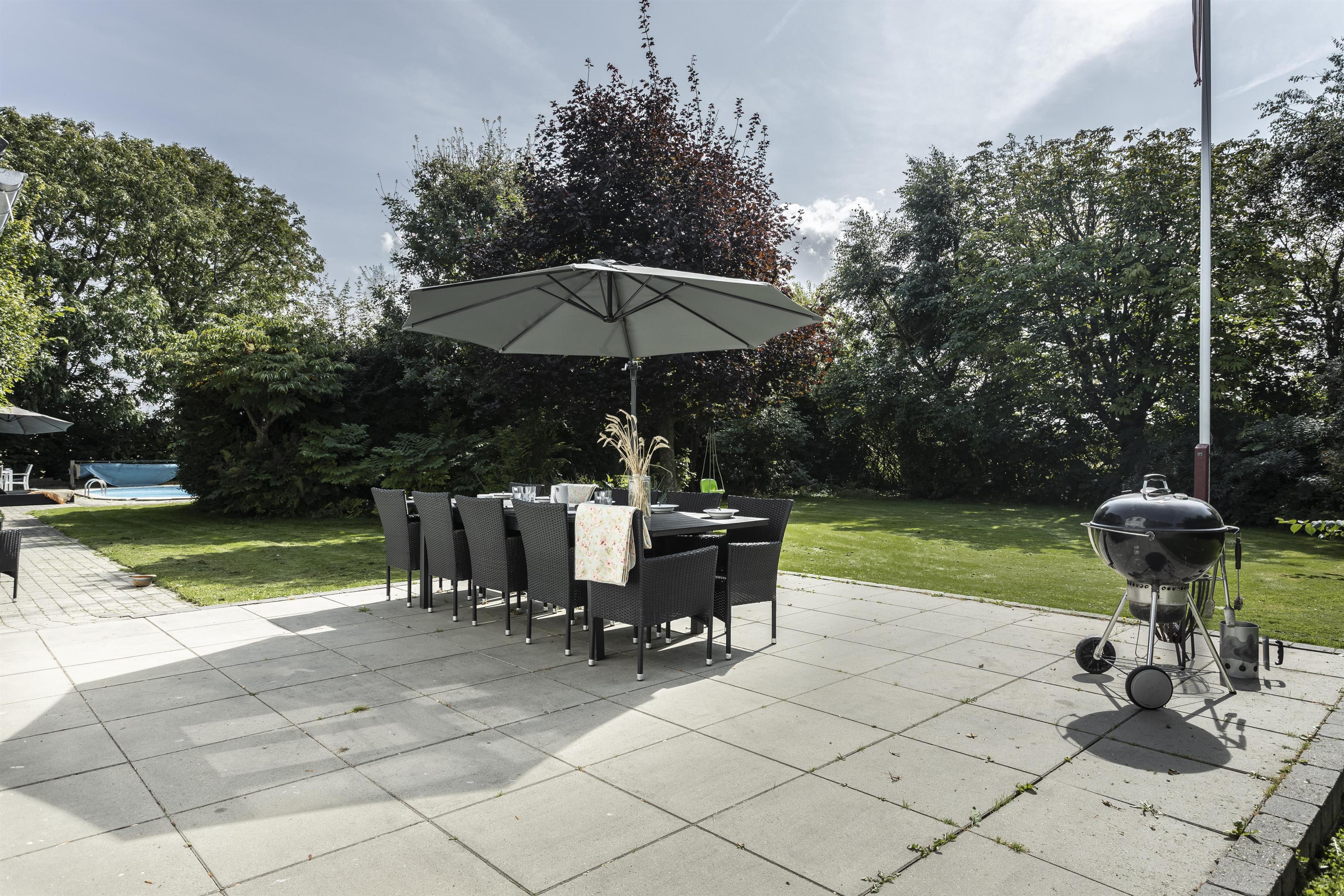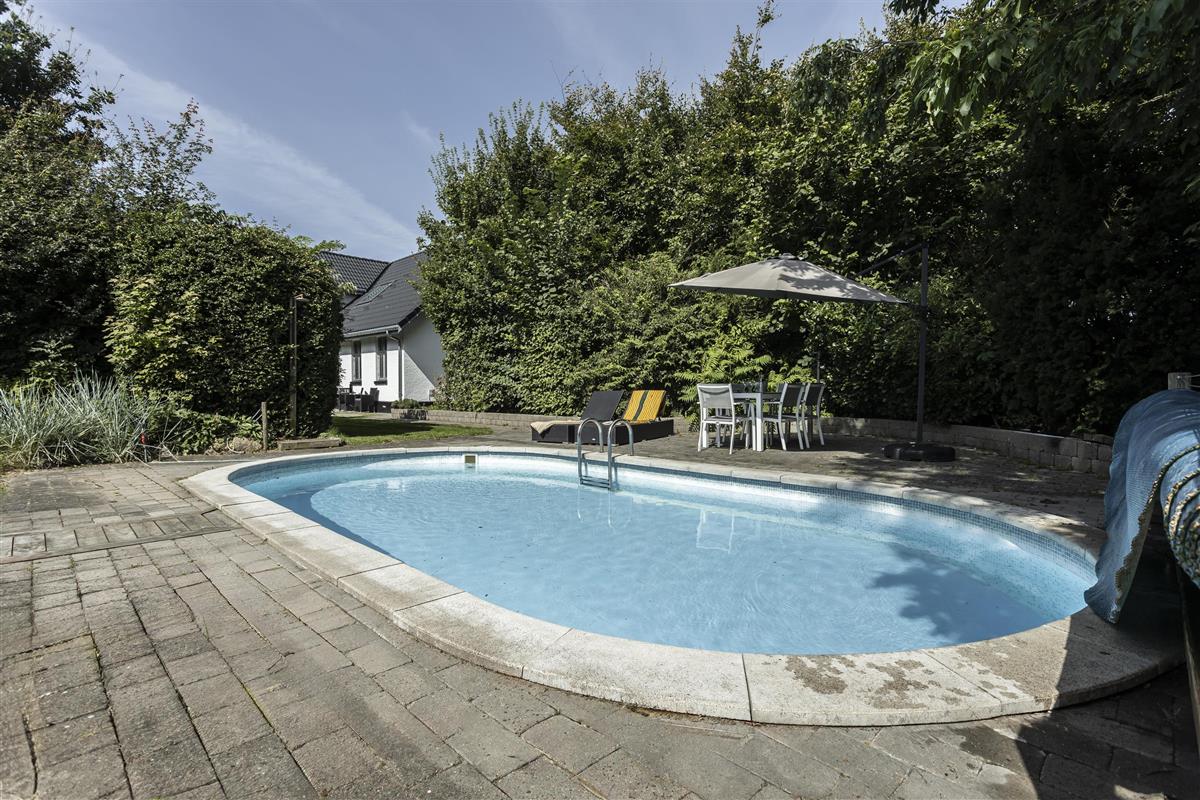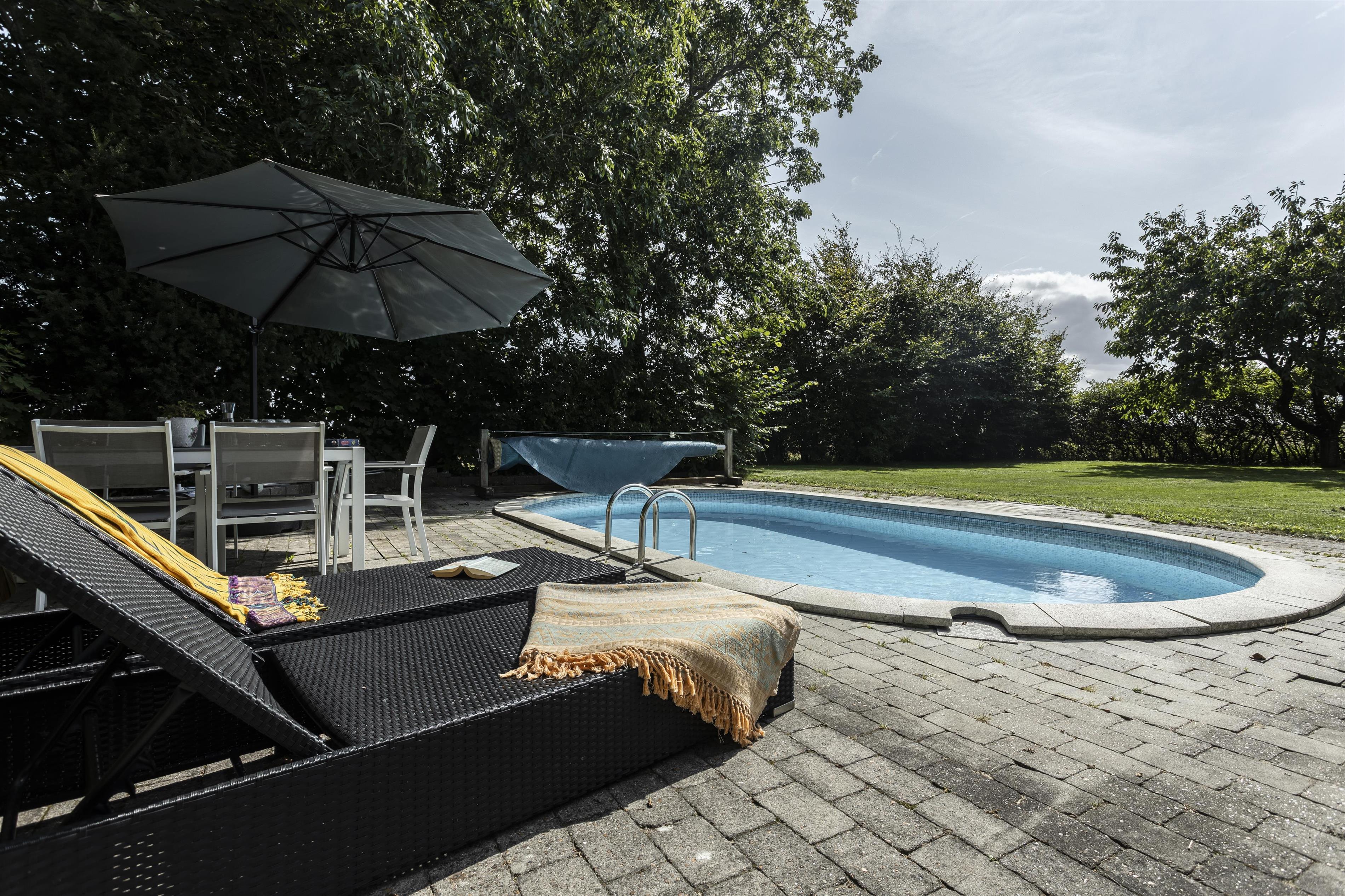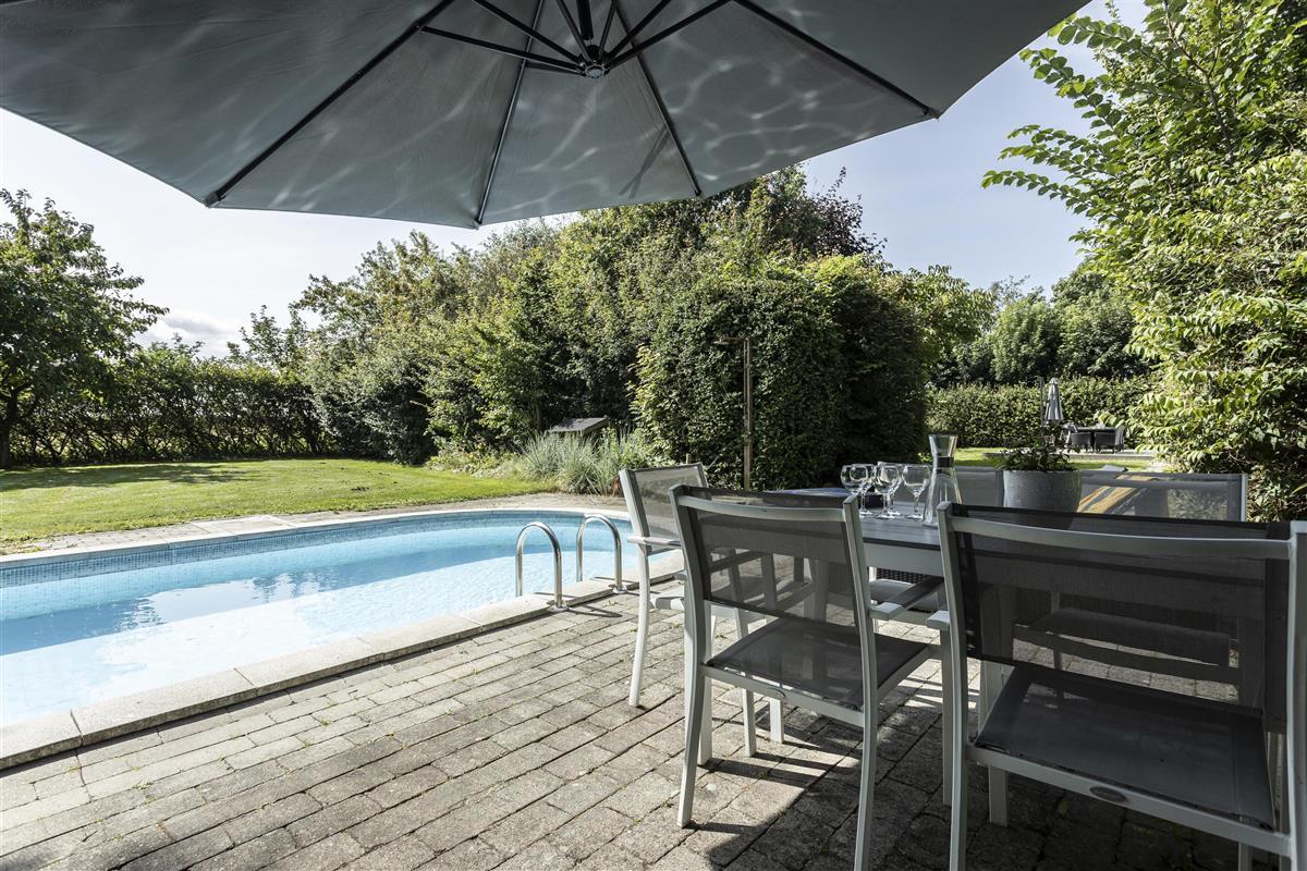 The house is surrounded by a large, private garden with plenty of space for play and relaxation. From the sunny terrace, you can enjoy the sounds of nature, barbecue meals outdoors, and let the children play freely. There are several cozy spots where you can sit and relax in good weather. The inviting pool, measuring 7.5 x 3.75 meters, is available during the summer months of June, July, and August and provides the perfect setting for relaxation and sunbathing on the loungers by the pool. The garden is the ideal place to enjoy outdoor life in peace and quiet.