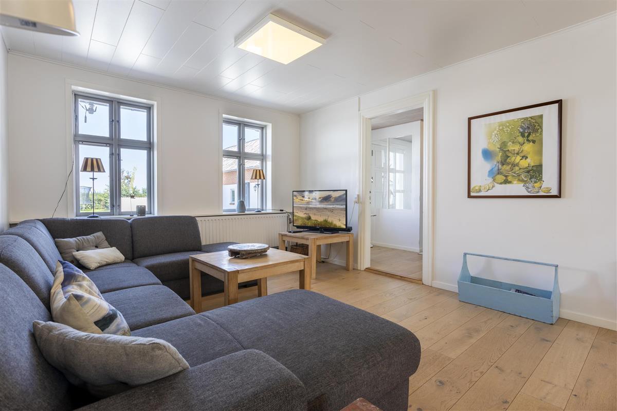 The spacious holiday house has been continuously renovated and now appears bright and inviting with modern amenities. In 2023, the house was updated with a new kitchen and roof, and it is energy-efficient, featuring an air-to-water heat pump. The next project for the house is a new and luxurious bathroom. Located on a large, secluded plot outside the town of Løkken, the house is perfect for those who seek privacy without being too far from town.