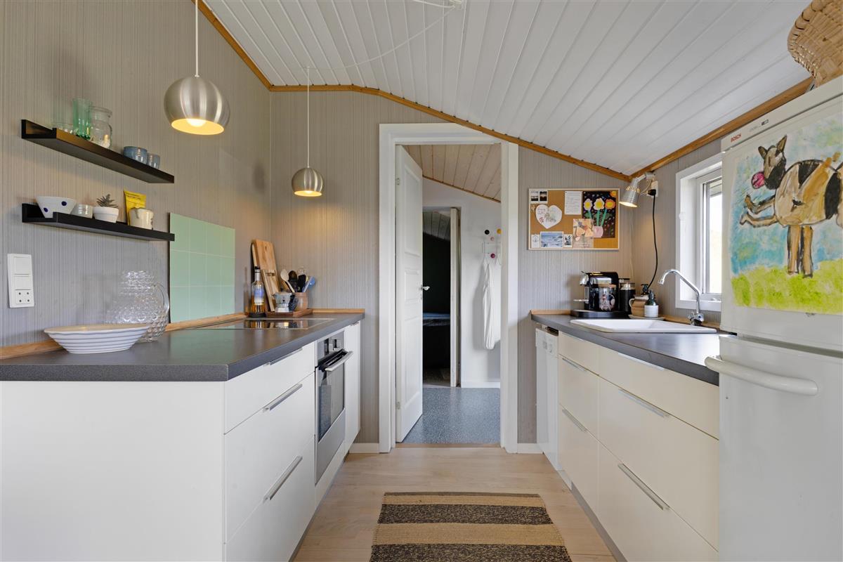 This holiday home accommodates up to 5 people across its delightful square meters. The house is traditionally furnished with 2 bedrooms, 1 bathroom, a lovely living room connected to the kitchen, and a covered terrace that allows you to enjoy the scenic surroundings. You can relax by the fireplace or take a short walk to the beach via the path that runs alongside the house. Parking is available at the house, located at the end of a quiet cul-de-sac. The style of the house offers classic Danish holiday home coziness, providing plenty of opportunities to enjoy your holiday both indoors and out.
