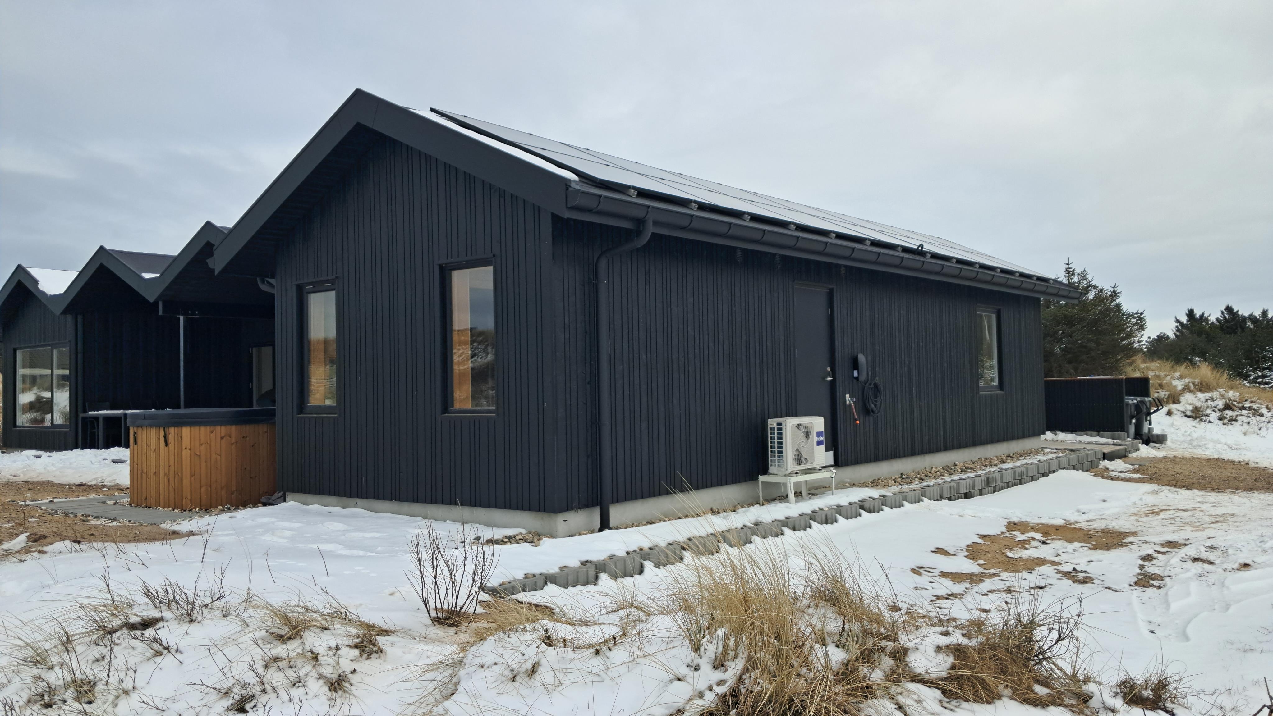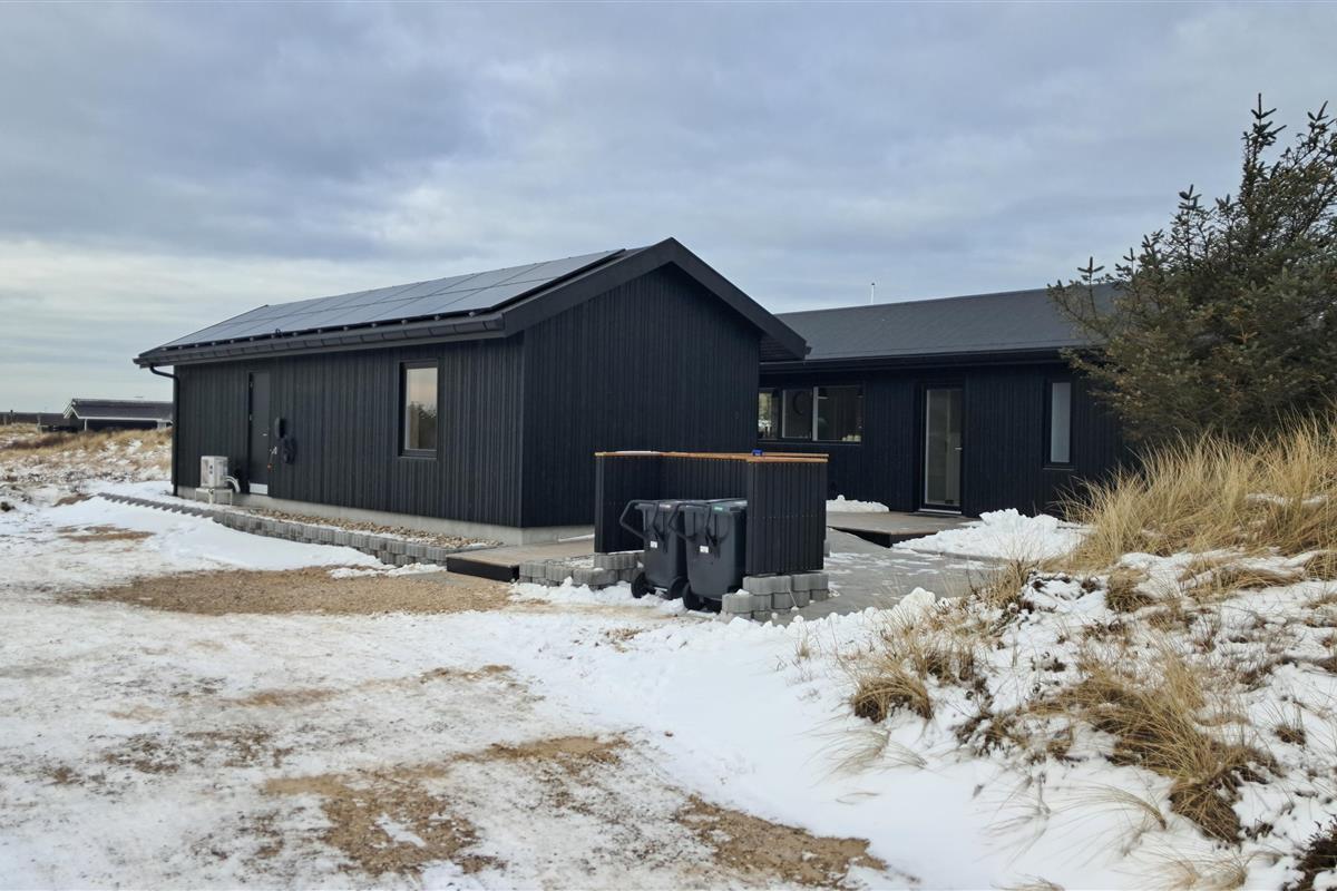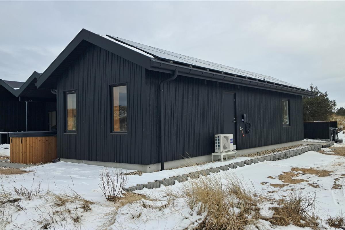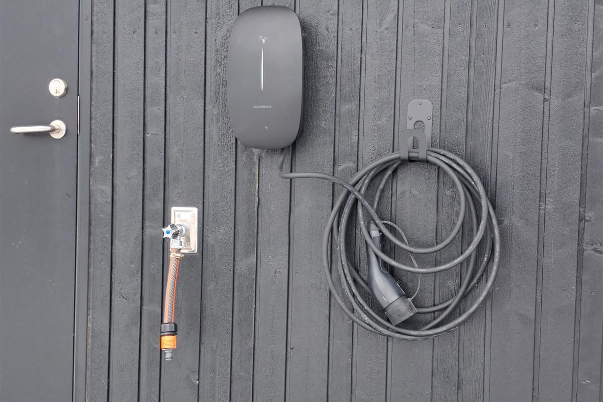 The property also includes a lockable shed and an electric car charging station. The surrounding area features magnificent nature with great opportunities for walks, cycling, and beach activities for the whole family.