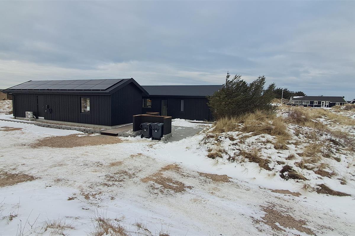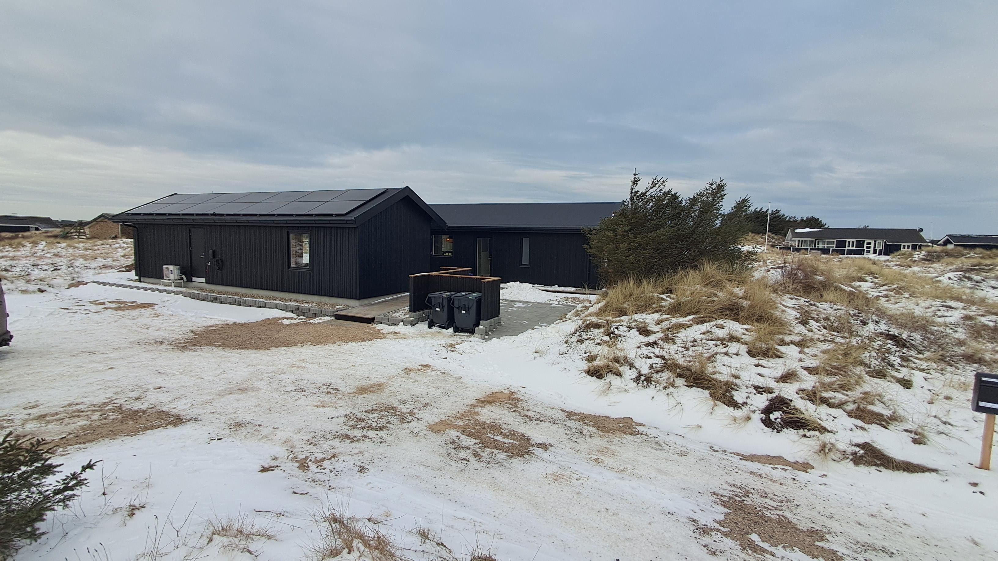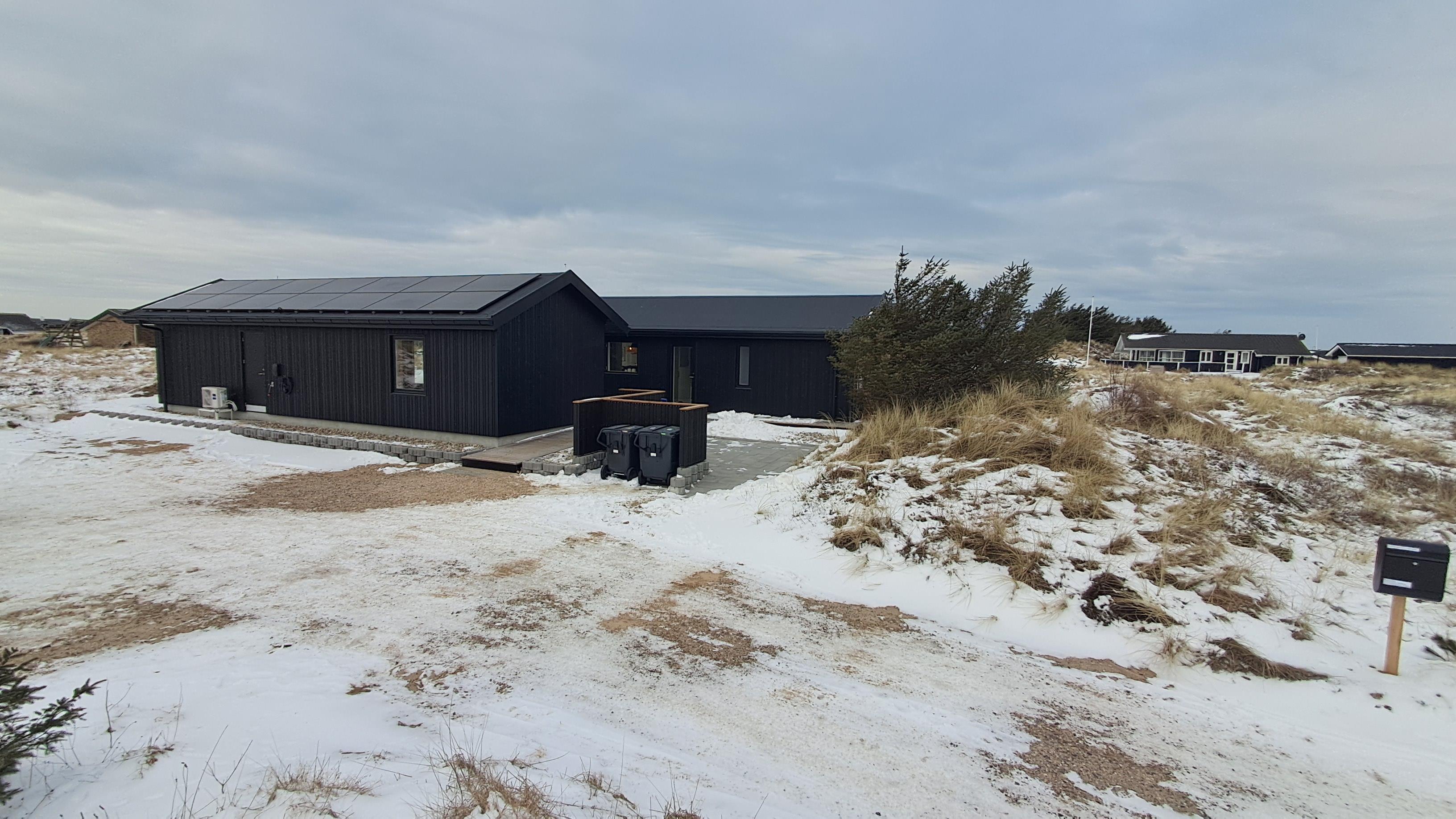The property also includes a lockable shed and an electric car charging station. The surrounding area features magnificent nature with great opportunities for walks, cycling, and beach activities for the whole family.
