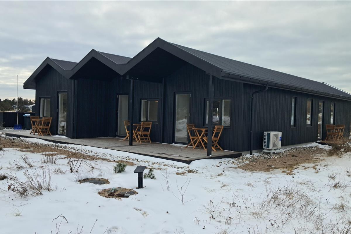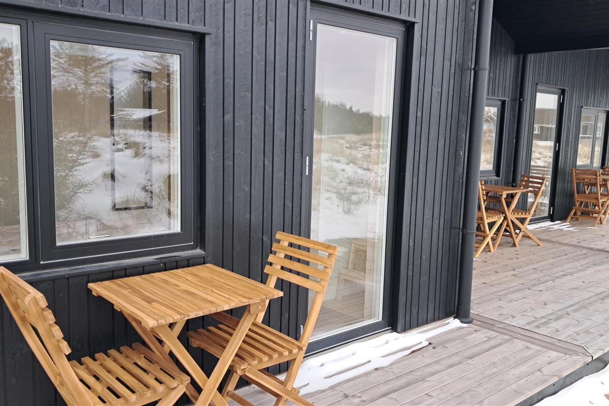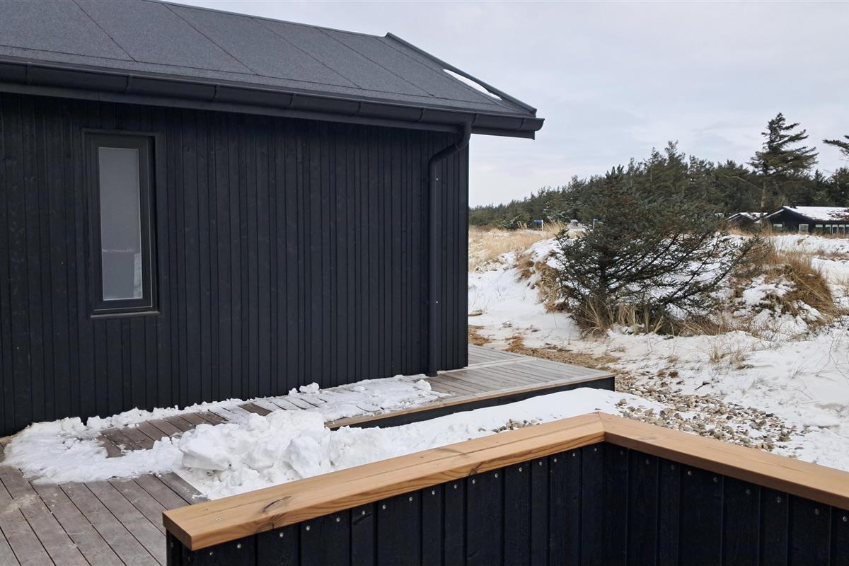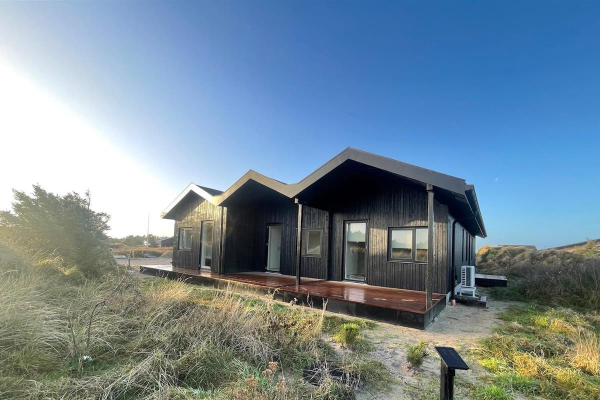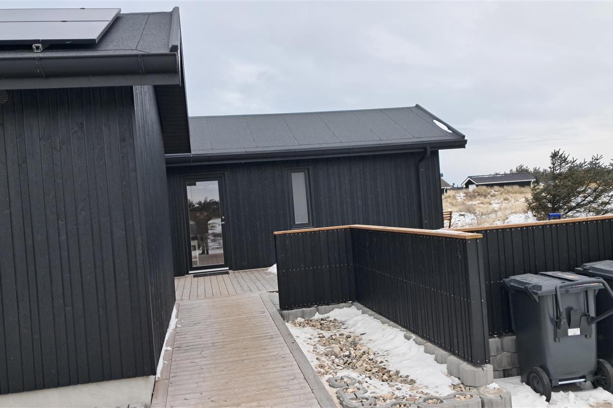 The summer house is surrounded by large terraces where you can enjoy both sun and shelter depending on the time of day. There is plenty of space for outdoor living, barbecues, and relaxation in the fresh air. The short distance of only 375 meters to the beach makes it easy to visit the water several times a day.