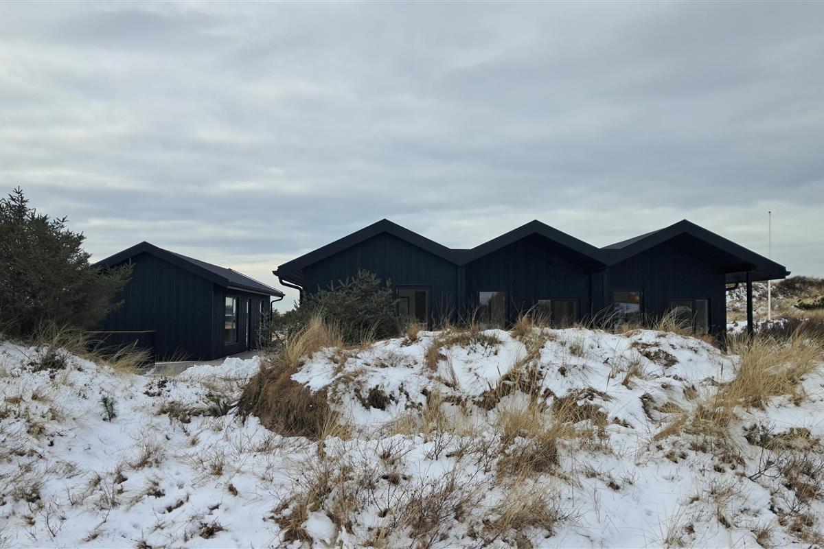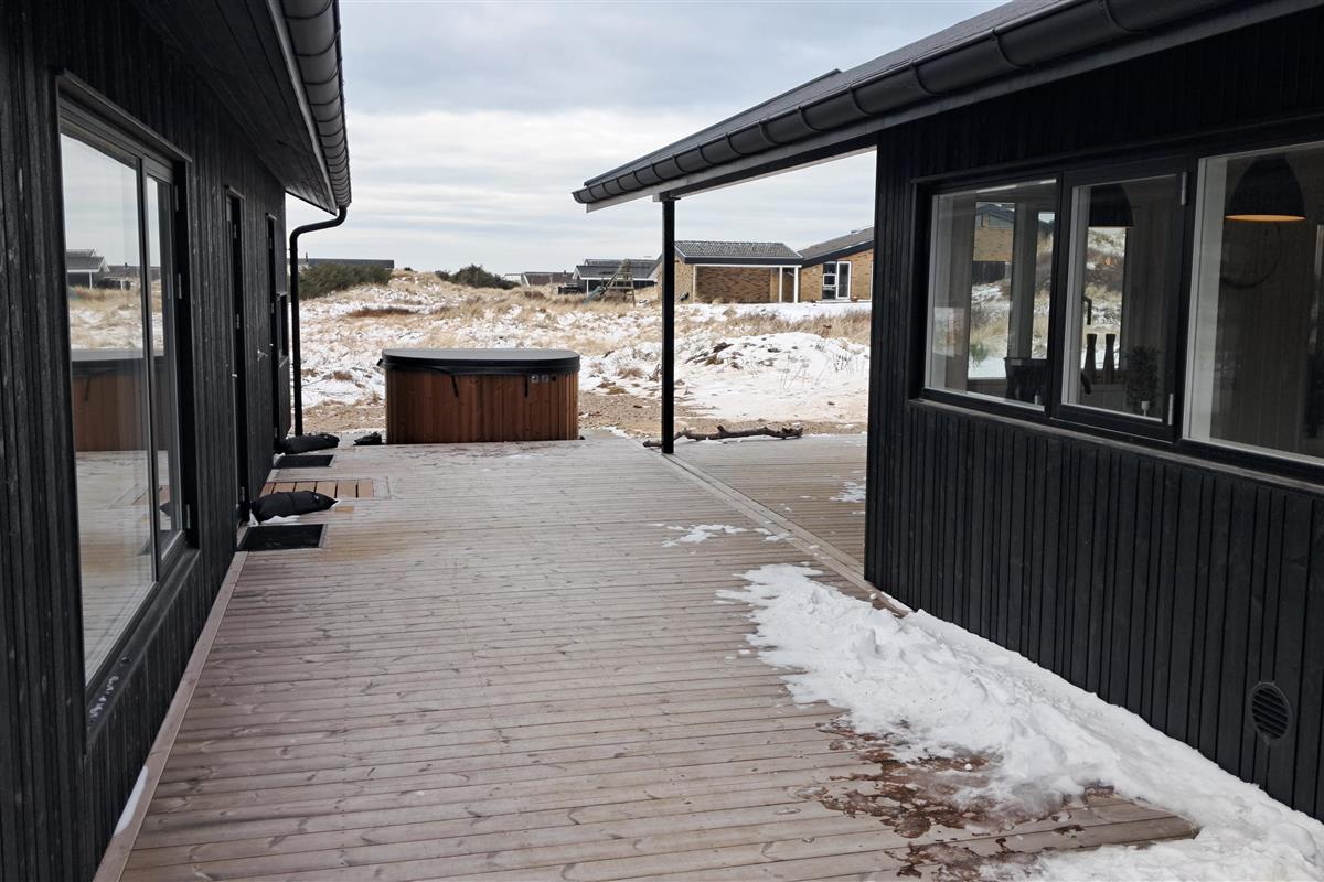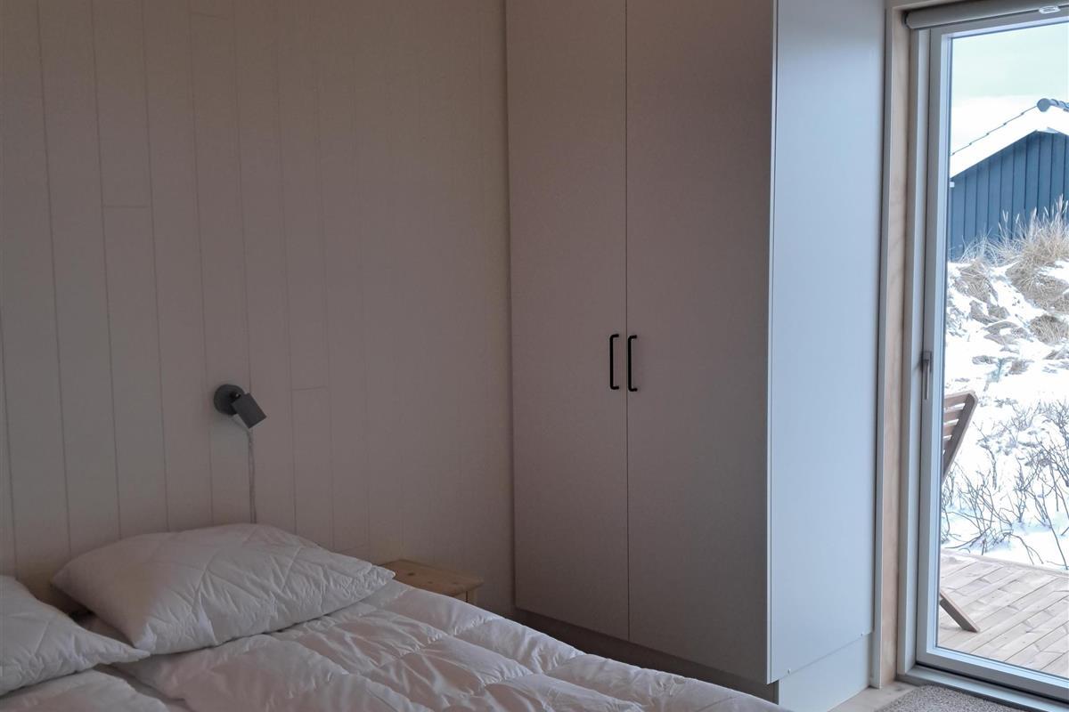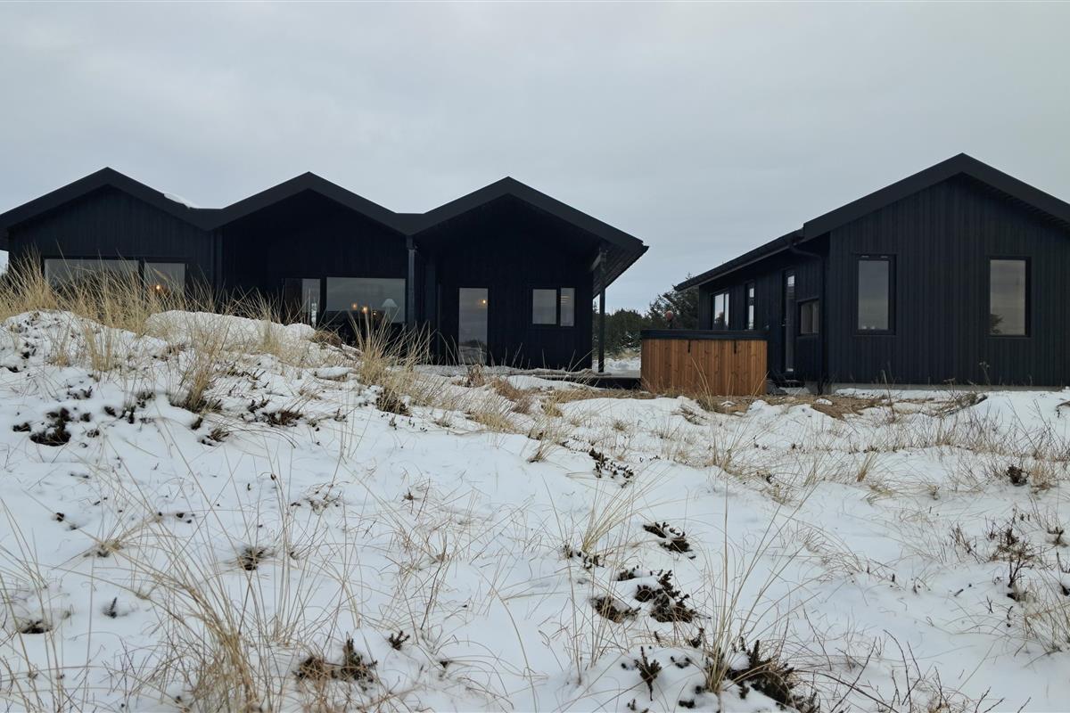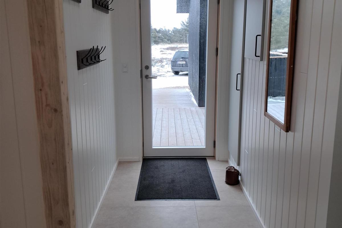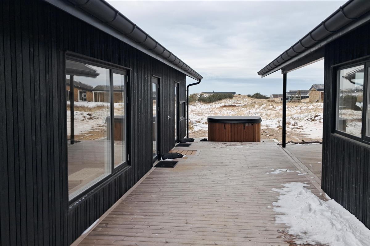 The summer house is surrounded by large terraces where you can enjoy both sun and shelter depending on the time of day. There is plenty of space for outdoor living, barbecues, and relaxation in the fresh air. The short distance of only 375 meters to the beach makes it easy to visit the water several times a day.