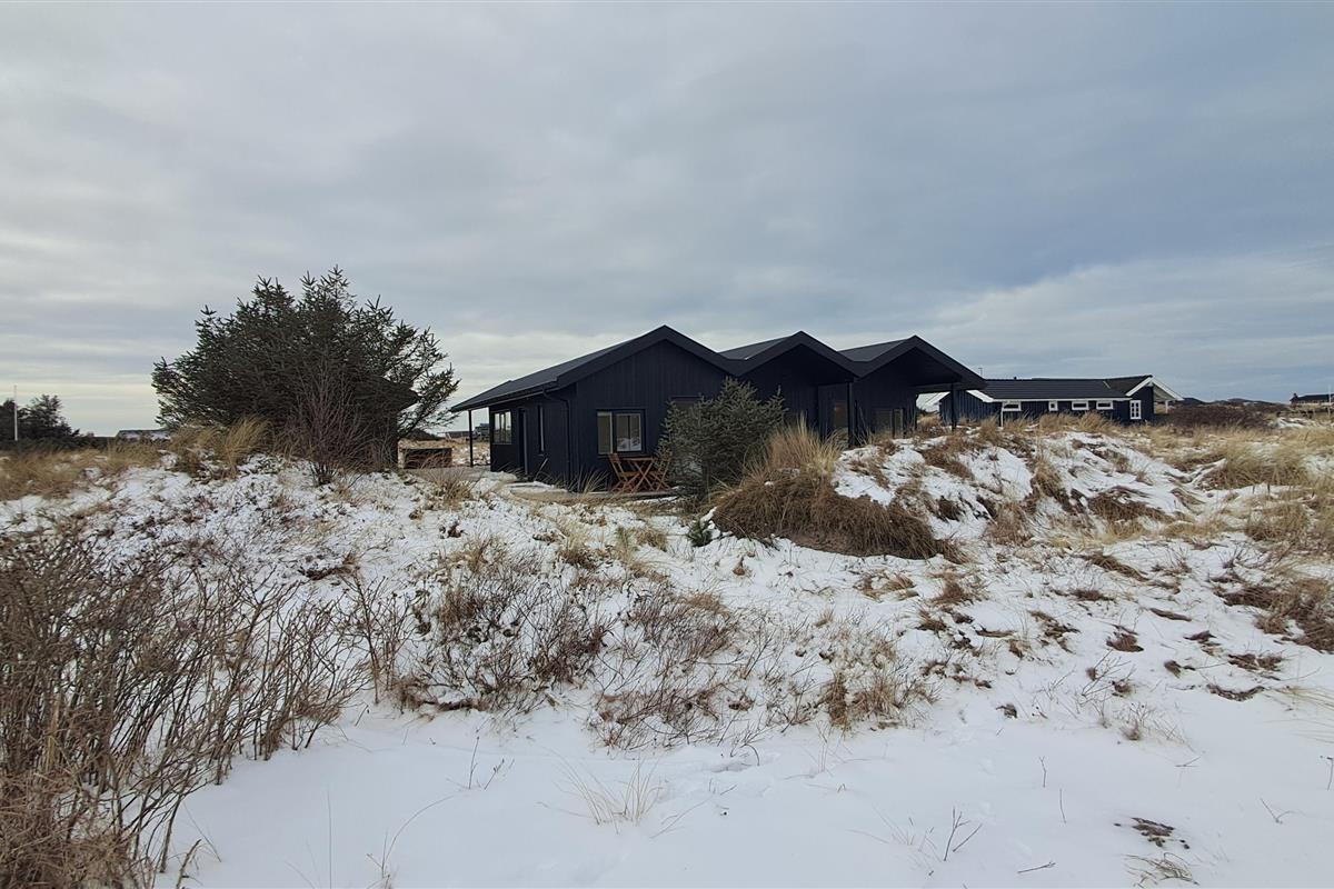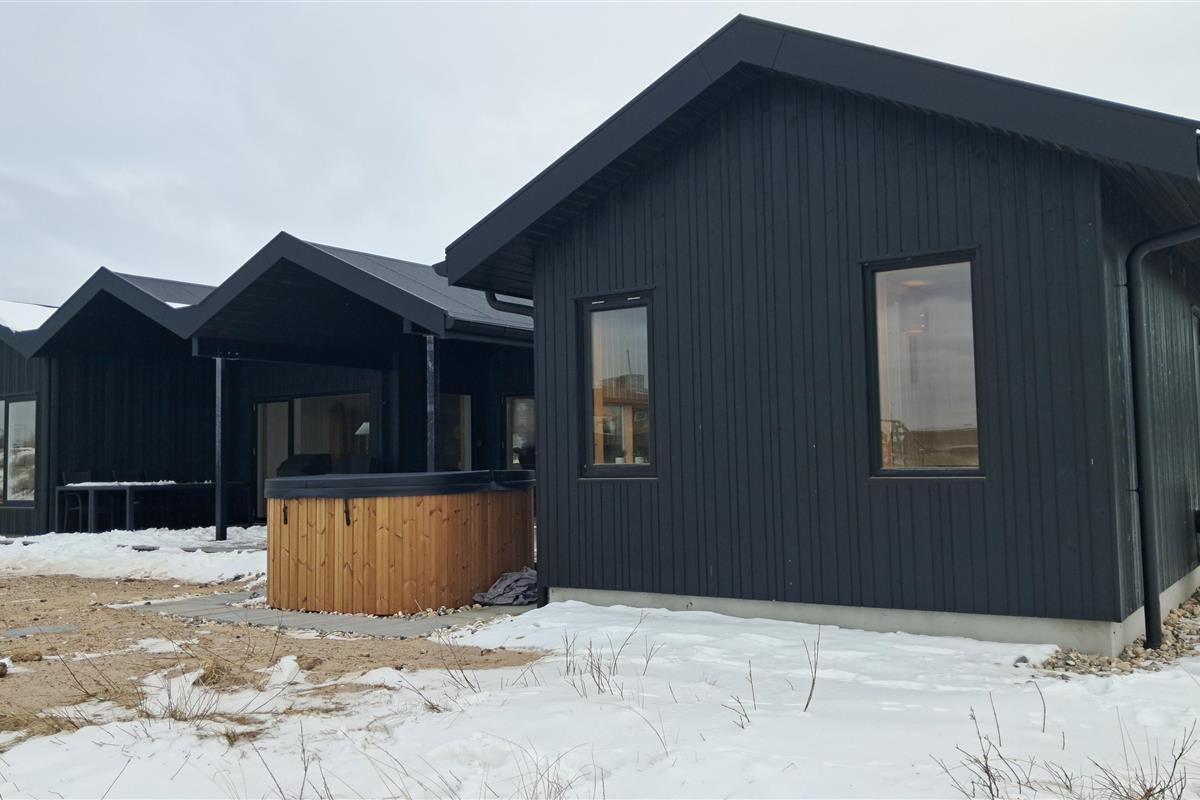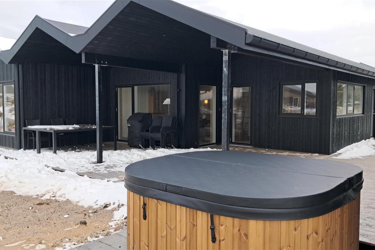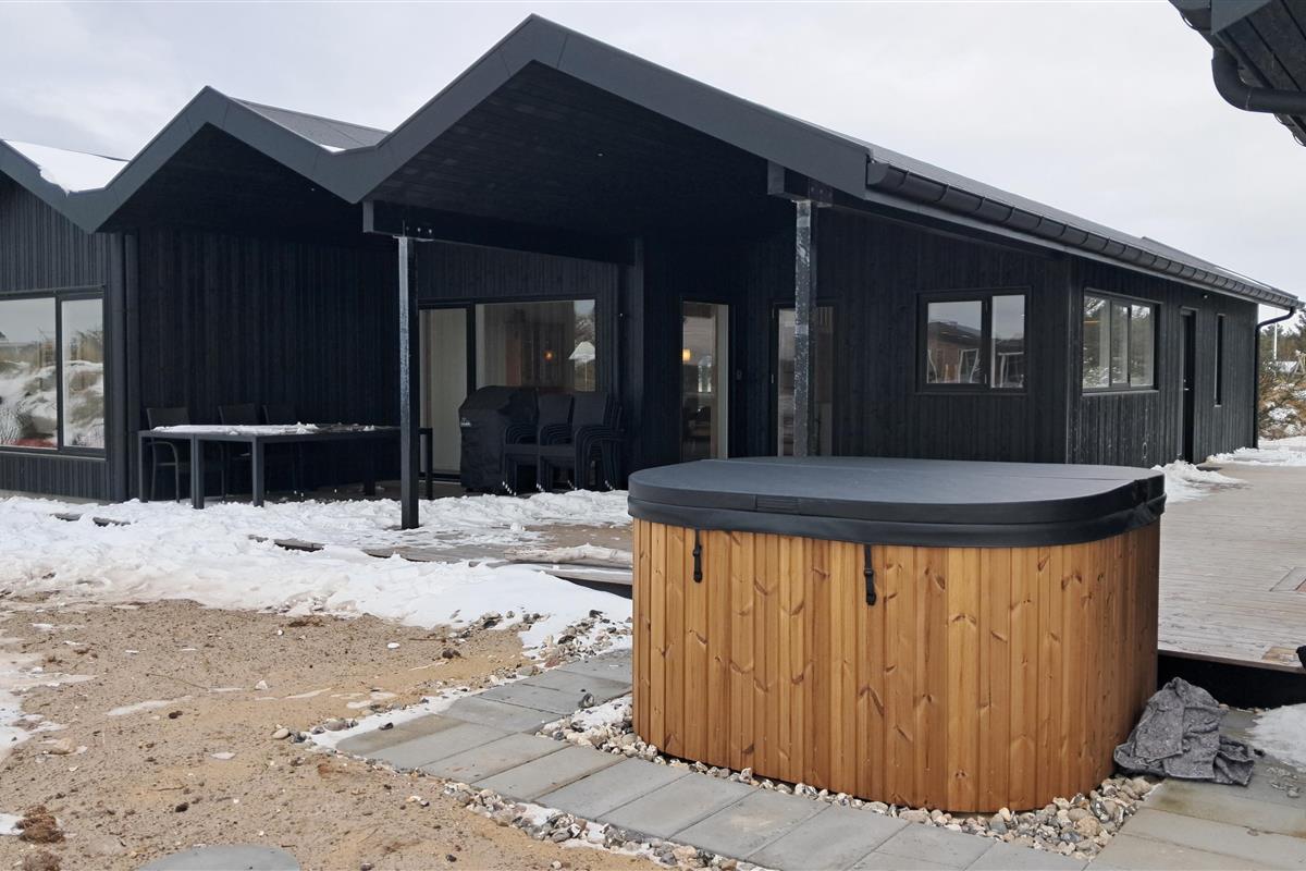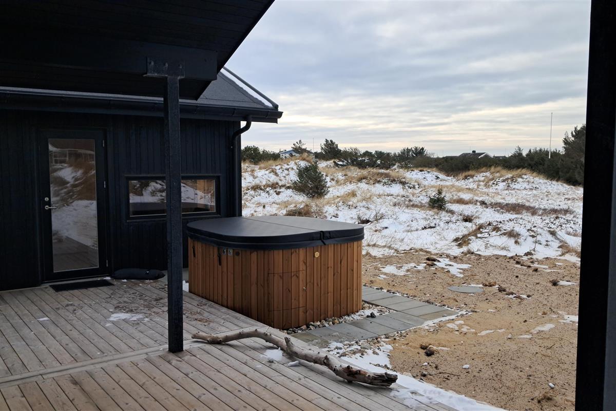 The summer house is surrounded by large terraces where you can enjoy both sun and shelter depending on the time of day. There is plenty of space for outdoor living, barbecues, and relaxation in the fresh air. The short distance of only 375 meters to the beach makes it easy to visit the water several times a day.