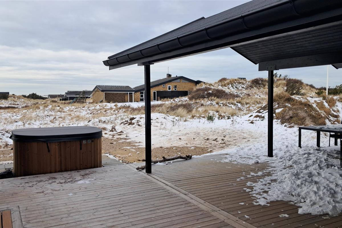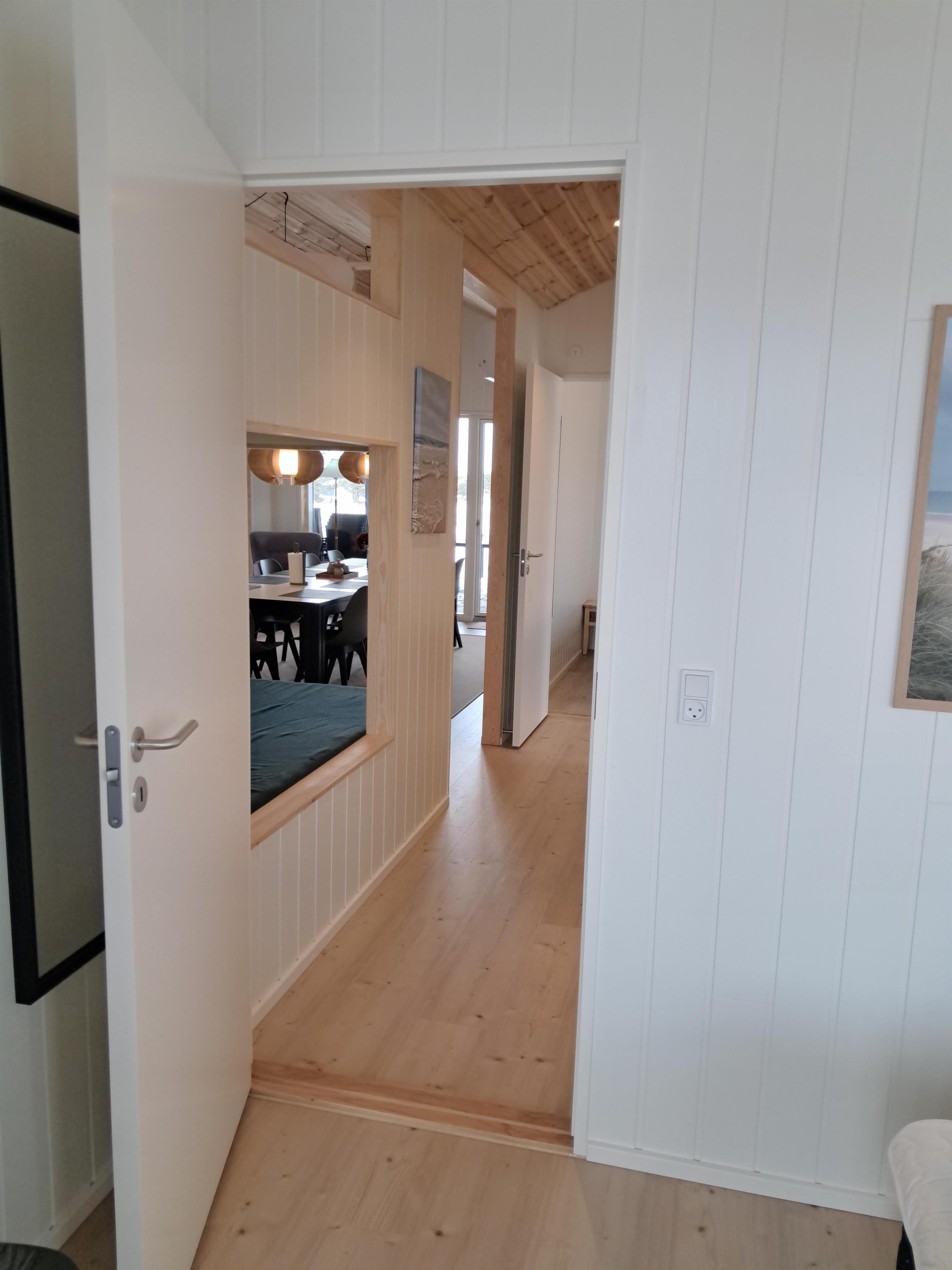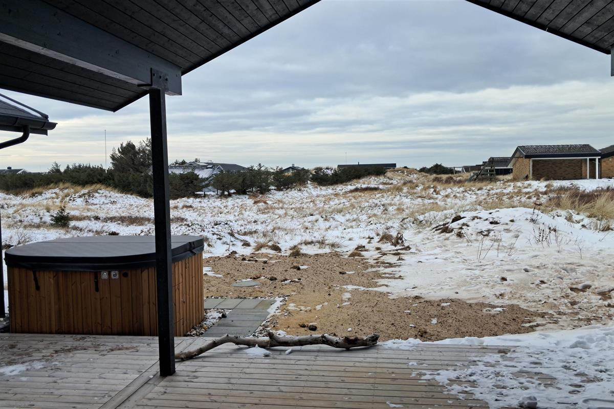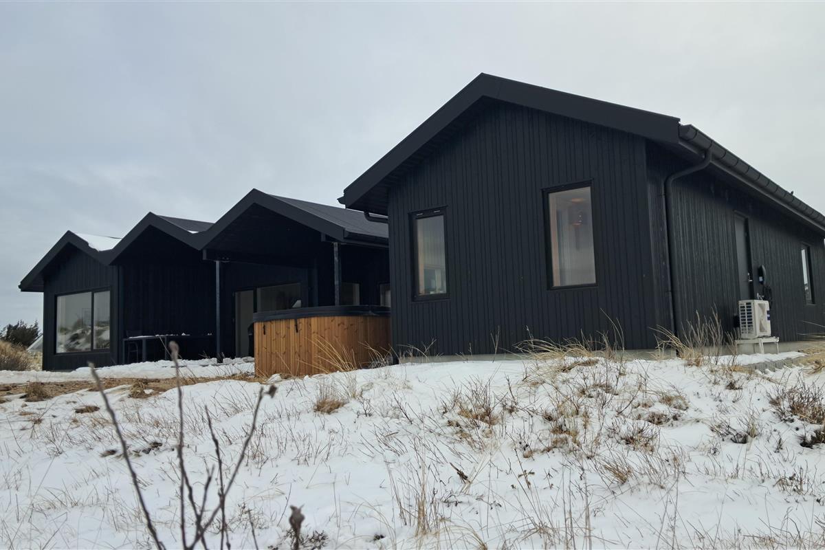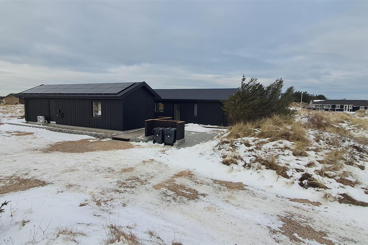 The summer house is surrounded by large terraces where you can enjoy both sun and shelter depending on the time of day. There is plenty of space for outdoor living, barbecues, and relaxation in the fresh air. The short distance of only 375 meters to the beach makes it easy to visit the water several times a day.