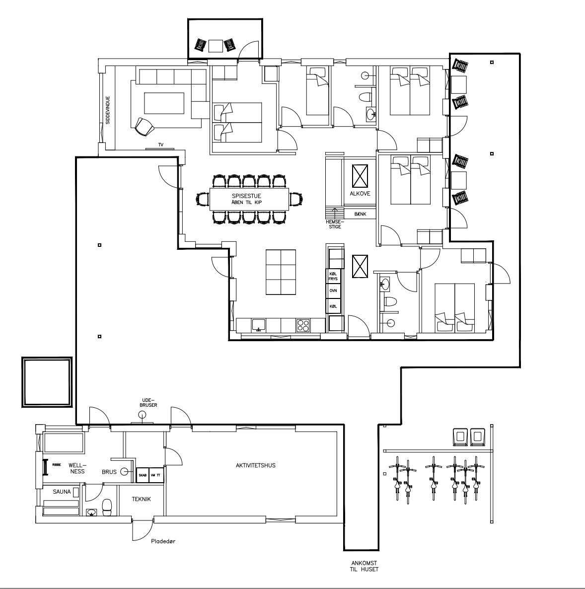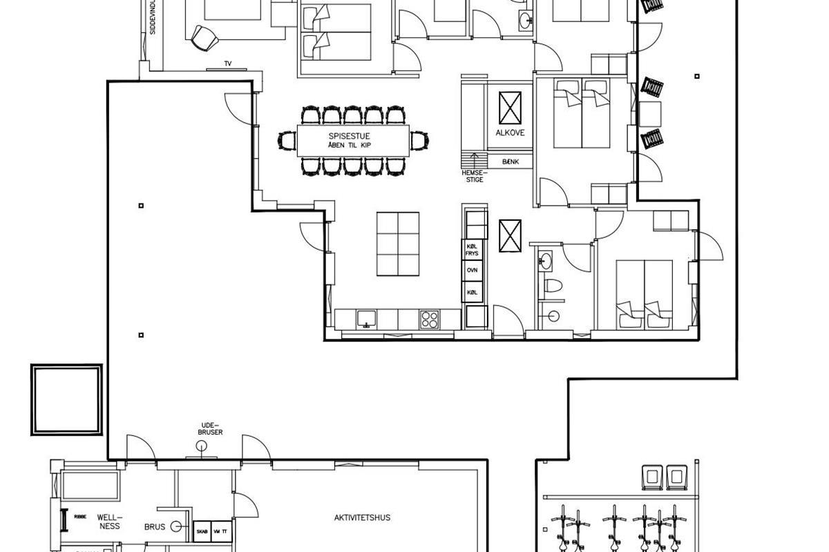 Sleeping Arrangements: 3 bedrooms with 2 single beds (90x200 cm), 1 bunk room with 2 mattresses (90x200 cm), 1 bedroom with a double bed (160x200 cm), Loft with 2 mattresses (80x200 cm) & Alcove with mattress (160x200 cm).