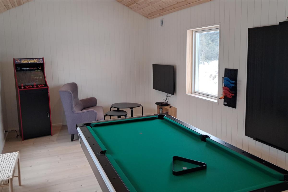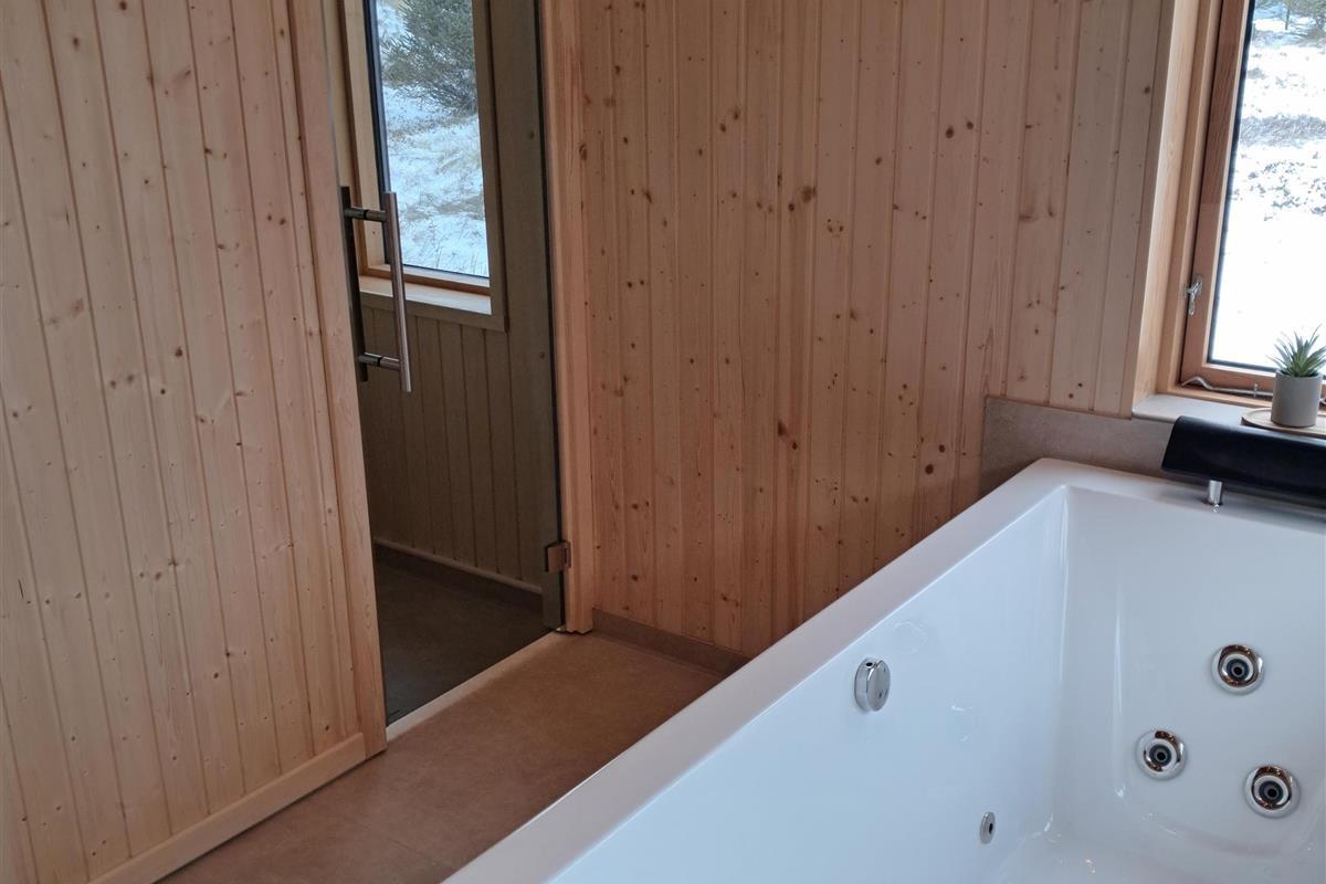 There are three bathrooms, making it ideal for larger families or multi-generational holidays. After a day at the beach, you can relax in the sauna or enjoy the indoor or outdoor spa. For active days and cozy evenings, the annex features a pool table, table tennis, and an arcade machine, providing entertainment regardless of the weather.