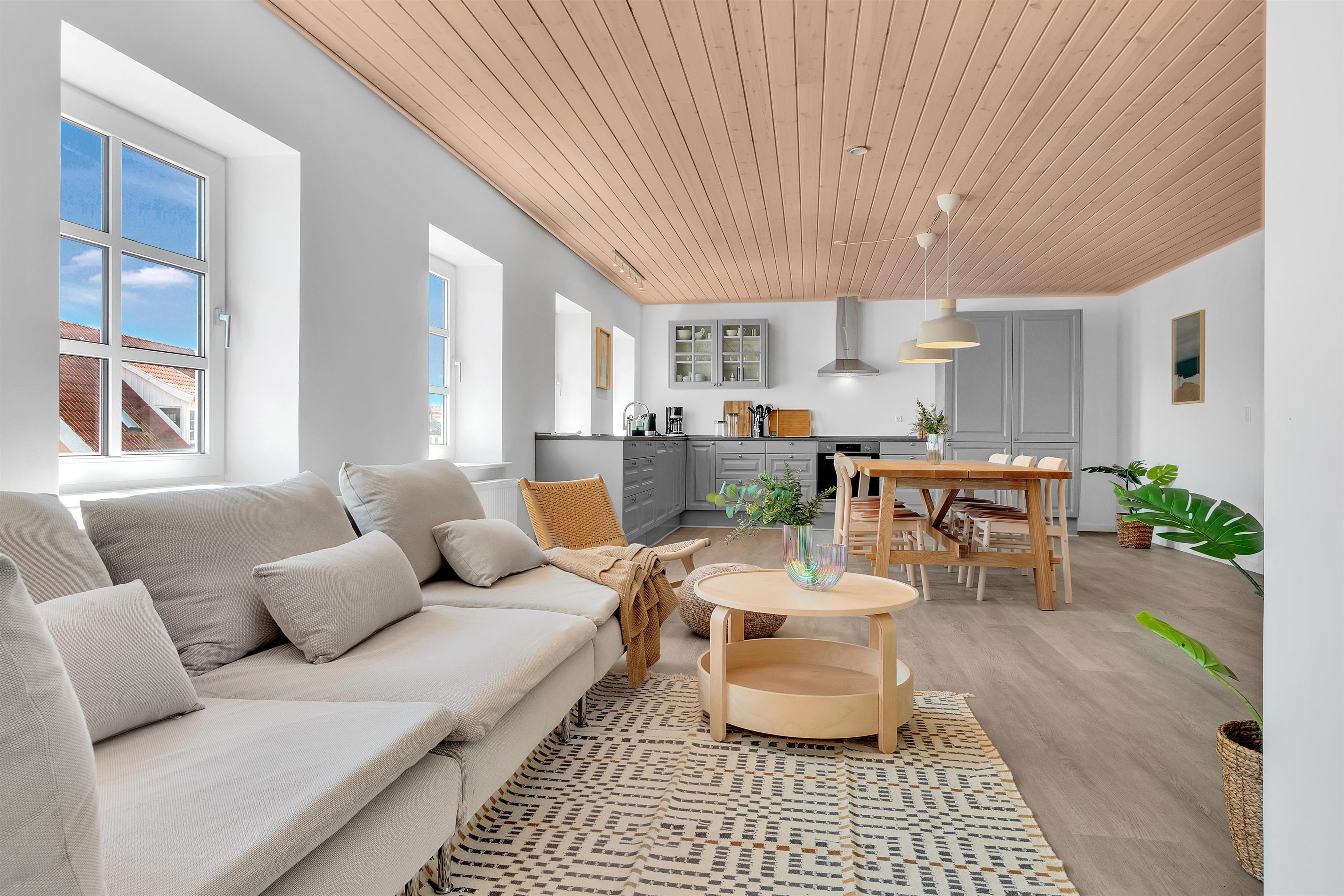 The apartment is excellently furnished and close to the beach and town. It's situated on a side street that leads directly to Løkken Square, where you'll find plenty of shopping, restaurants, and entertainment options. Crossing the square takes you down to the beach, where you'll find a jetty, a surfer environment, the iconic bathing houses, Løkken's famous wide, white sandy beach, and the impressive dunes where you can go for hours-long walks.