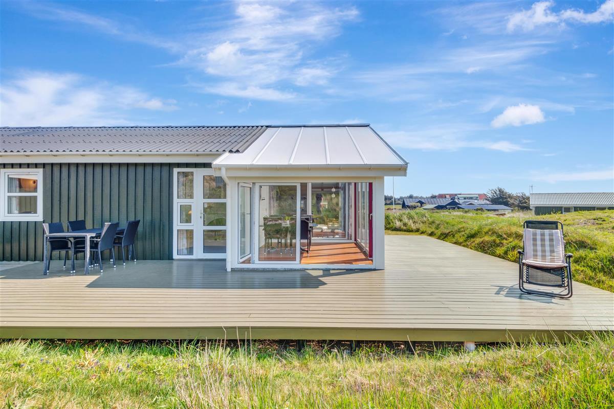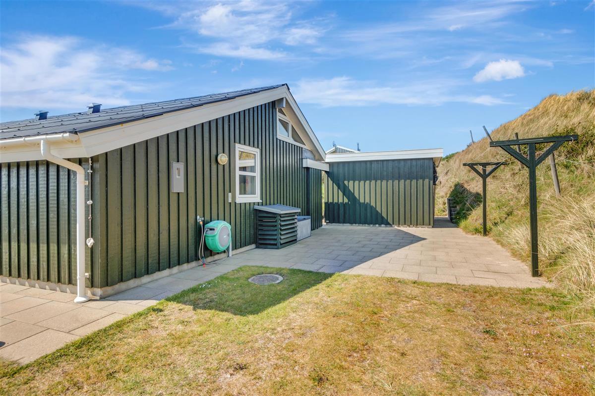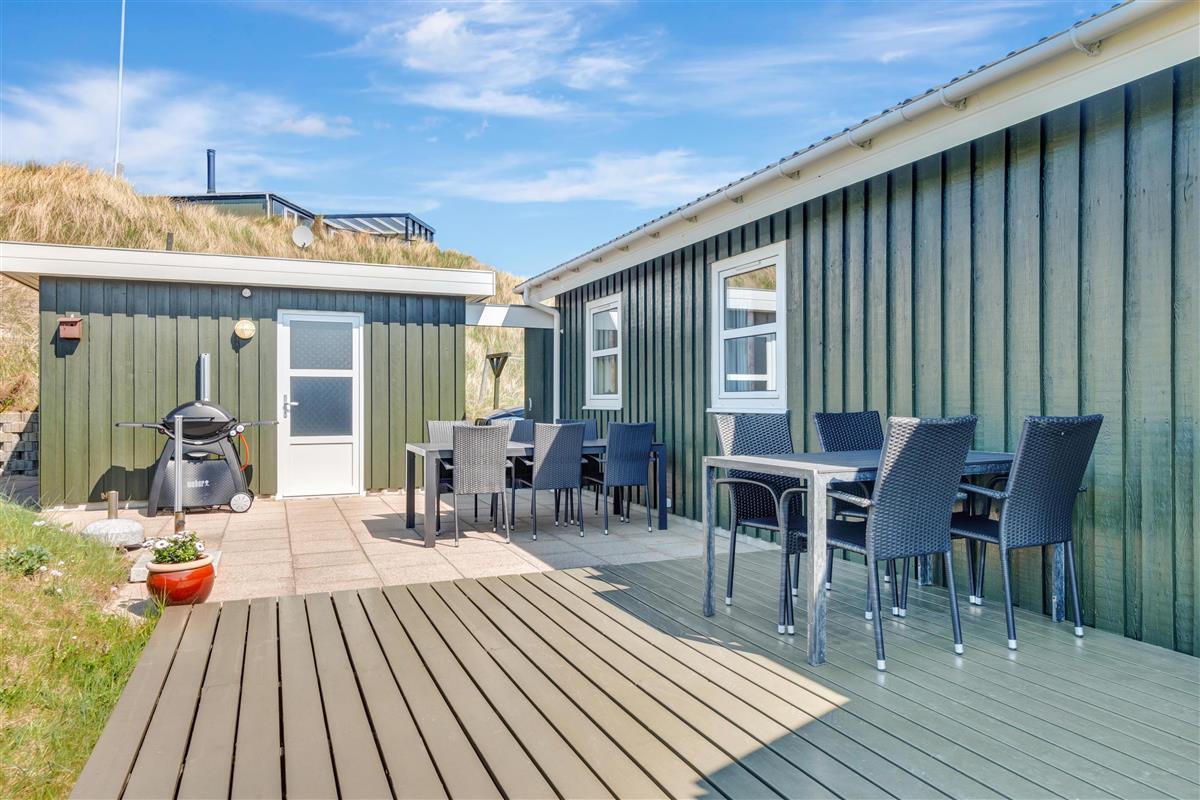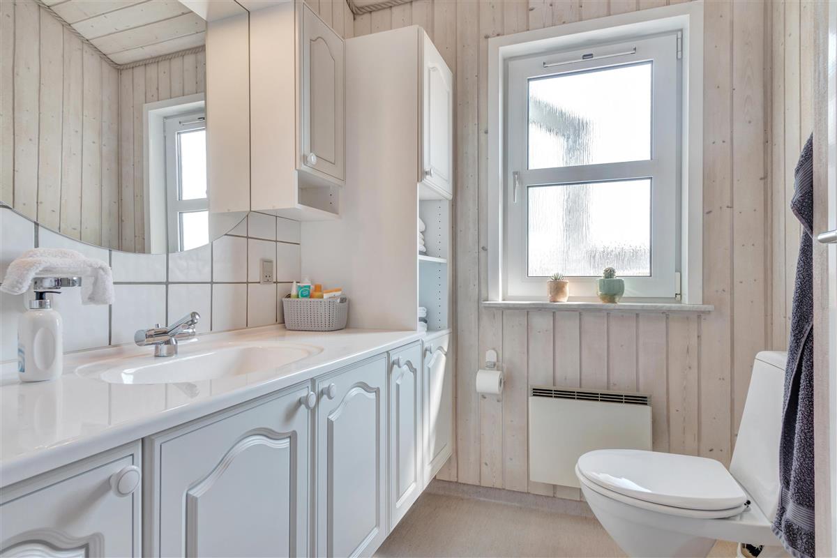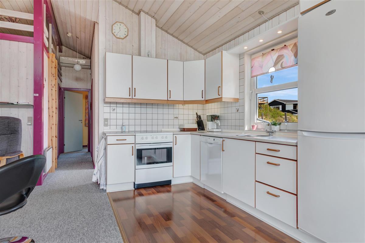 From the kitchen and living room, there is access to a lovely large terrace and lawn where you can fully enjoy the Danish summer weather. The house's location close to Løkken town center and the North Sea means that you are conveniently close to everything while still being at a good distance from traffic and noise from the city's life. Garden furniture and a grill are naturally available. And Løkken town itself is the place where there is plenty of space, whether you are looking for activities, wellness, indulgence, or peace and contemplation.