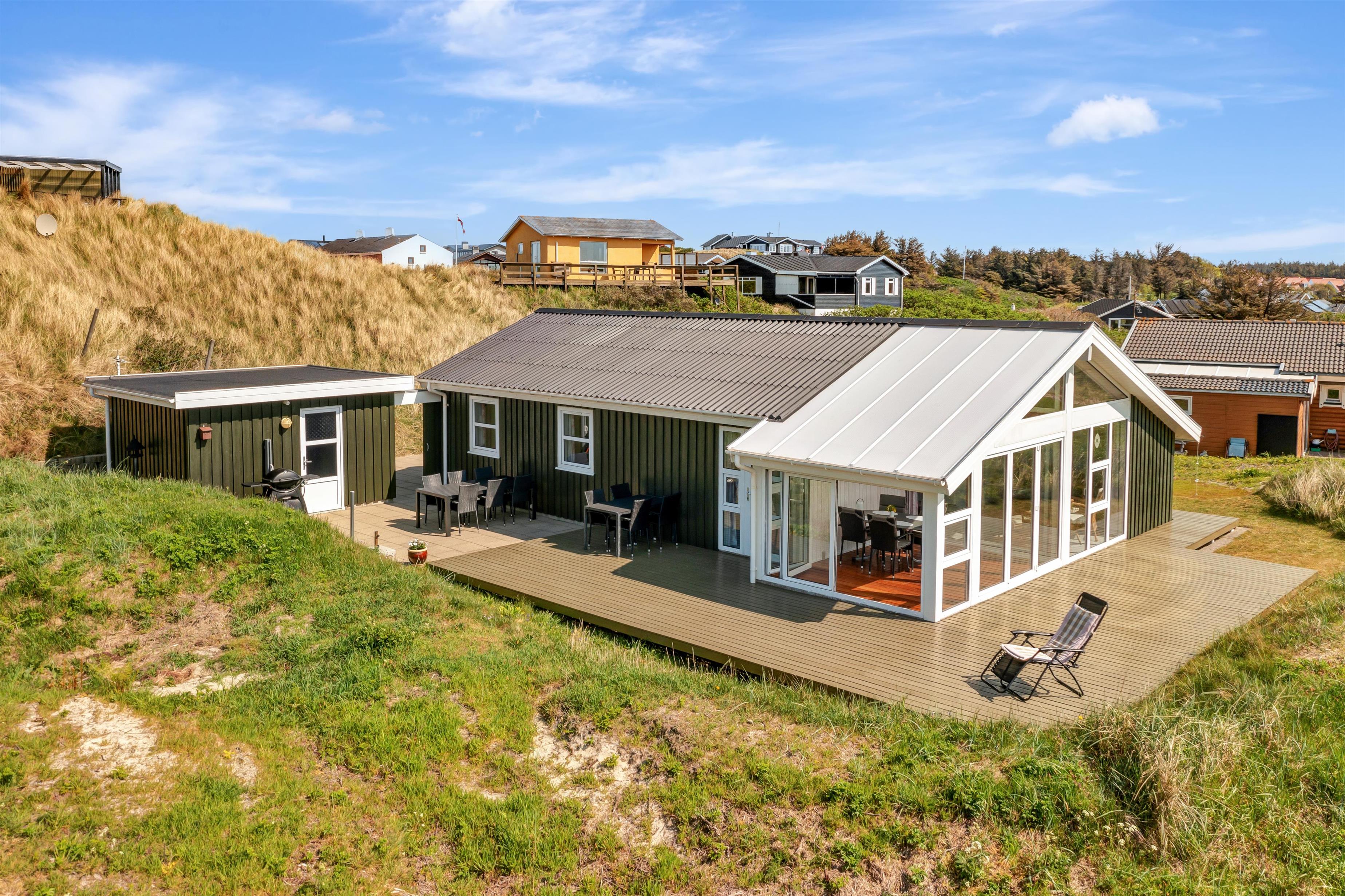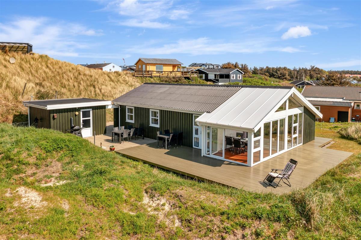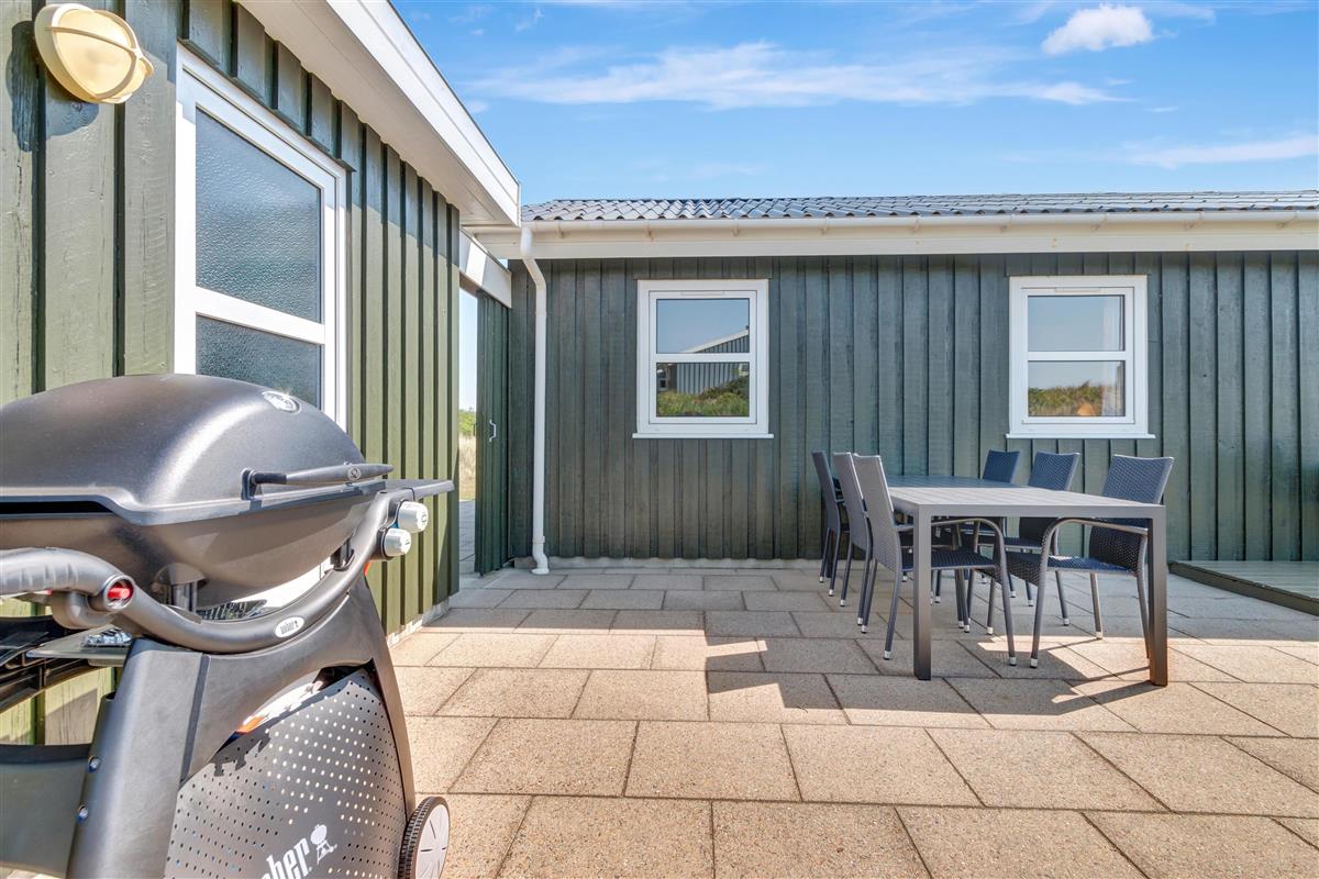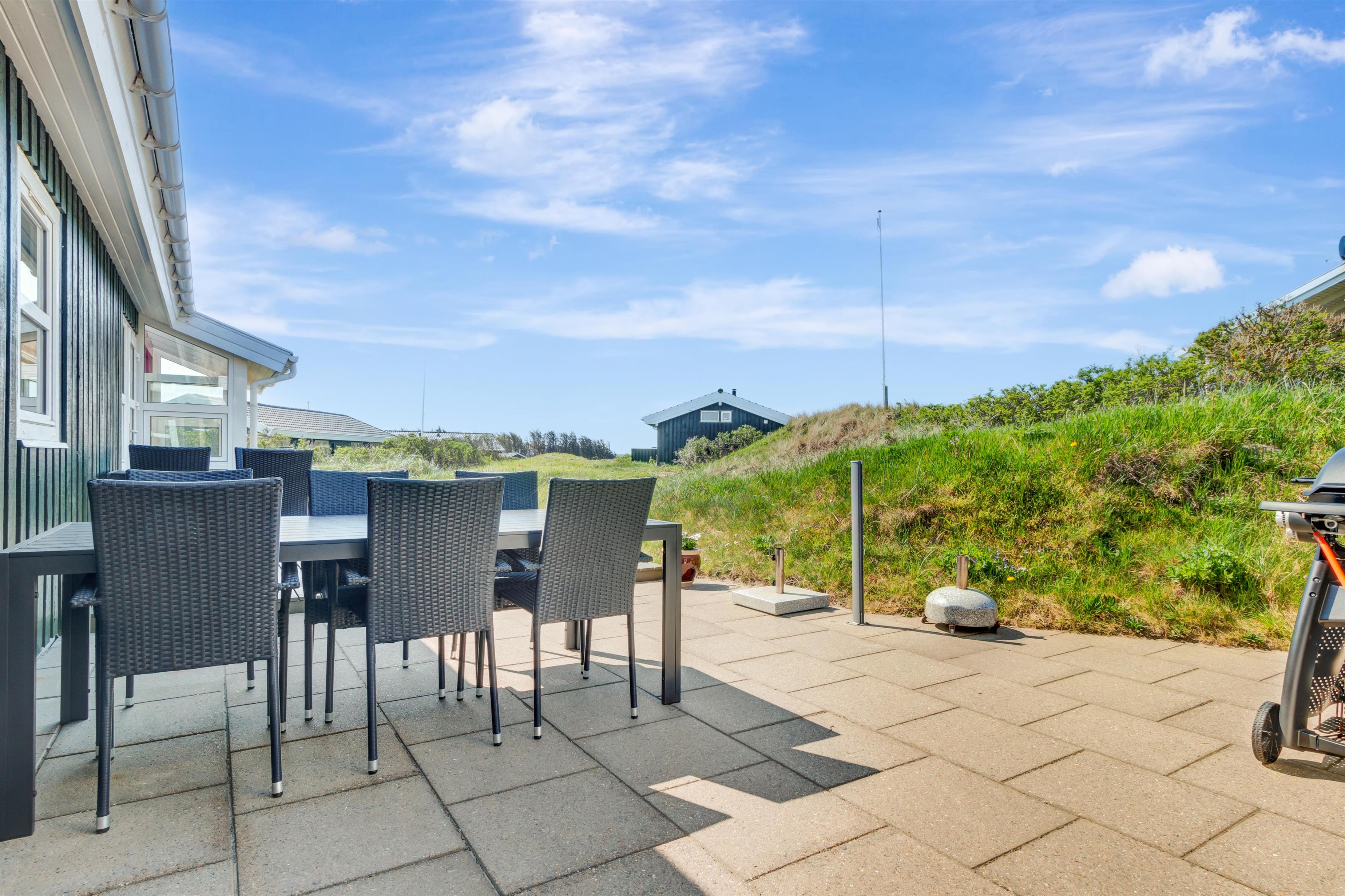 From the kitchen and living room, there is access to a lovely large terrace and lawn where you can fully enjoy the Danish summer weather. The house's location close to Løkken town center and the North Sea means that you are conveniently close to everything while still being at a good distance from traffic and noise from the city's life. Garden furniture and a grill are naturally available. And Løkken town itself is the place where there is plenty of space, whether you are looking for activities, wellness, indulgence, or peace and contemplation.