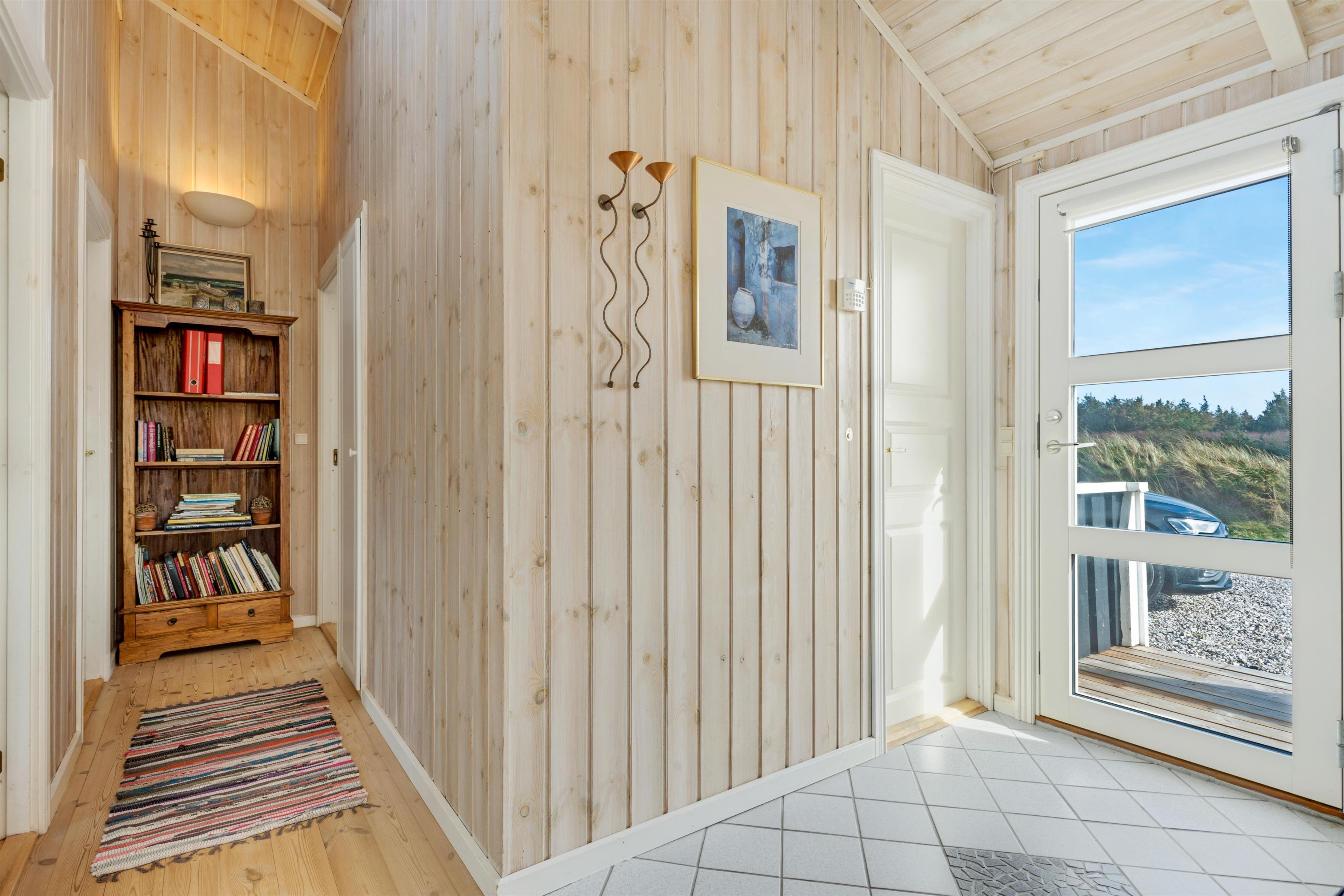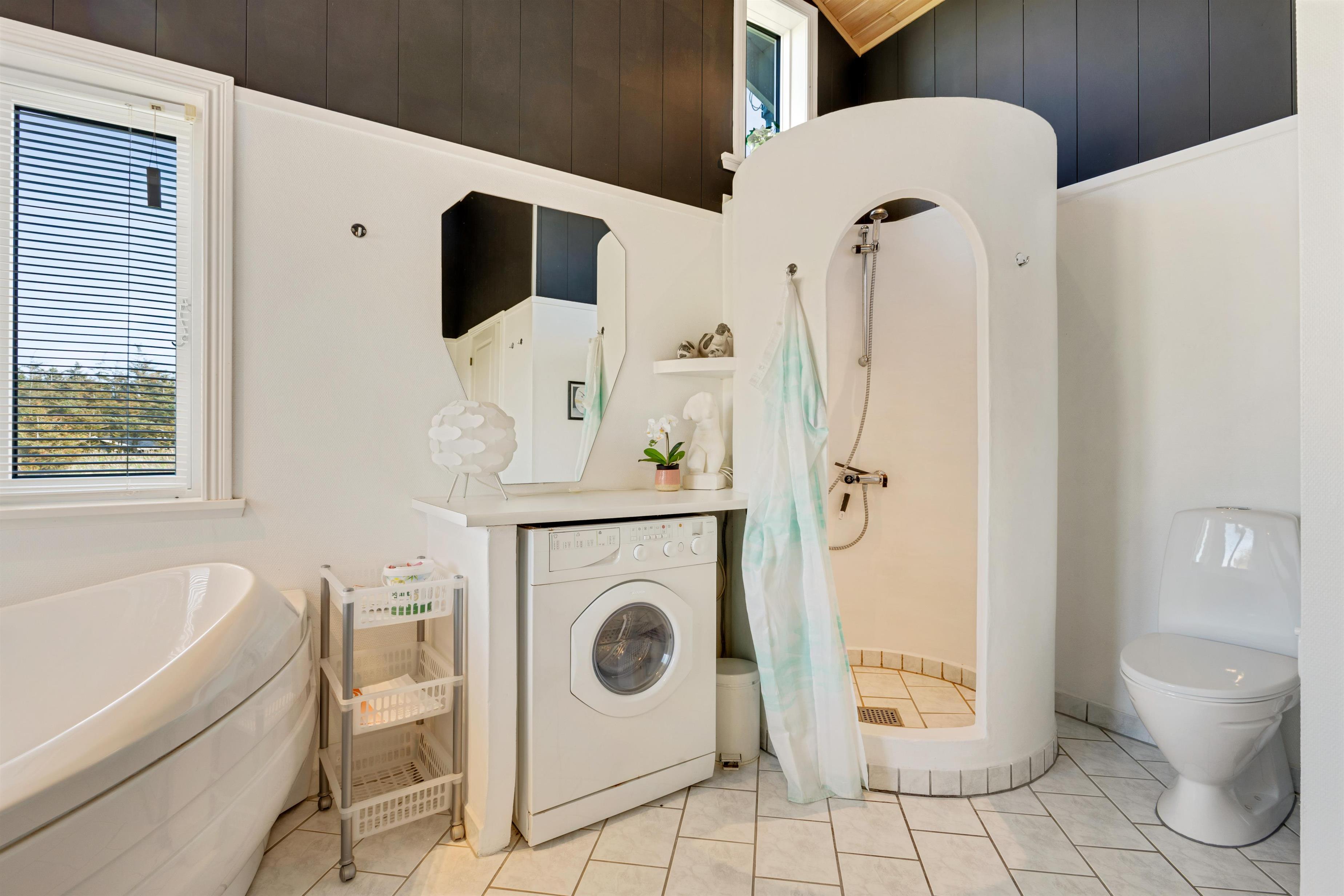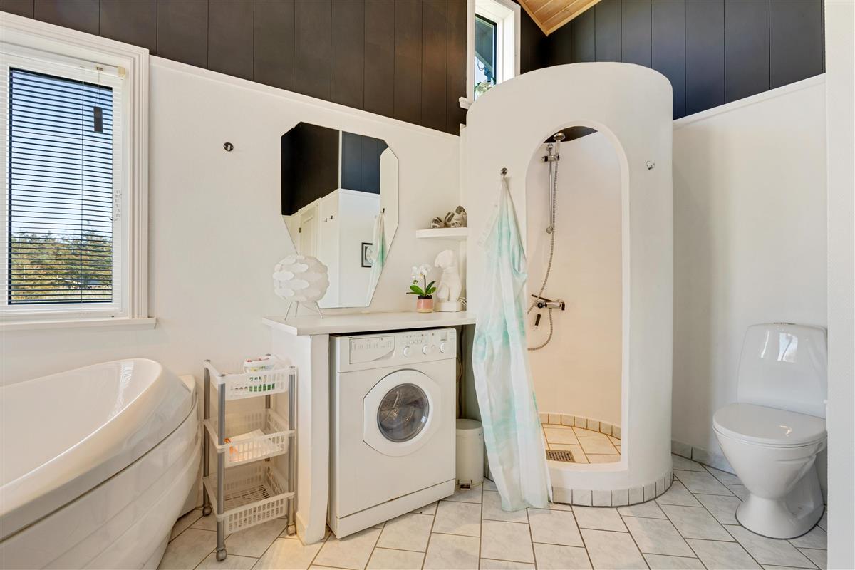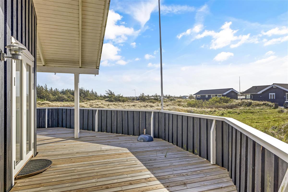 The holiday home is located on a 2674 square meter large and hilly natural plot, which exudes a Danish holiday home area. The surroundings are quiet and recreational, and the beach is only 375 meters away. When the Grønhøj Strand Købmand is open, you have shopping opportunities within about 350 meters. The holiday home offers lovely terraces, one of which is covered, and you can relax in the comfortable furniture for hours.