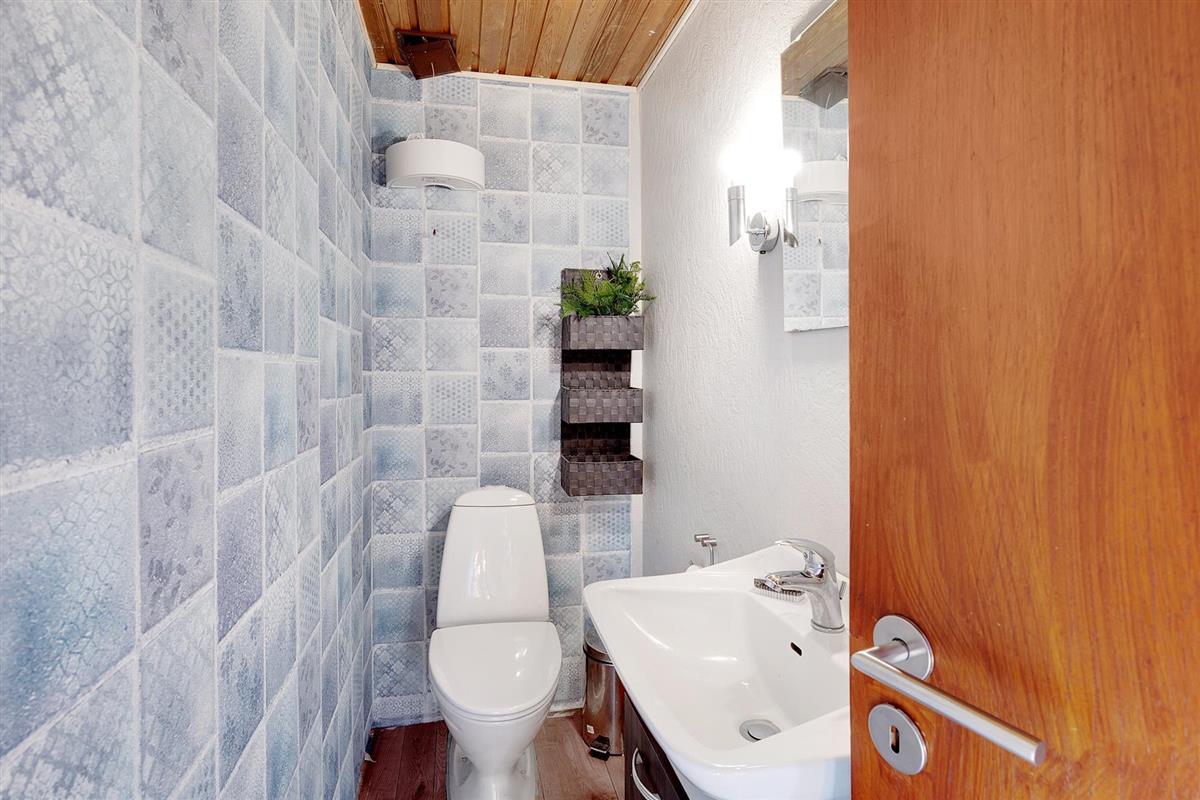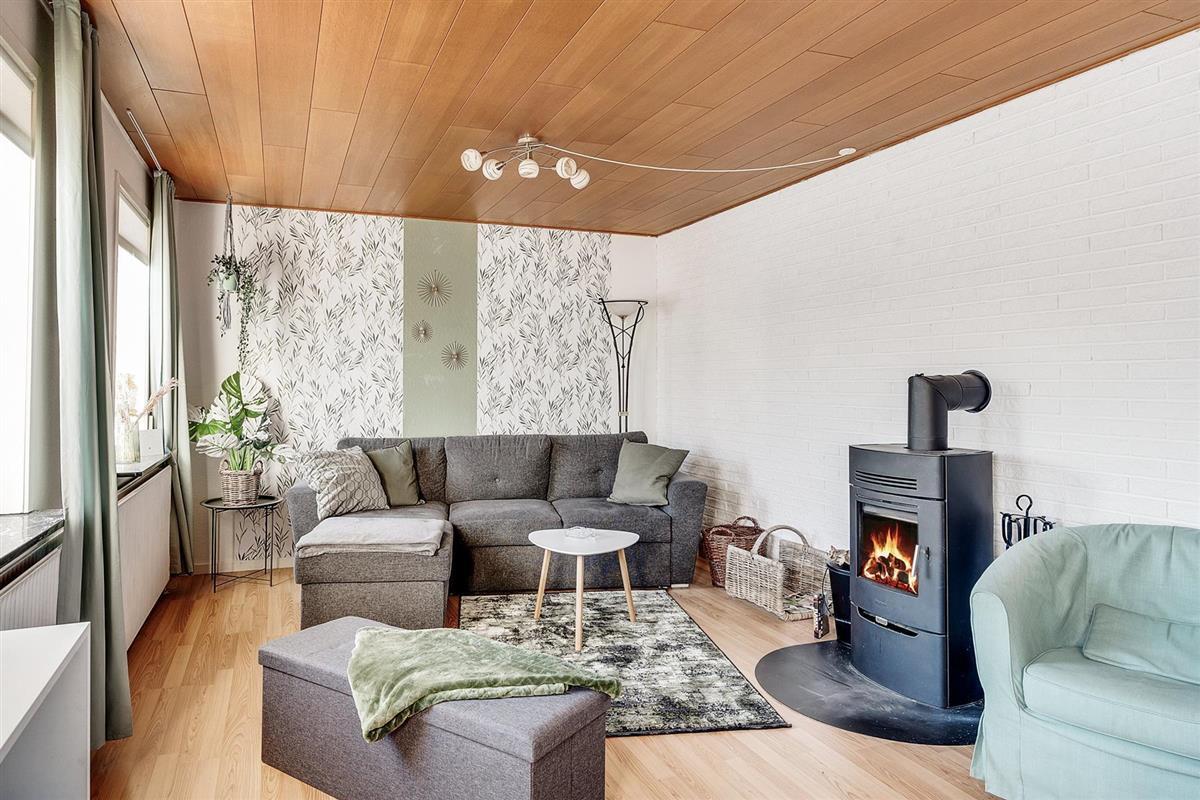 The holiday home is 168 square meters spread over two floors, and it is allowed to bring 2 pets. There are 3 bedrooms, 2 toilets, and 1 bathroom with a bathtub. The kitchen is open, and the style of the apartment is cozy with a wood-burning stove by the sofa area and a lovely, large terrace.