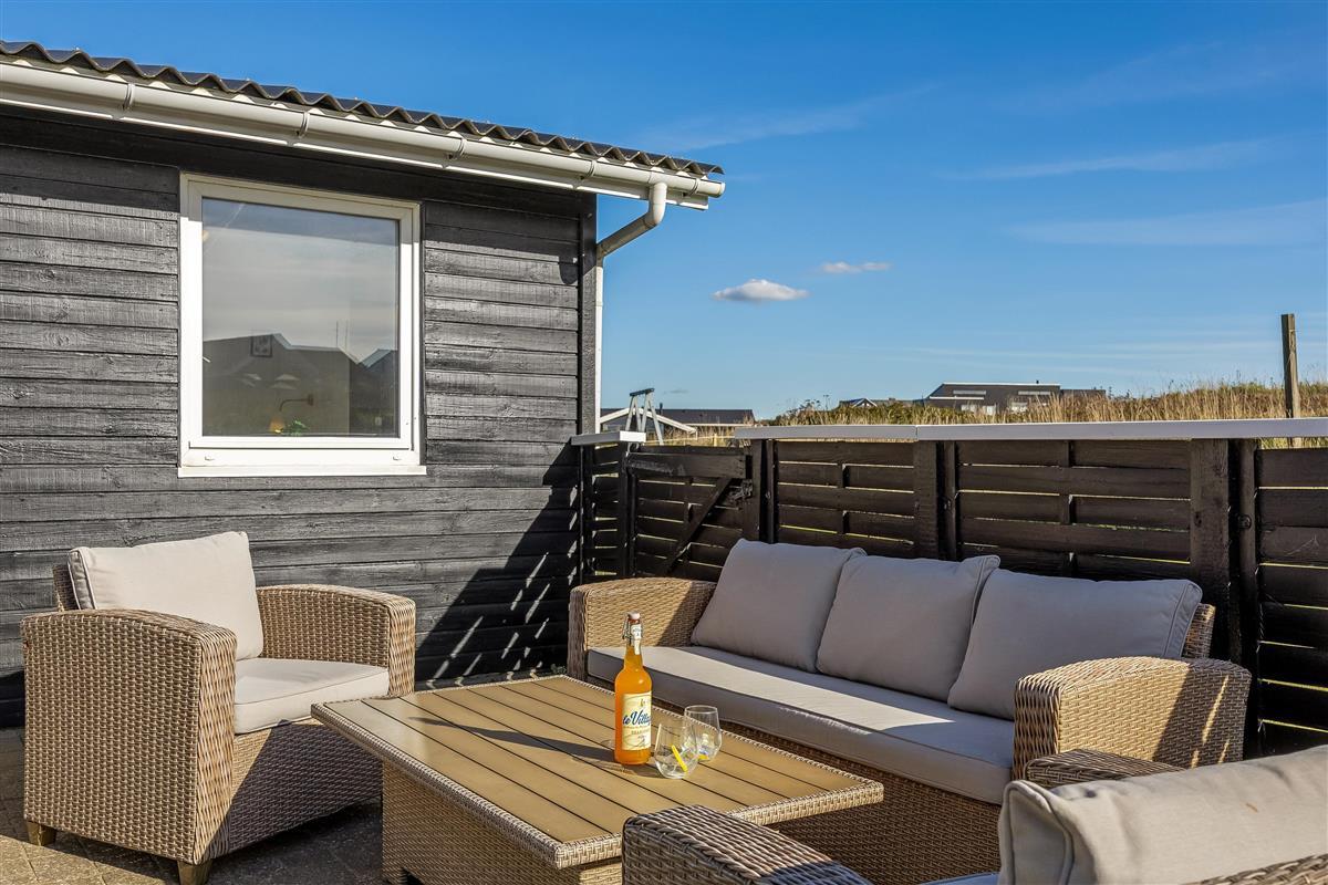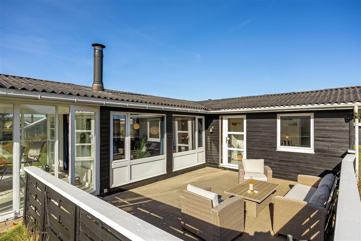The sheltered terrace invites you to enjoy peace, sun and quality time. Eat outside, read in a deck chair, or just listen to nature. The surrounding plot gives you privacy – all close to the coast and a short drive from both Løkken and Nr. Lyngby.