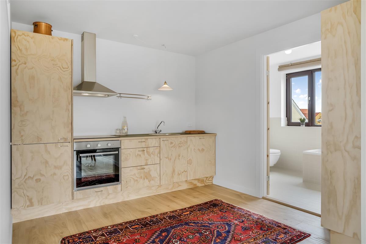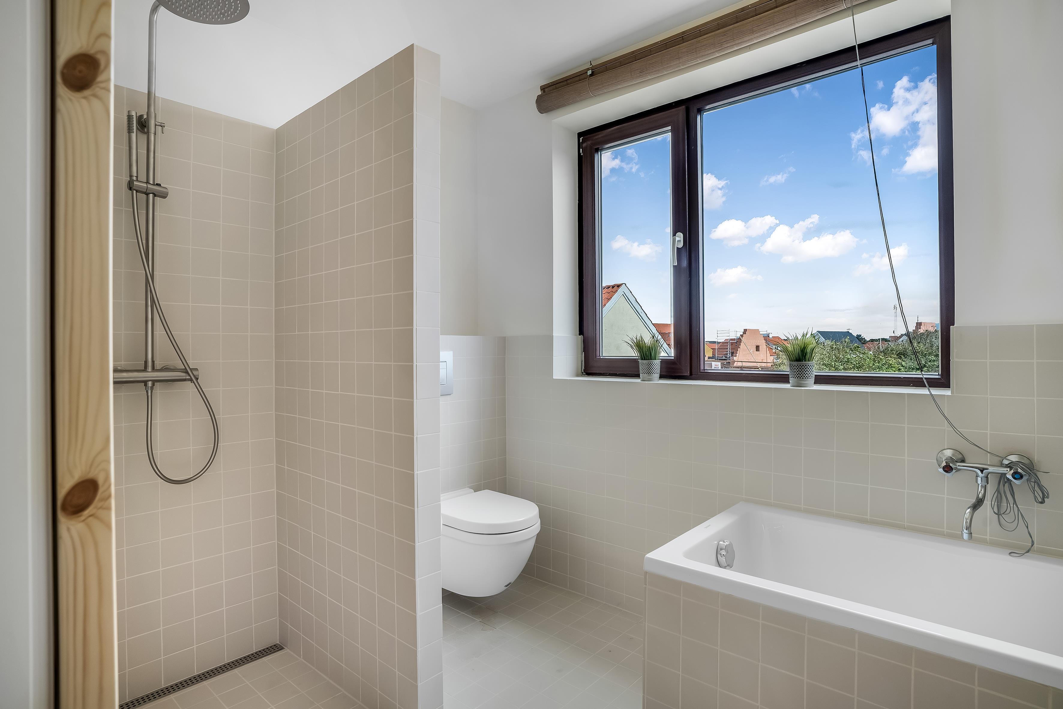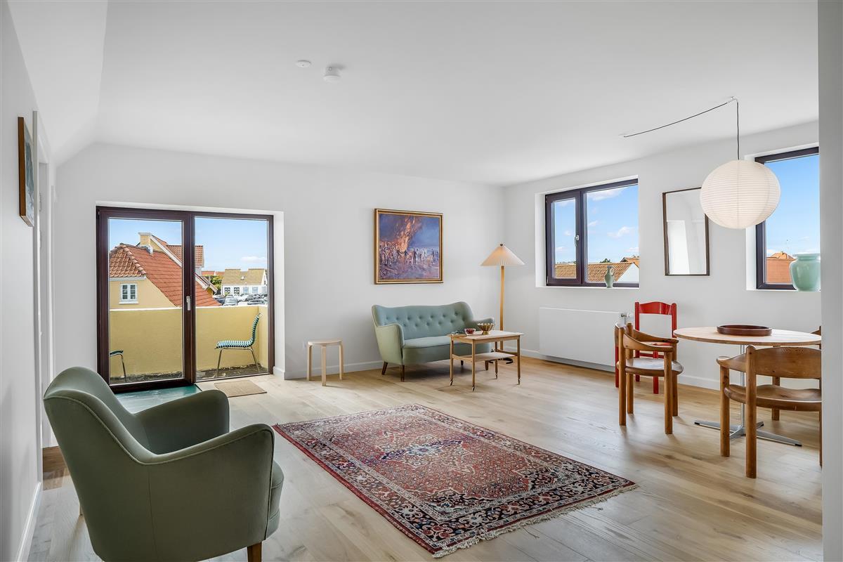 Lejligheden ligger placeret direkte i bymidten, men stadig med kort afstand til stranden – omkring 200 meter væk. Indgangen til lejligheden er via bagtrappen på bygningen "Løkkenshus", hvor skiltet "By Sommerhuse" viser vej. Der er tekøkken og et rummeligt badeværelse med både badekar og bruser – så du har det, du skal bruge, for at få en afslappende ferie i byen. På vejen mod stranden finder du både butikker, spisesteder og små caféer.