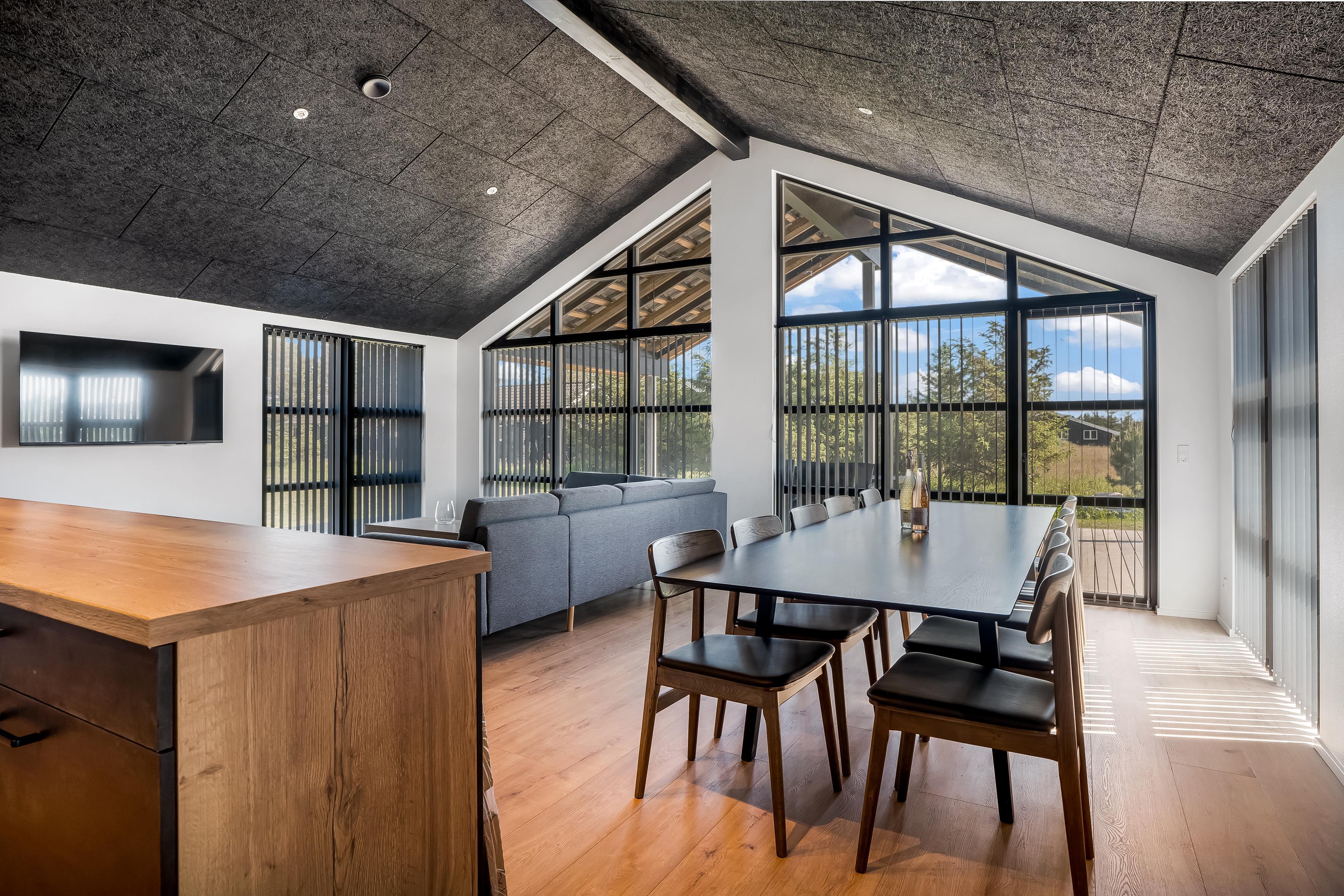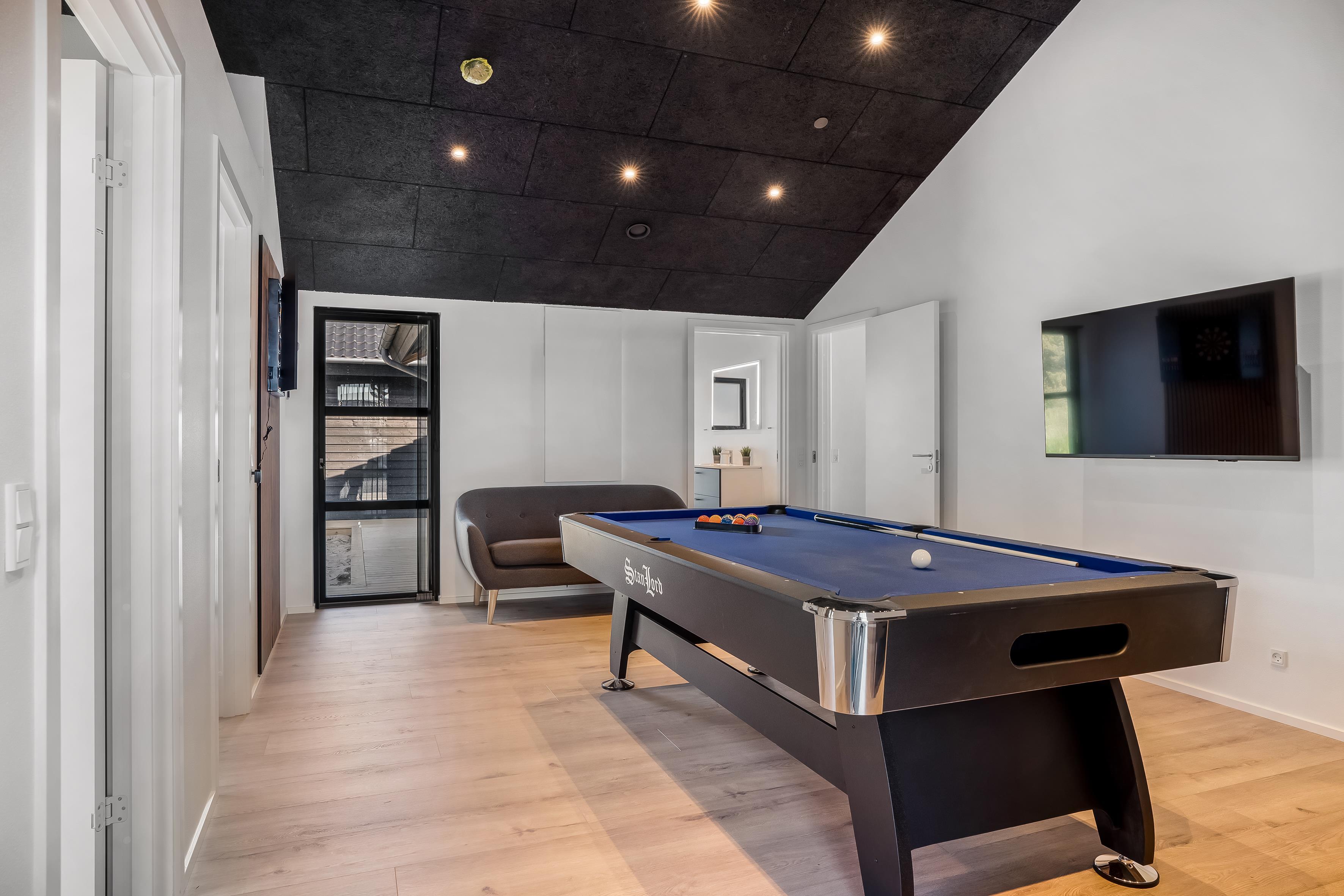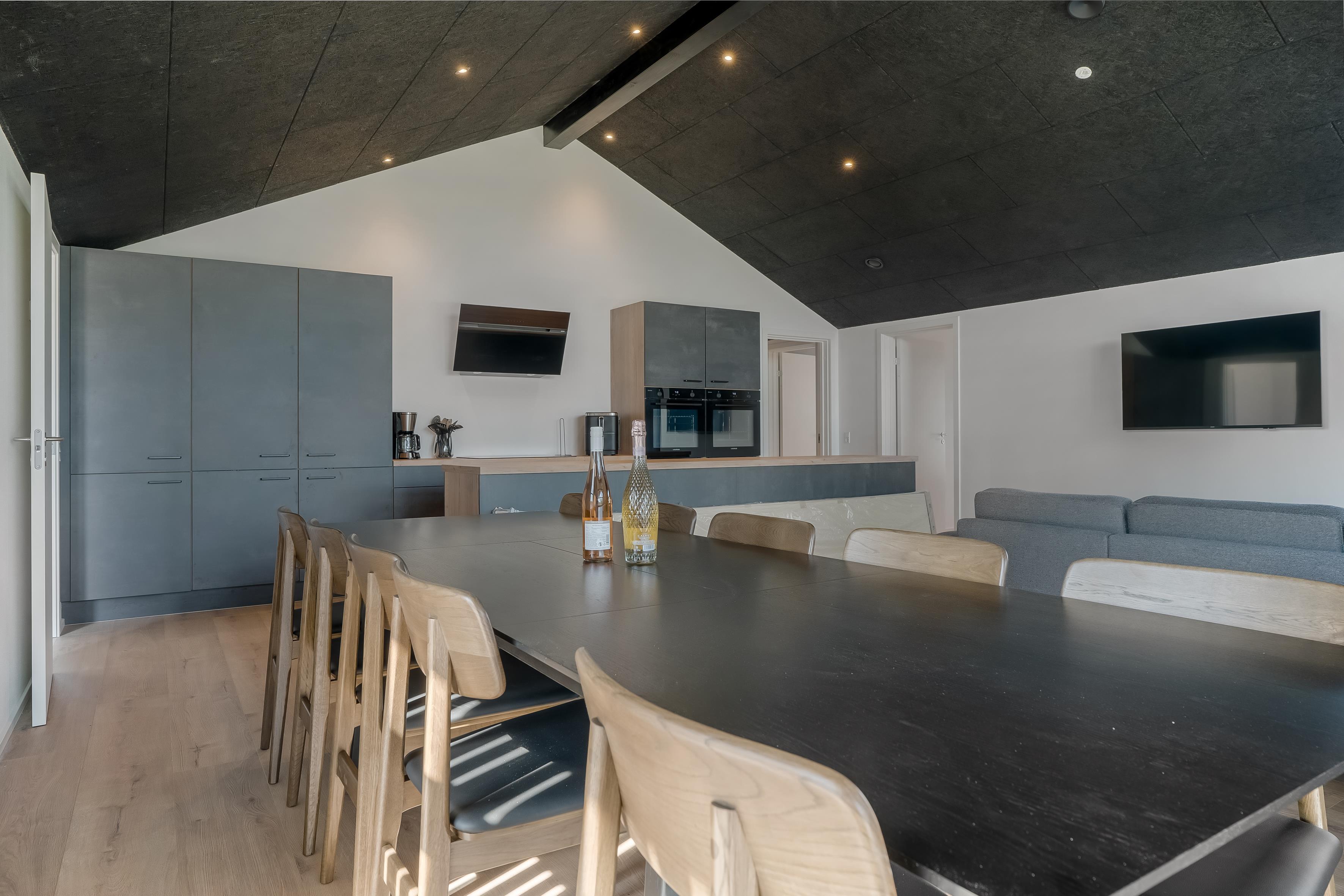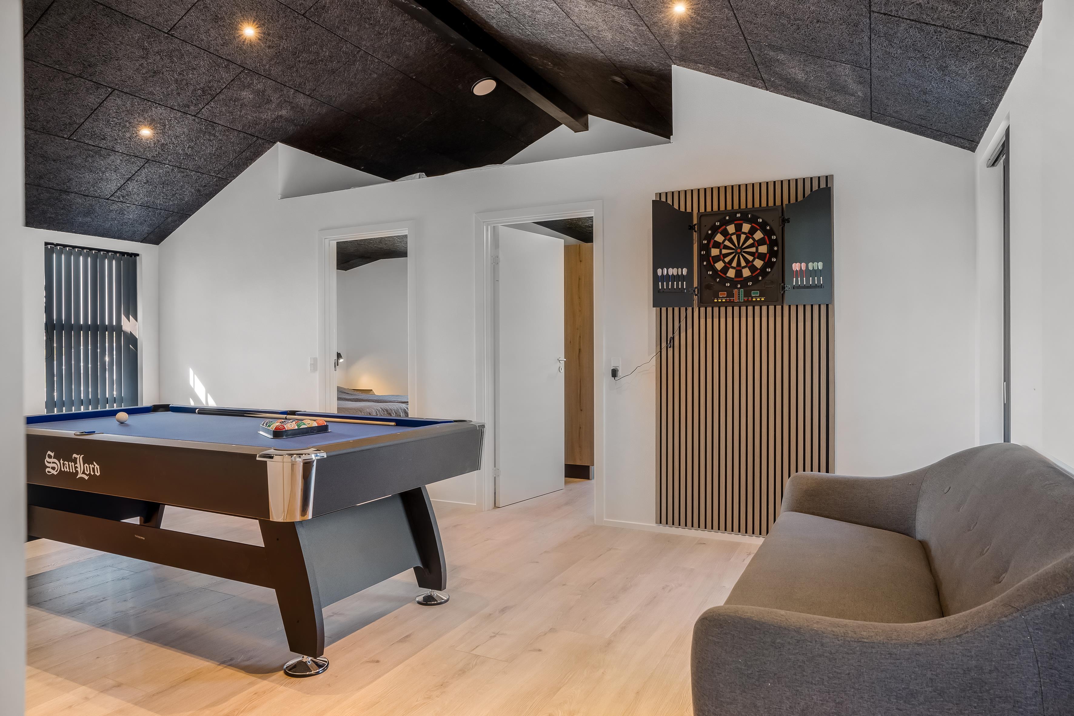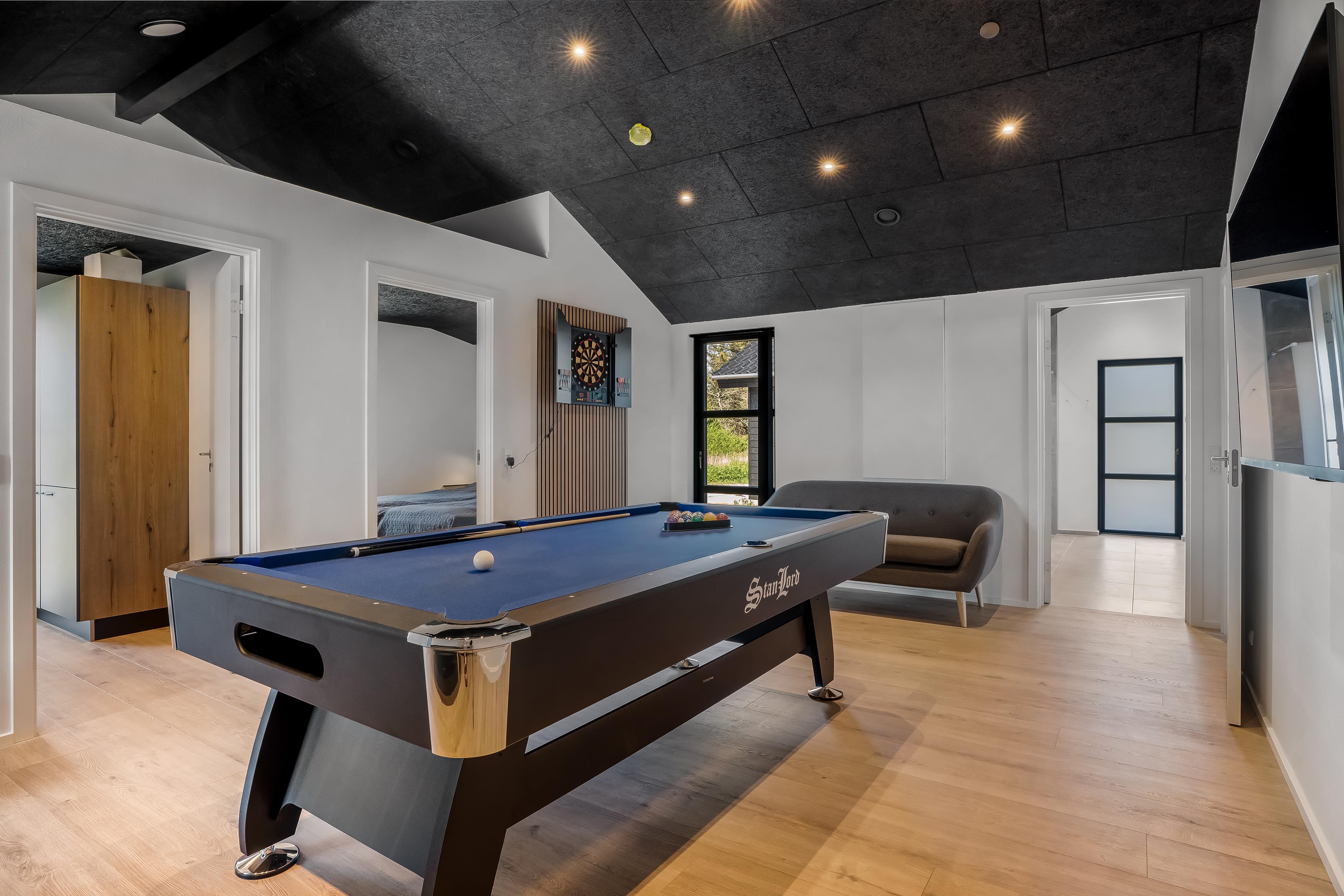 You'll have everything needed for a successful holiday – from a spacious activity room and roomy kitchen/living area to large terrace areas with wellness features and ample space for play in the garden. Cool evenings are best enjoyed in the central living area, where you can relax on the sofa, play games, or watch movies, while others compete in the adjacent activity room.?
