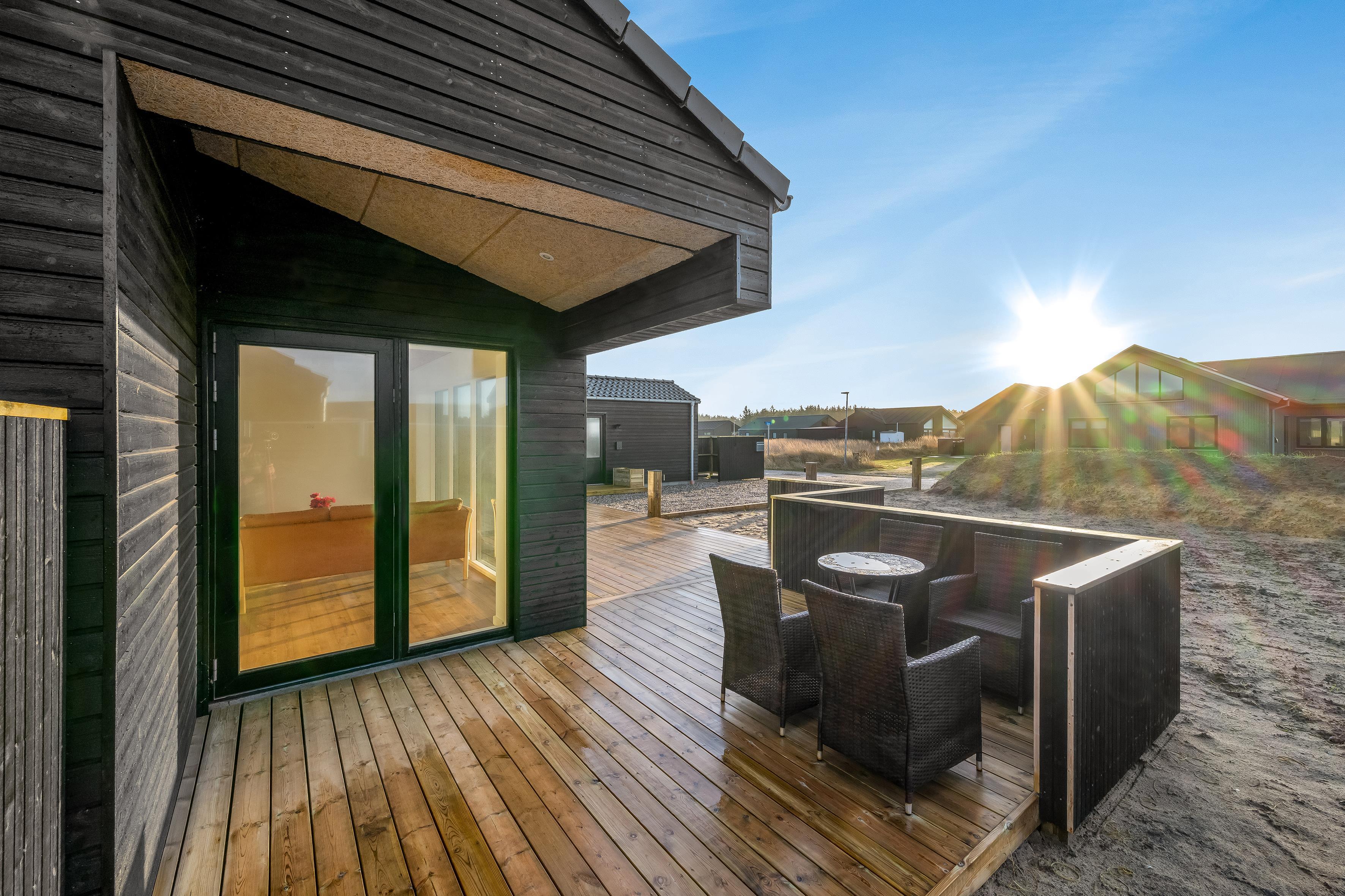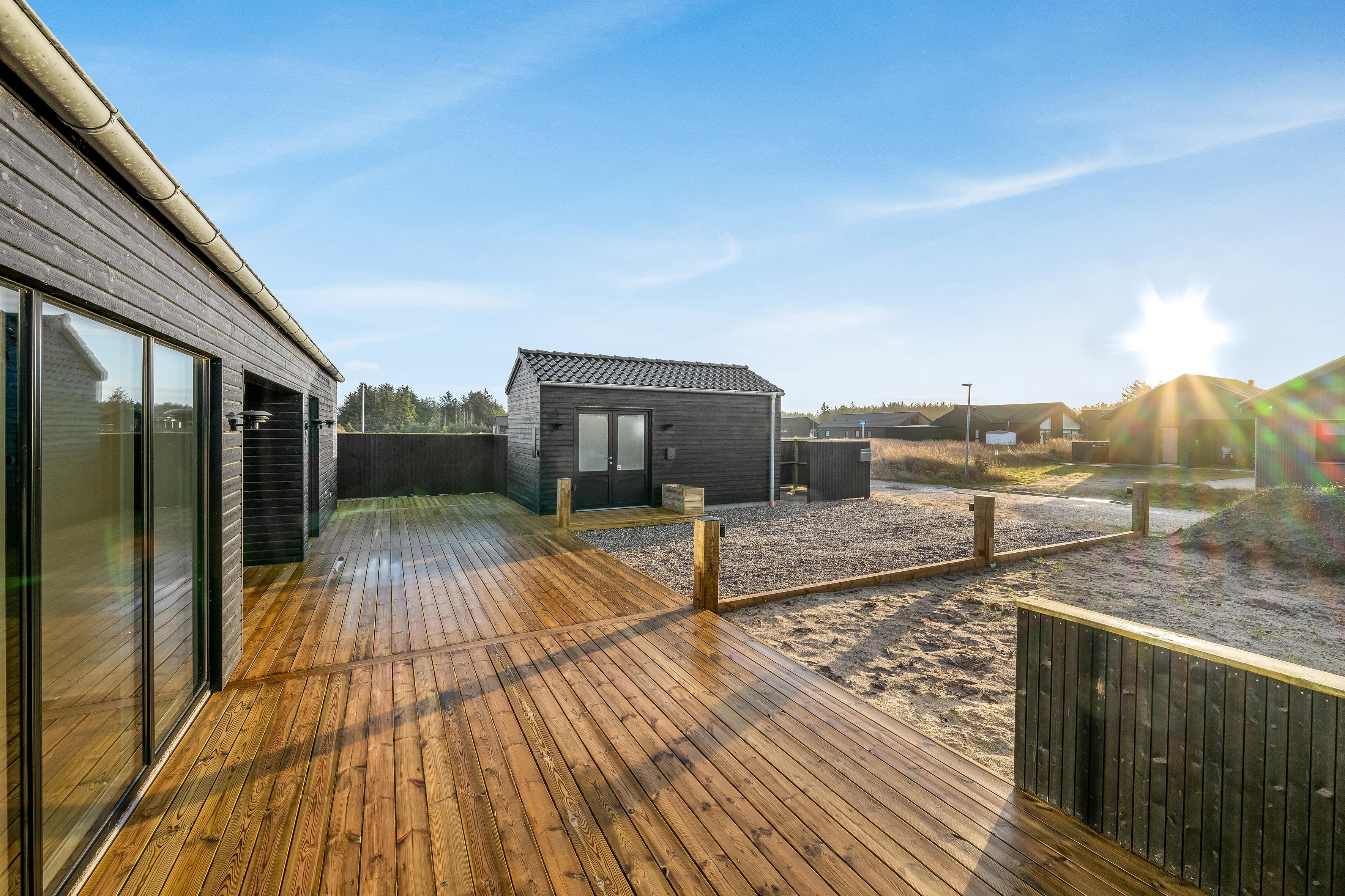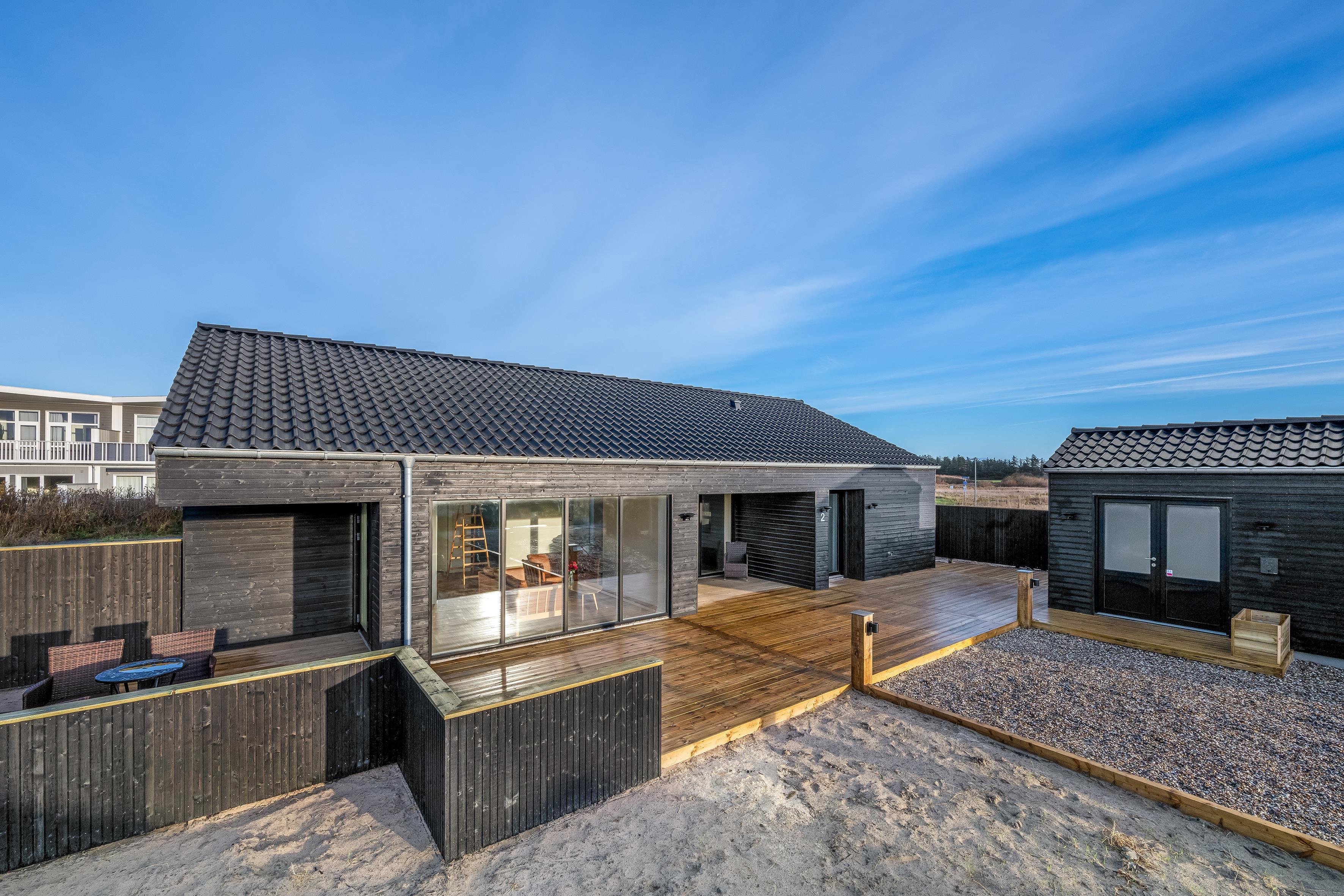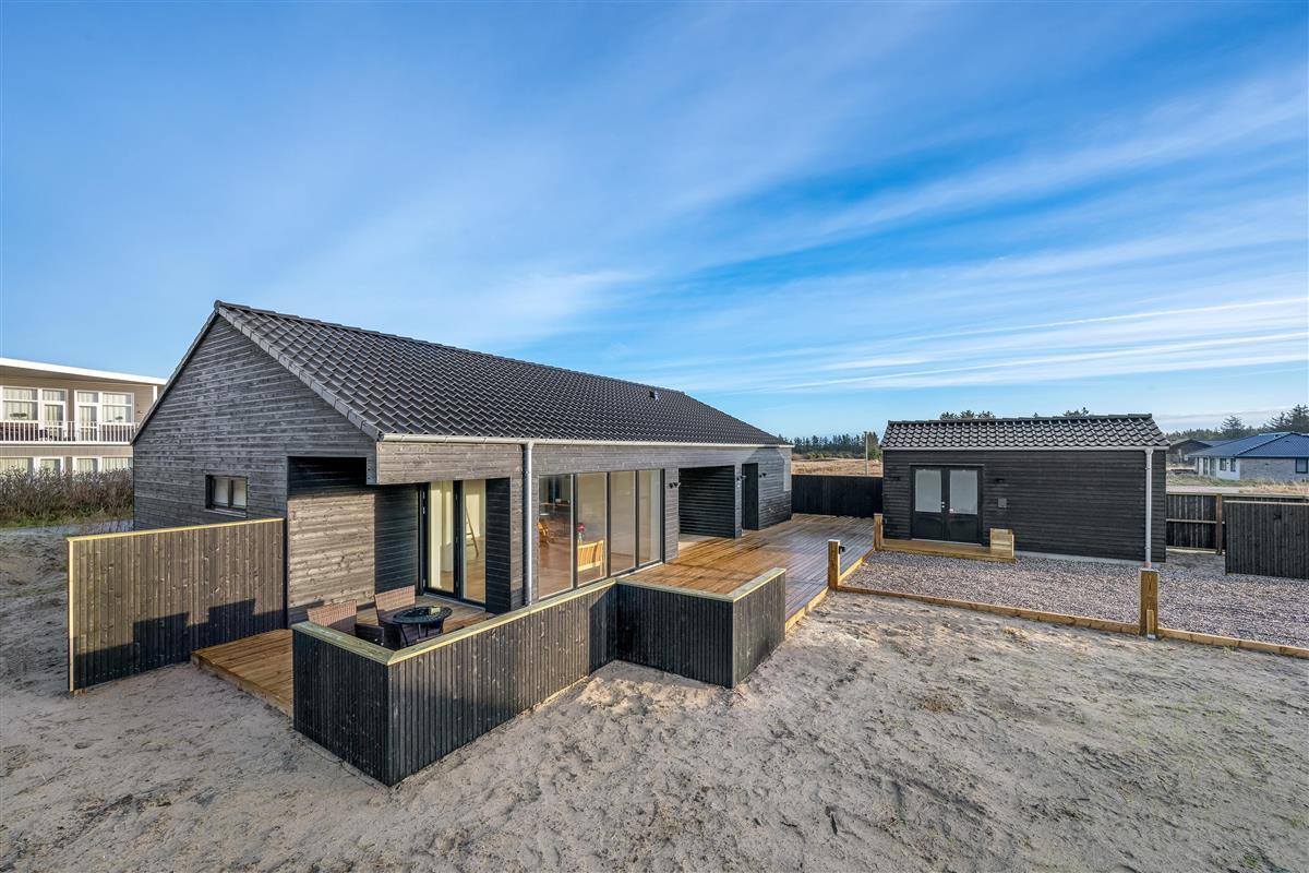 The garden and terrace invite both relaxation and activity at any time of the day. With the large terrace area, including a covered section, it is easy to find shade or sun. There is a wonderful outdoor spa and an outdoor shower, and a strategically placed mound near the house allows for sunbathing in privacy. There is plenty of space for play and relaxation, and from the house, the beach, town, and shops are all within approximately one kilometer.