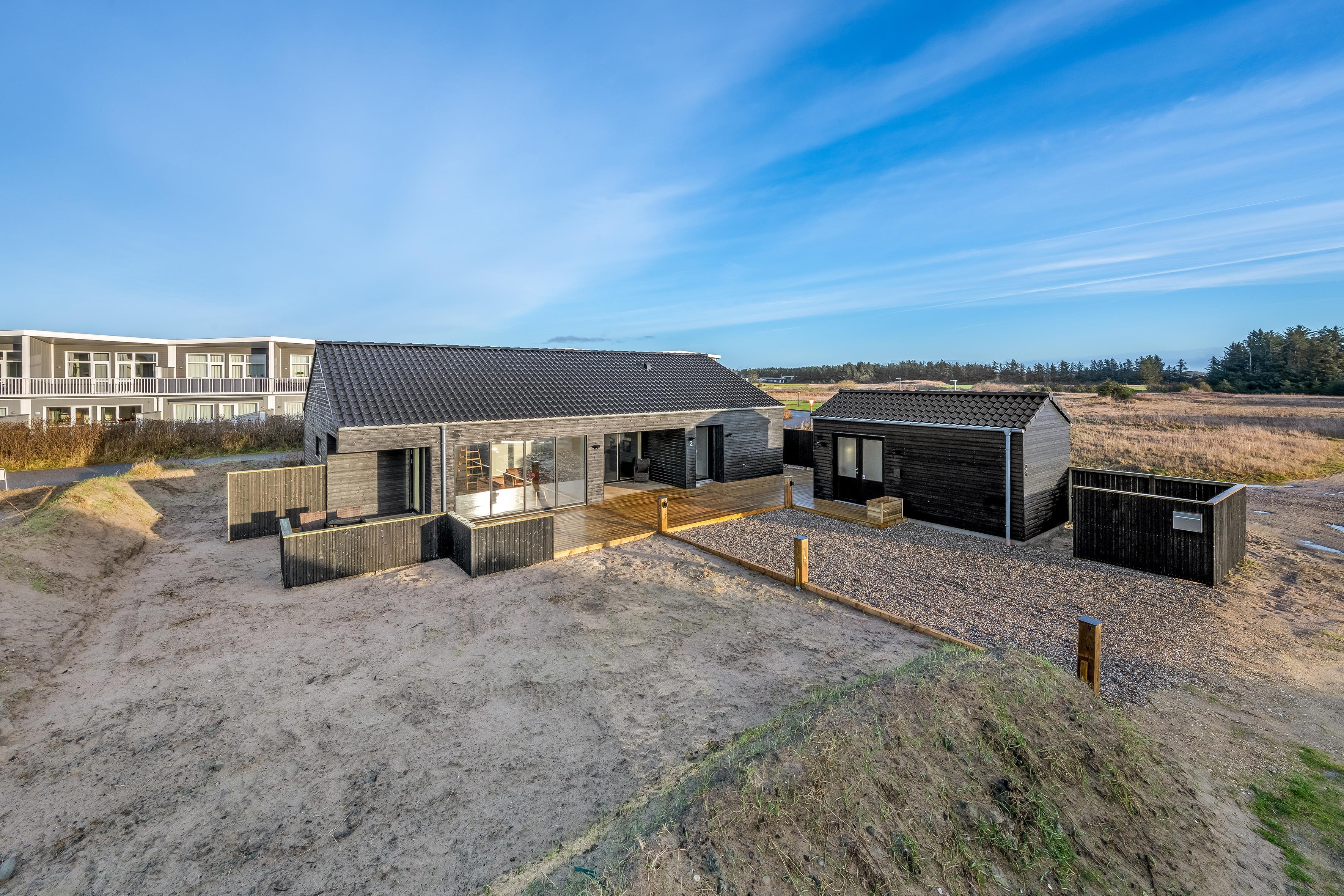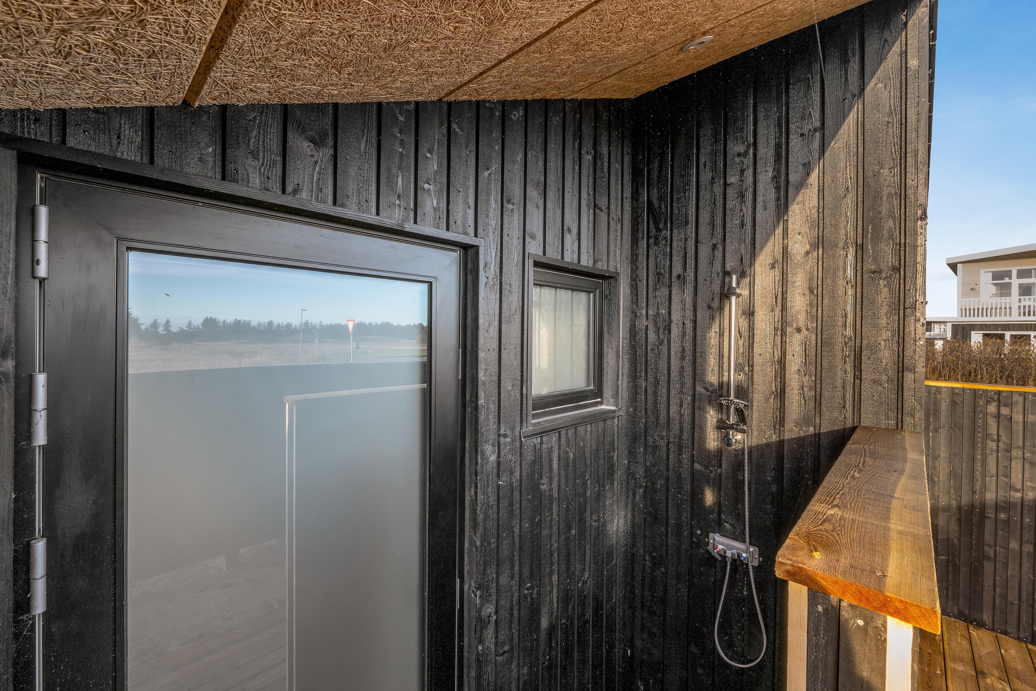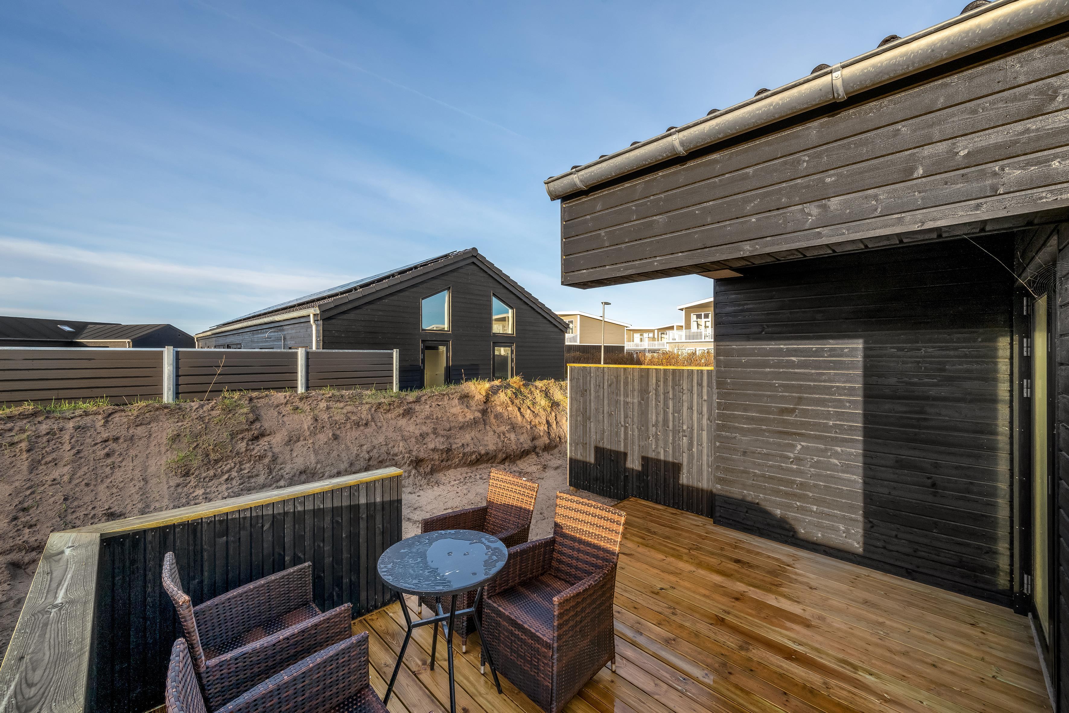 The garden and terrace invite both relaxation and activity at any time of the day. With the large terrace area, including a covered section, it is easy to find shade or sun. There is a wonderful outdoor spa and an outdoor shower, and a strategically placed mound near the house allows for sunbathing in privacy. There is plenty of space for play and relaxation, and from the house, the beach, town, and shops are all within approximately one kilometer.