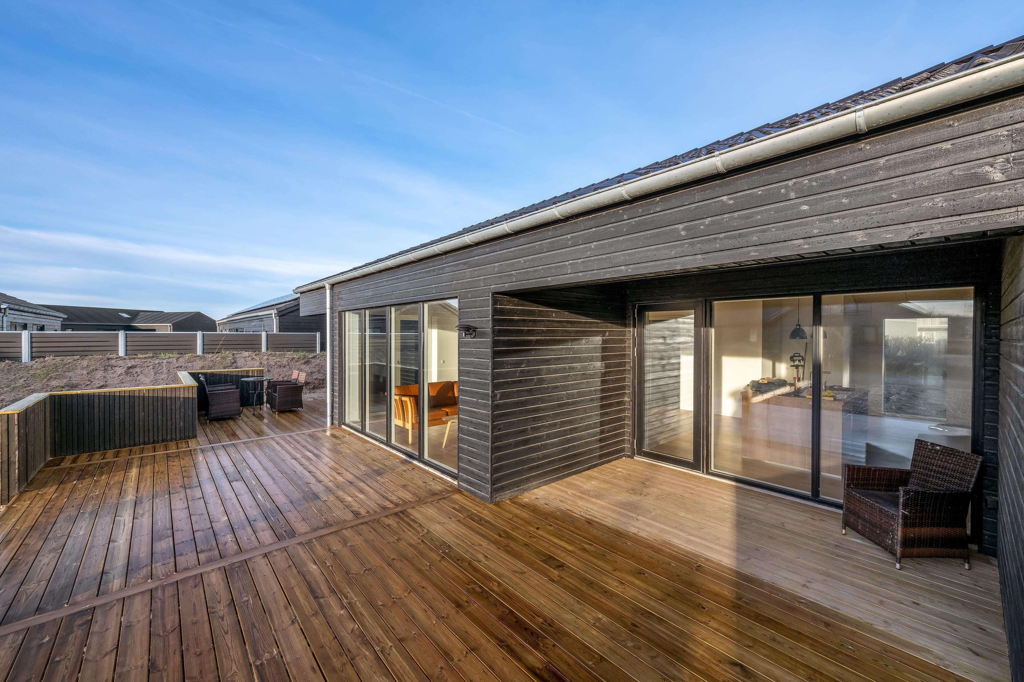 The house accommodates 6 people in 3 bedrooms with double beds. You get a home with a beautiful, open kitchen-living area extending from the living room, with a bright and well-thought-out interior and access to the large, lovely terrace area. The bathrooms are spacious and stylish, and the house is generally built with attention to detail and modern conveniences.