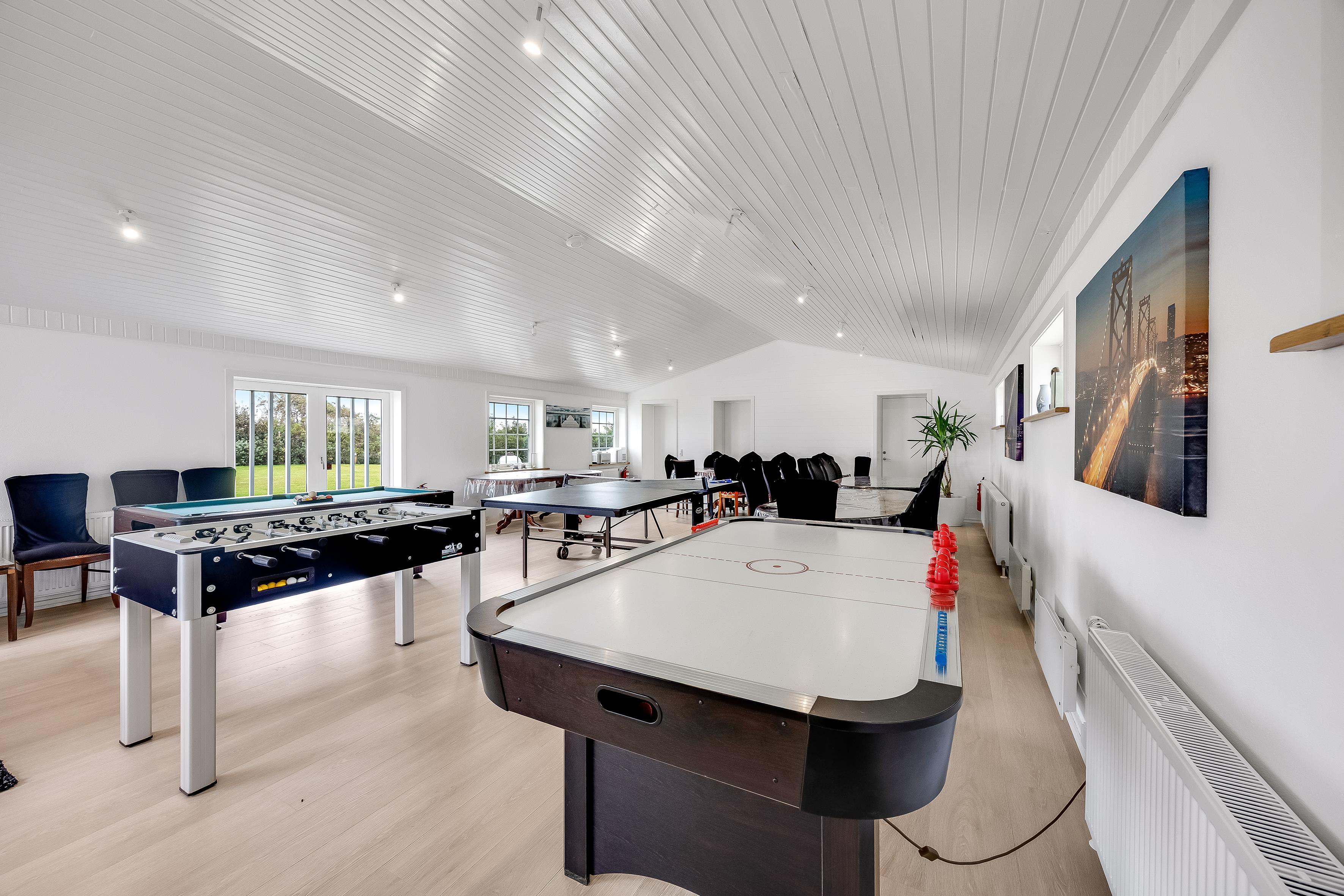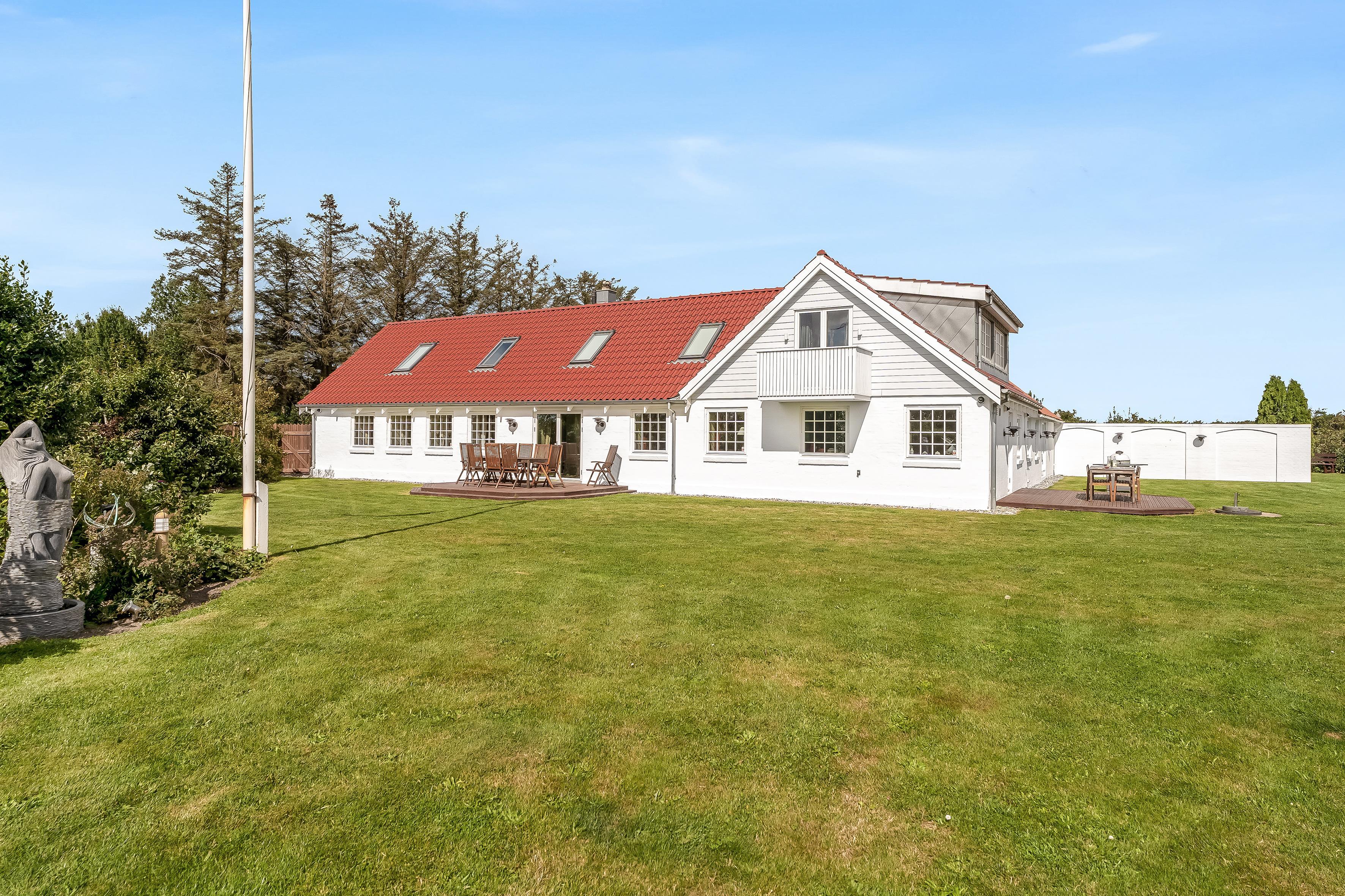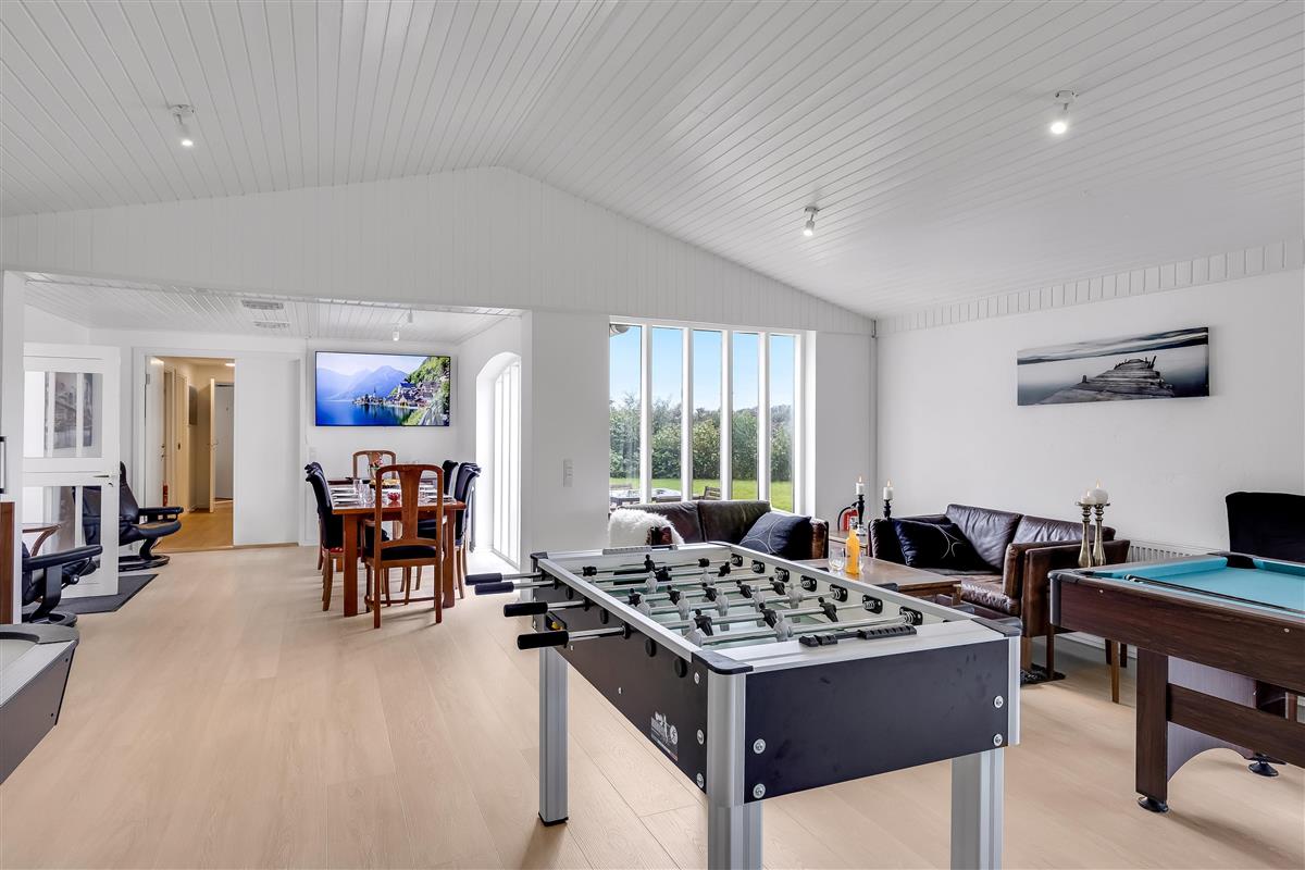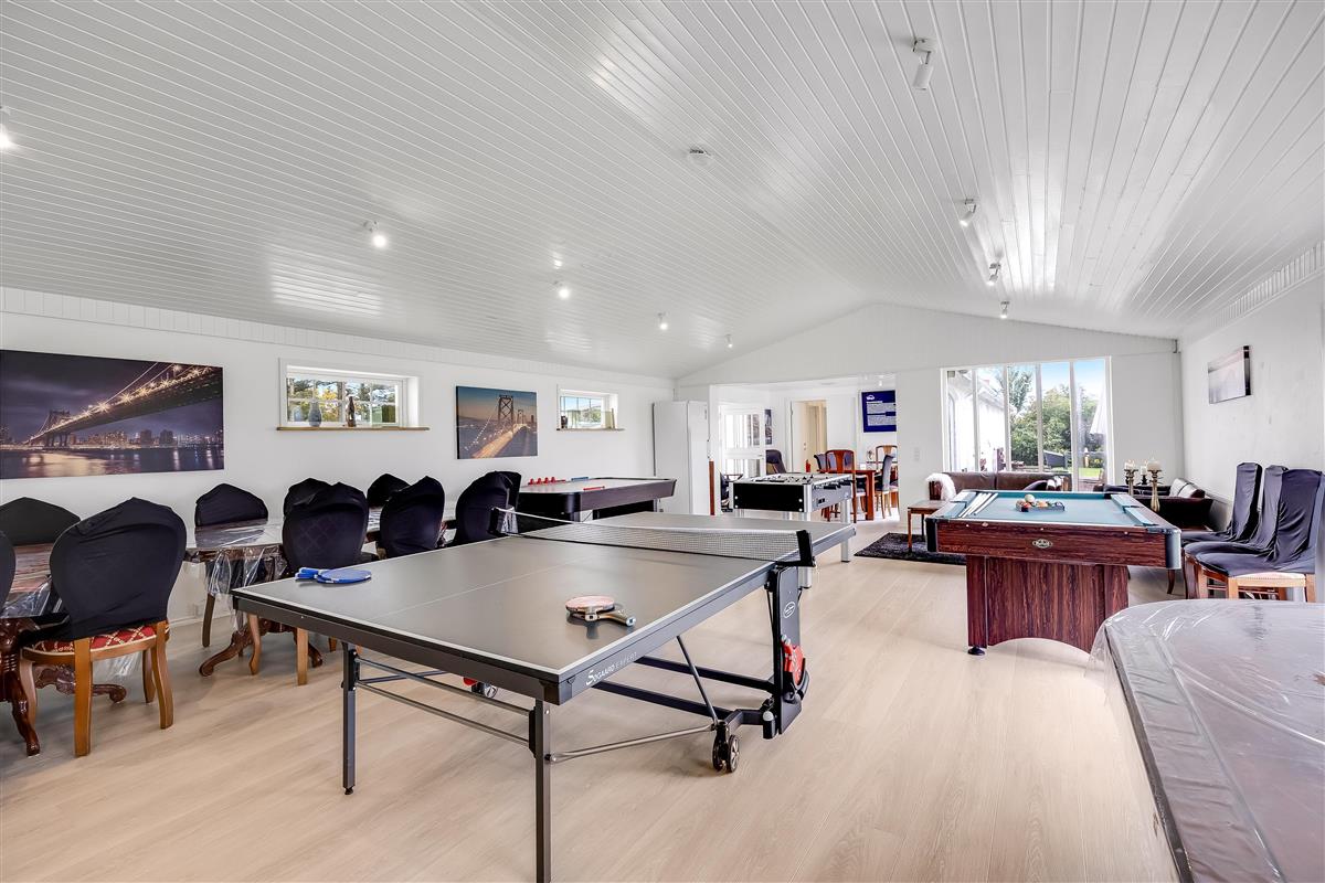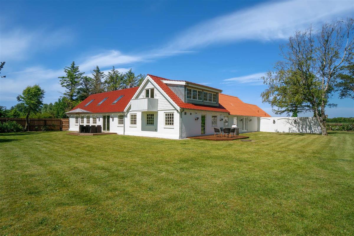 Now you and your family or friends have the opportunity to rent this impressive holiday home in lovely surroundings near Lønstrup, with room for up to 14 guests! Here you will find 12 TVs, huge shared facilities, 5 ovens (including a microwave), 3 refrigerators, 2 freezers, 4 bathrooms, a large kitchen as well as an extra kitchen – and you are welcome to bring 2 dogs. The entire property is non-smoking, and youth groups are not allowed.