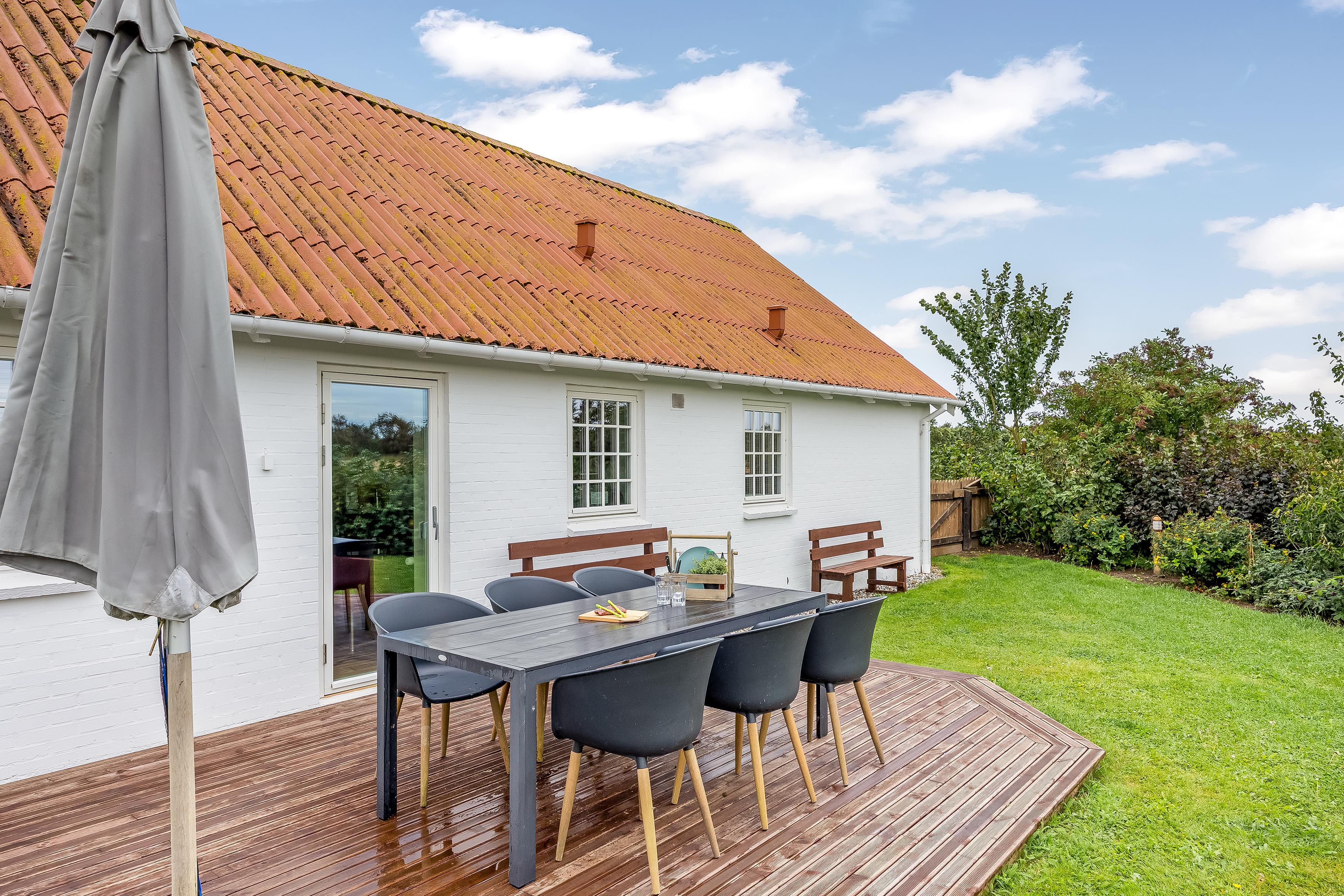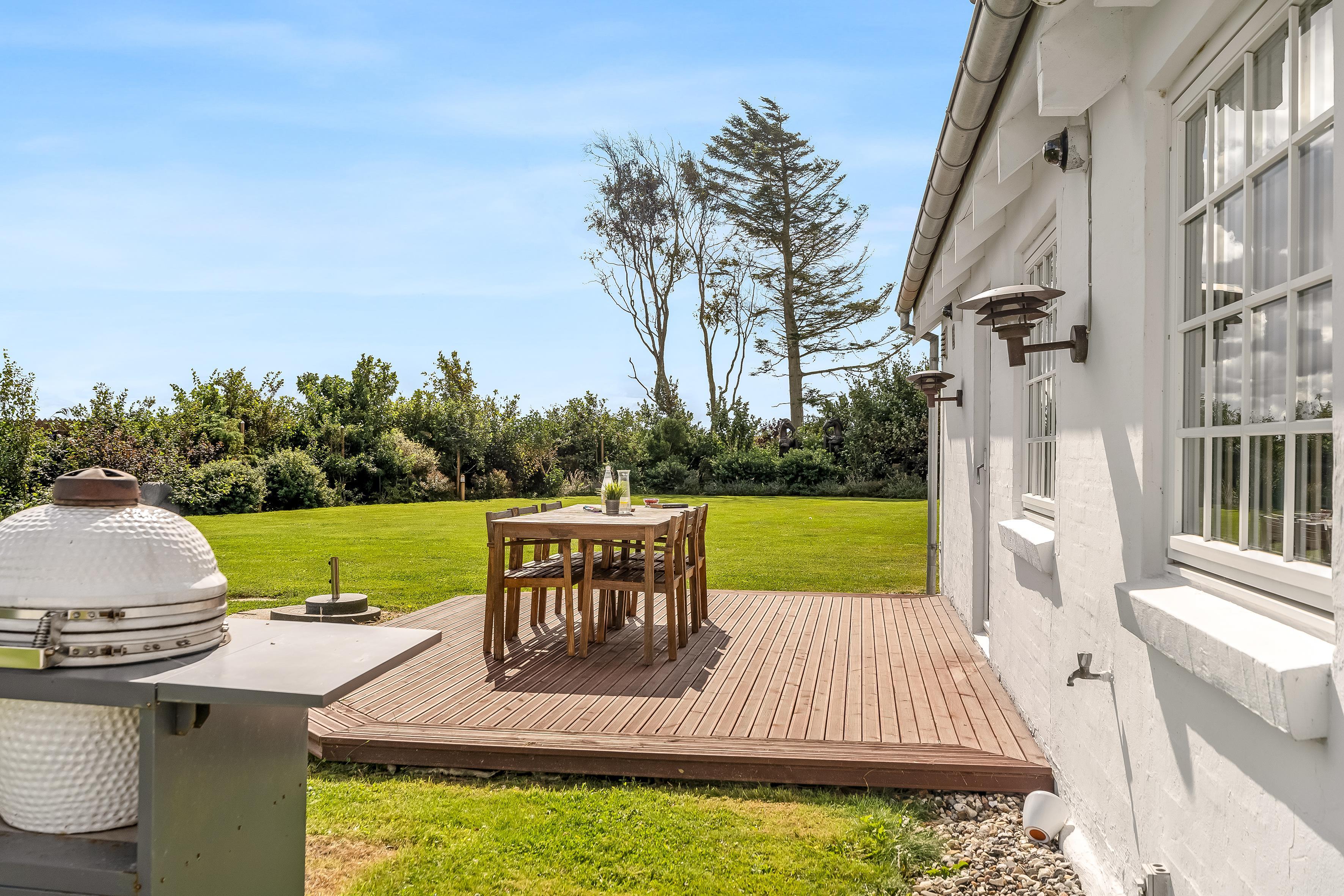 The garden is large and enclosed, and the holiday home is located in a beautiful rural landscape with peace and lovely views. You can see Rubjerg Knude Lighthouse to the northwest and Børglum Abbey to the southeast.