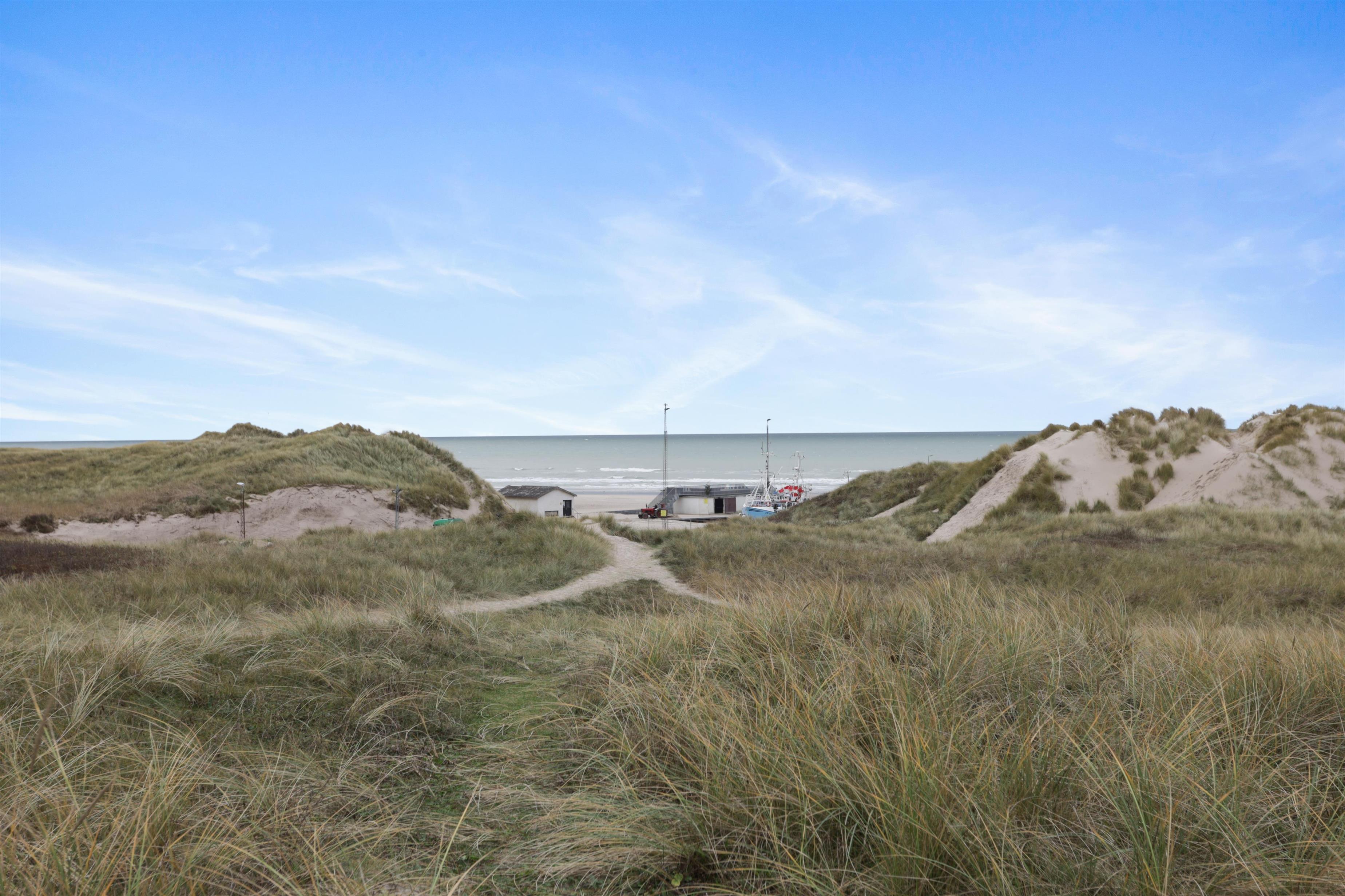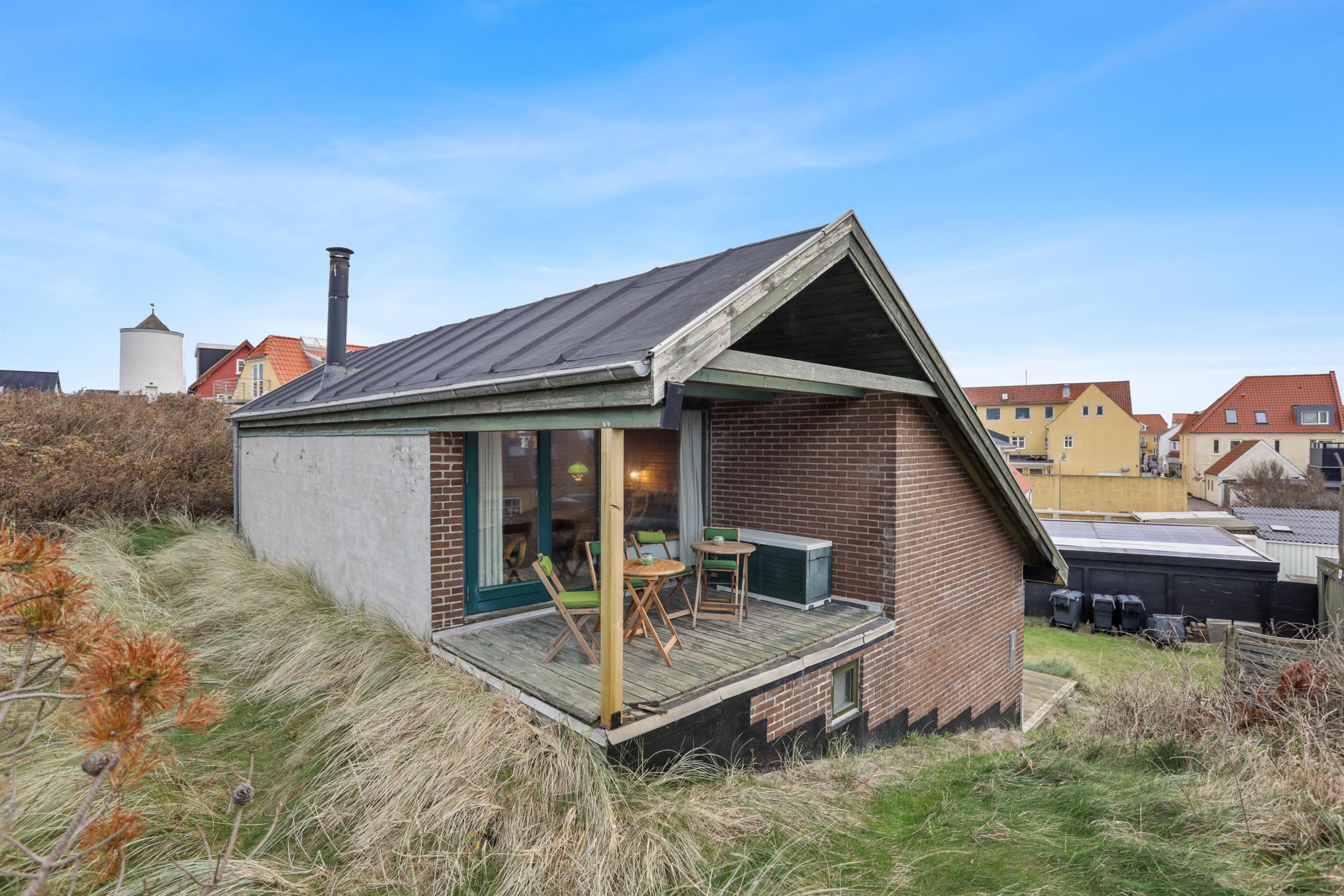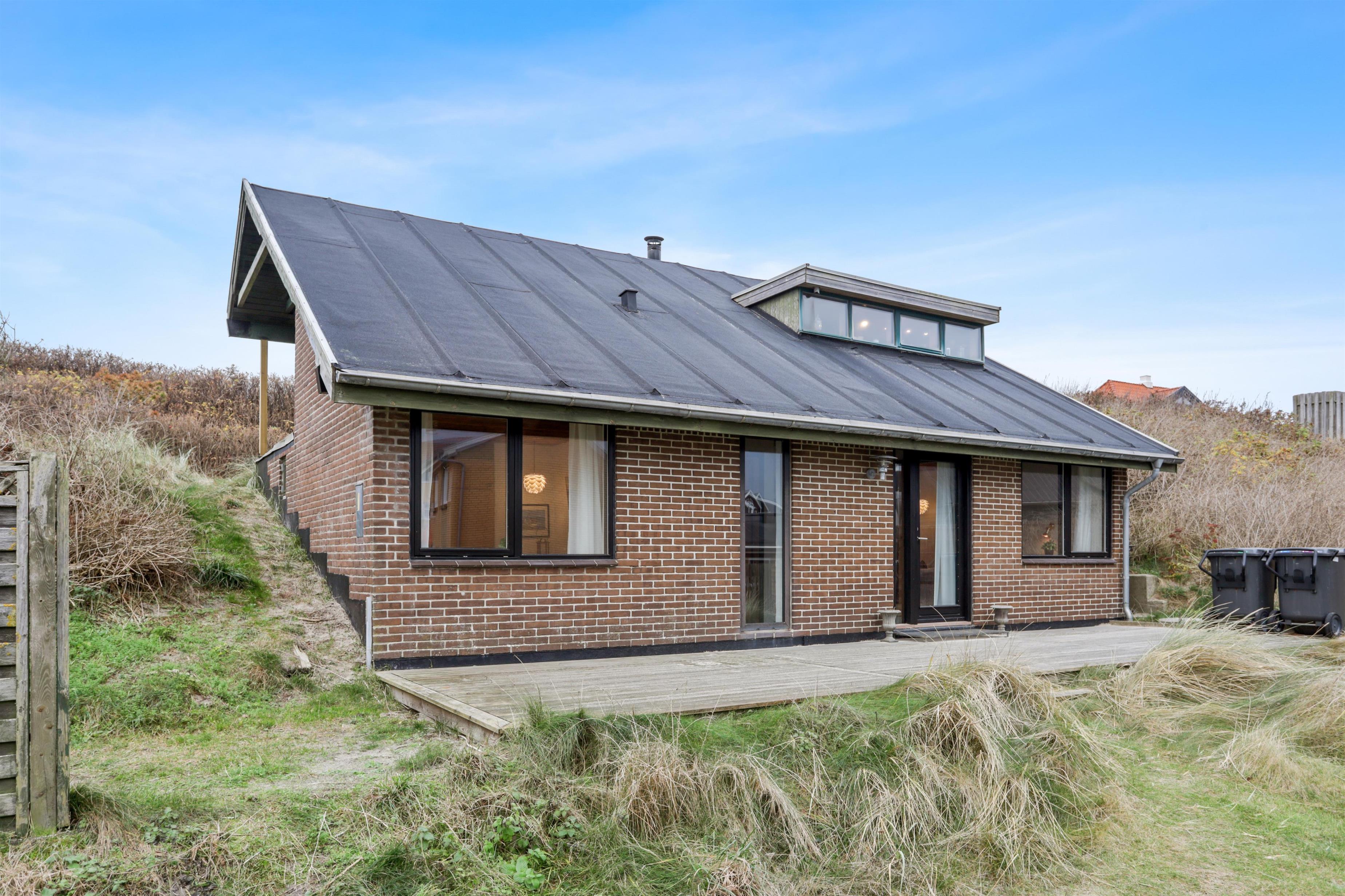 To access the holiday home, you’ll walk between two of Løkken’s popular restaurants. This gives you an immediate sense of holiday cheer and vibrant life, with the option to retreat to tranquility whenever you like. On warm summer evenings, it feels like being in the Mediterranean, surrounded by the buzz of people, cozy vibes, and the roar of the North Sea. The house is built into the dunes and offers two lovely terraces, perfect for soaking up the sun. We recommend parking at the large square nearby, as the driveway between the restaurants is narrow. The terrain is hilly and may not be suitable for those with mobility issues.